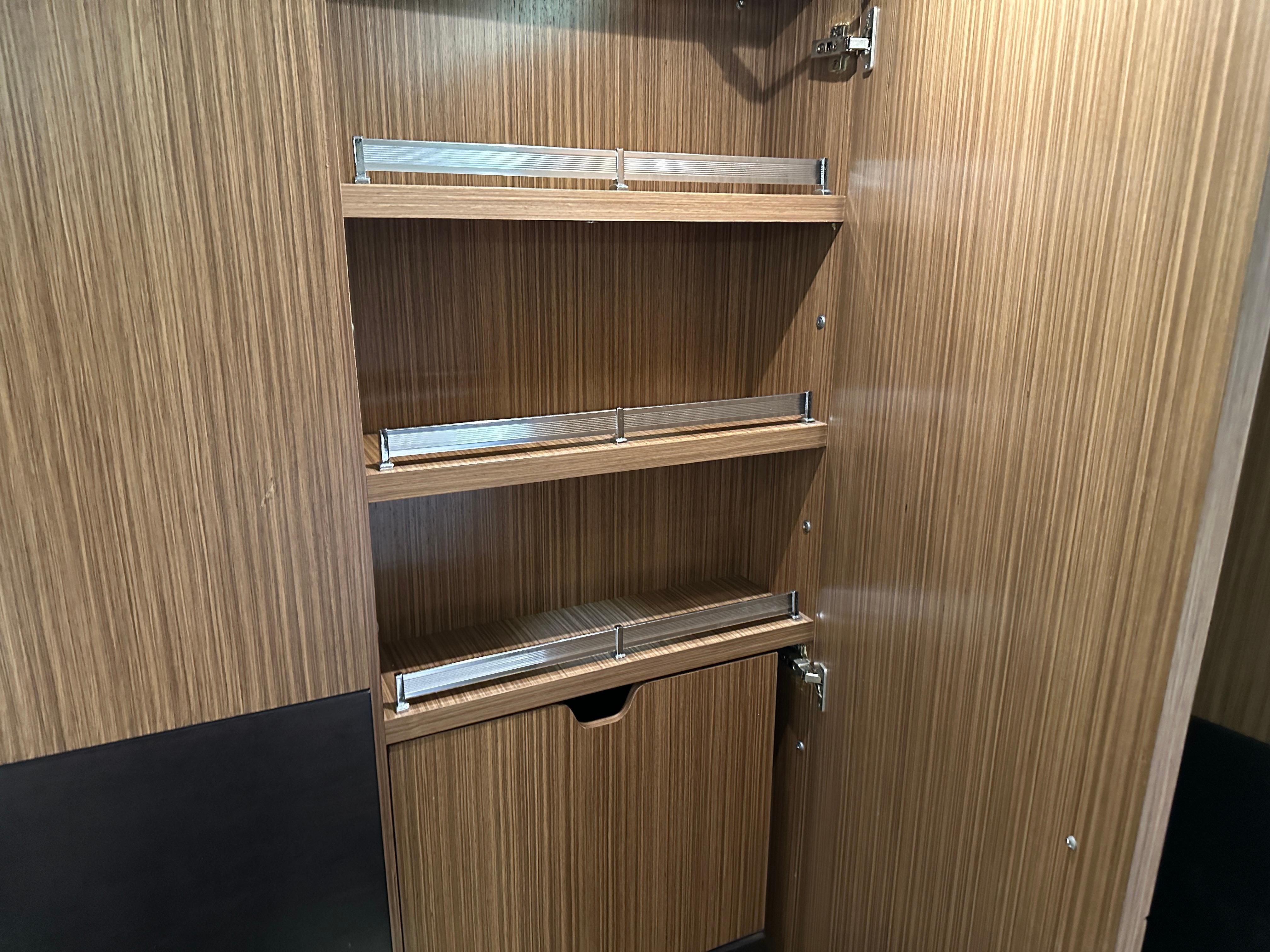 - Storage, Cabinets with Slide-Out Drawers & Glass Racks
