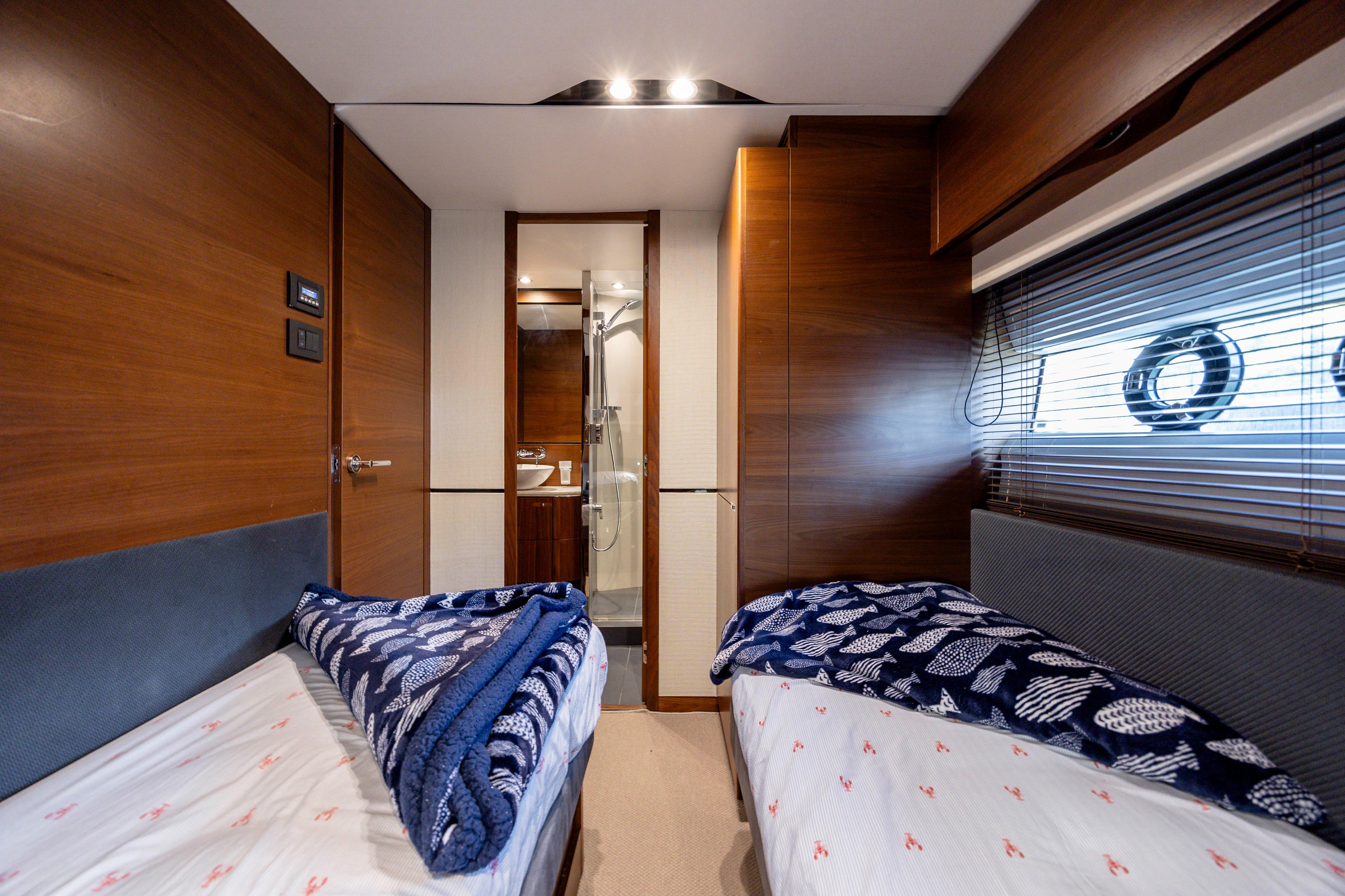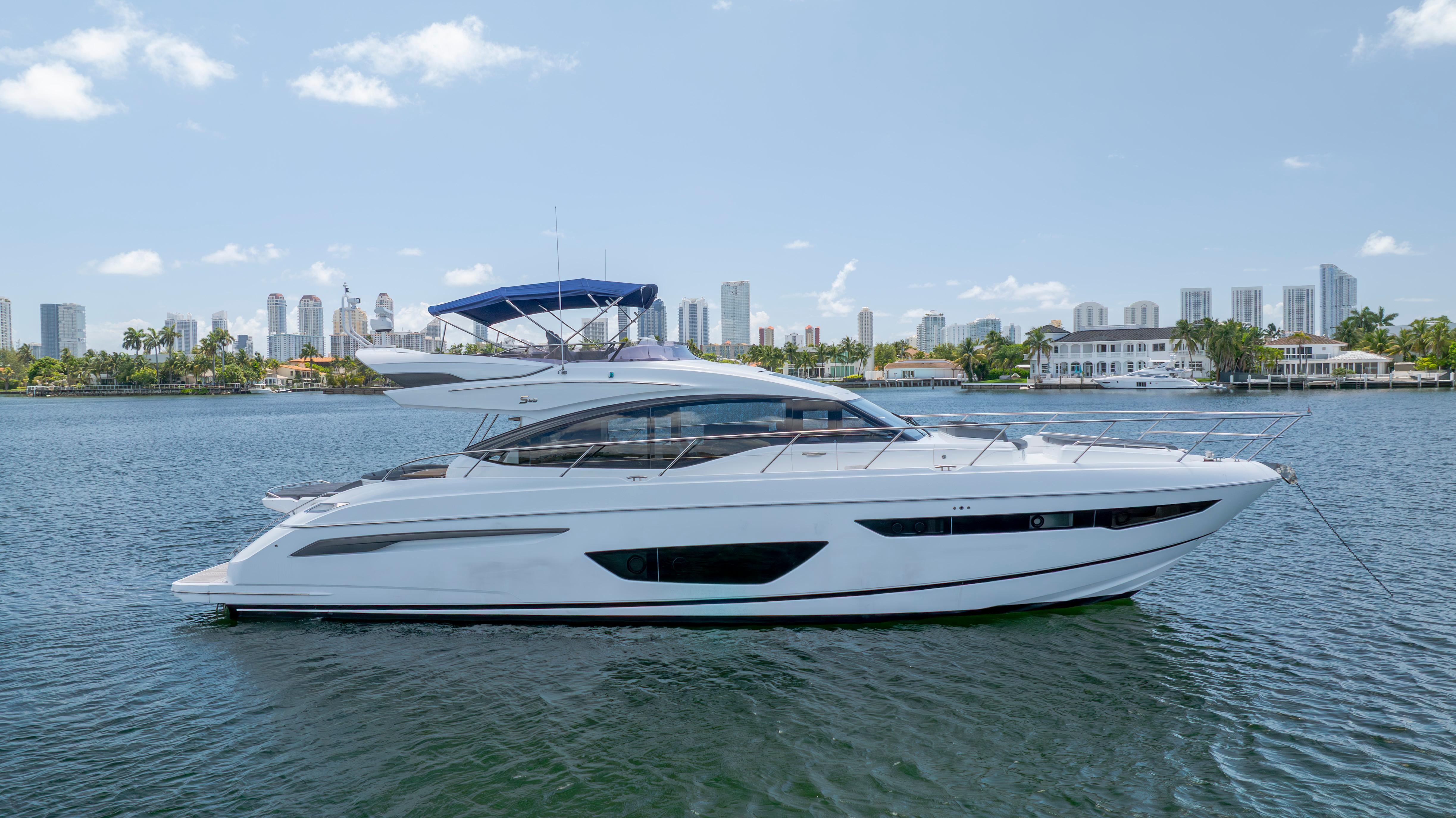 OverviewThis 2017 Princess S65 offers the perfect balance of style, performance, and luxury. Powered by twin Caterpillar C-18 Acert diesels with just 600 original hours, this vessel delivers strong cruising performance in a proven deep-V hull design. Maintained with an open checkbook and fully equipped with sought-after options, this is one of the cleanest and most desirable S65s available.Key FeaturesTwin CAT C-18 Acert (1,150HP) – 585 hrs (approx.)Hydraulic Swim Platform w/ integrated tender garage4 Stateroom, 3 Head Layout + Crew QuartersSleek Sportbridge with retractable hardtopFull Garmin Suite: Dual 16” MFDs, radar, AIS, autopilotJoystick Docking w/ Bow & Stern ThrustersTropical-spec A/CInteriorThe S65 features the highly desirable galley-aft layout, creating seamless flow between the interior and cockpit. The salon is bright and open, with large panoramic windows and an electric sunroof. Below deck, the full-beam master stateroom is complemented by a VIP forward, convertible twin cabin, and a fourth stateroom with over/under bunks.PerformanceCruise: 28–30 knots | WOT: 36 knots (approx.)Fuel capacity: 902 galEfficient CAT diesels + stabilization = outstanding ride qualityThis is a turn-key Princess S65 that checks all the boxes for the buyer seeking a lightly used, fully loaded express yacht with proven pedigree and performance. Call today to arrange your private showing