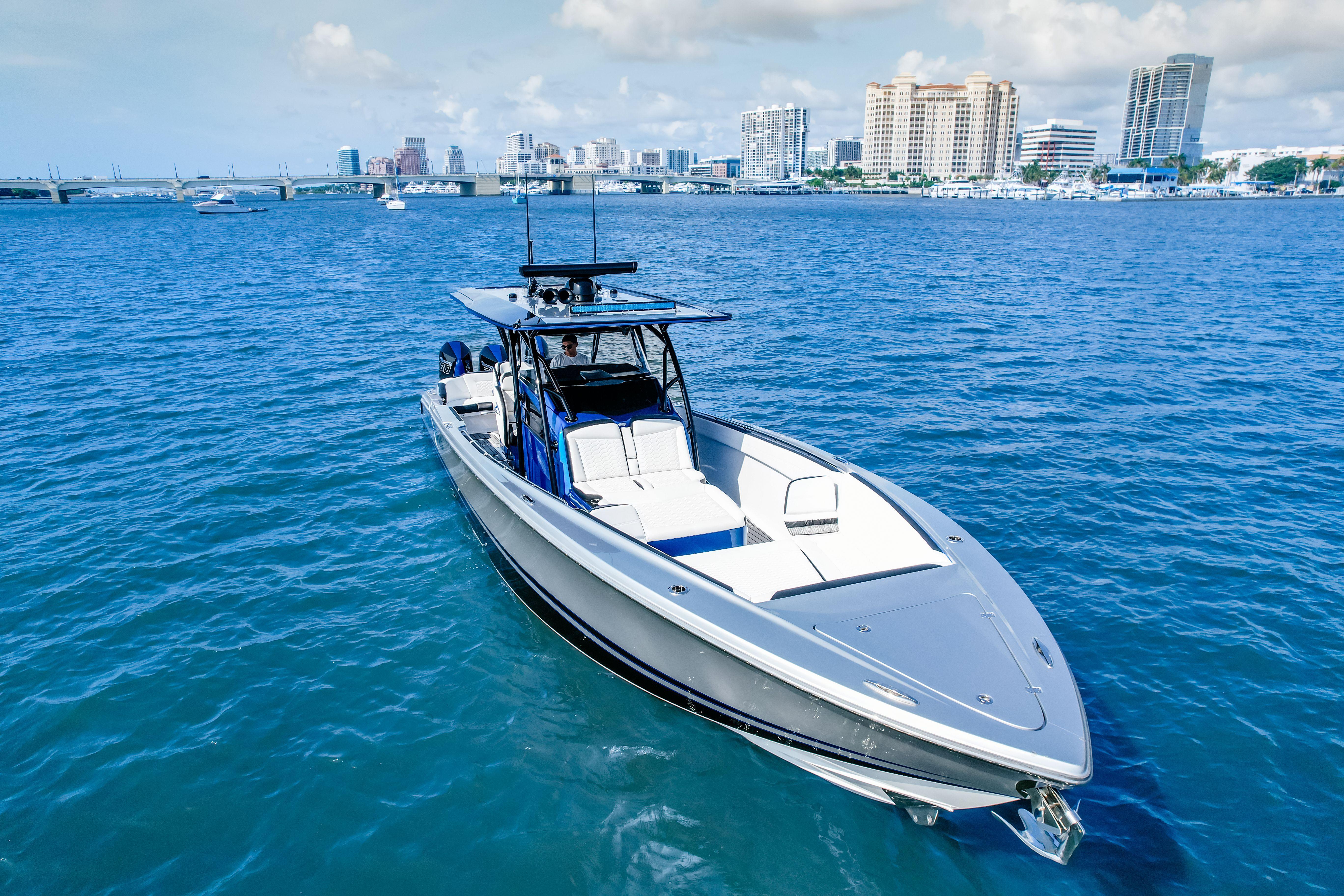 Stock Number #37-3212022 Nor-Tech 390 Sport – Triple 450R Mercury Racing PowerThis low-hour, performance-driven Nor-Tech 390 Sport is an absolute head-turner, finished in a stunning blue and silver custom paint scheme. Meticulously maintained and loaded with premium options, it offers a perfect blend of luxury, speed, and offshore capability.Key Features:Triple Mercury Racing 450R Engines – Low hours, blistering performanceSecond Row Helm Seating – Comfort for extended runsClub Sport Transom Layout – Perfect for entertaining and loungingCustom Diamond-Stitched Upholstery – Double diamond pattern with forward backrestsLumishore Underwater Lighting – Vibrant color-changing LED systemFLIR Night Vision – Enhanced visibility and safety after darkBow Thruster – Effortless docking and maneuverabilityMercury Racing Digital Controls – Precision handling at speedOversized Garmin Displays – Dual XL screens for navigation and systemsAutopilot & HD48 Open Array Radar – Confident long-range cruisingPower Sunshade – Automated shade system for cockpit comfortElectric Antennas – Sleek, convenient functionalityOversized LED Light Bar – Illuminate your surroundings with authorityChrome Delete Package – Streamlined, modern aestheticFull Paint Protection Film (PPF) – Preserves the beauty of the hullThis 390 Sport is your opportunity to own a top-tier performance center console that delivers on both style, performance and substance.