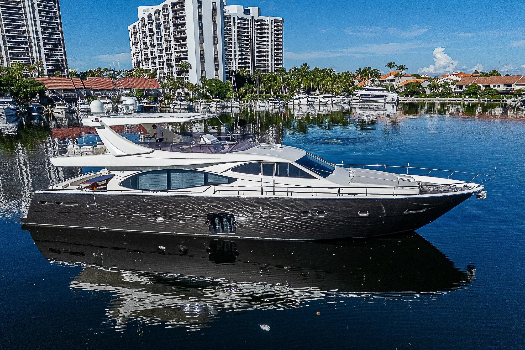 Welcome aboard the stunning 2009 780 Ferretti Motor Yacht, TWE11VE. Combining timeless Italian design with modern luxury, TWE11VE offers an unparalleled yachting experience. Her sophisticated layout features four beautifully appointed staterooms, including a full-beam master suite, perfect for offering the highest level of comfort. Additionally, there are accommodations for up to three crew members, ensuring seamless service and relaxation during your time onboard. The expansive flybridge is a highlight of this yacht, offering a spacious area for both cruising and entertaining. Here, guests can enjoy panoramic views while soaking in the sun or relax in shaded comfort, making it the perfect space for outdoor enjoyment.The cockpit provides an ideal setting for alfresco dining, with direct access to the dive platform, where all your water sports and activities can begin. Whether it's diving, swimming, or simply enjoying the water, this area ensures easy access to the sea.Step inside the elegant salon and dining area, designed to host family and friends in luxurious style. The open layout, large windows, and refined finishes create a welcoming space for relaxing and entertaining.TWE11VE is perfectly suited for family adventures or can easily transition into a luxury charter yacht with her preferred layout. The spacious and functional design ensures that she meets the needs of both private owners and charter guests alike.