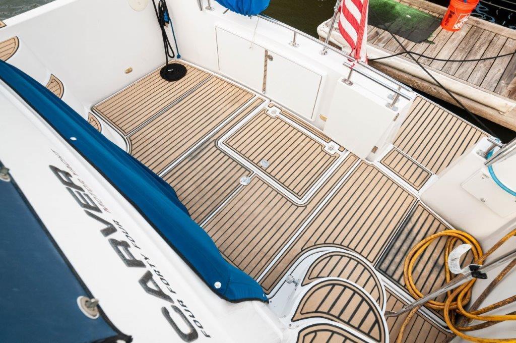 **Custom Features**: The custom Sea Decking ensures a stylish, non-slip surface that’s easy to maintain, enhancing both the appearance and functionality of your yacht.