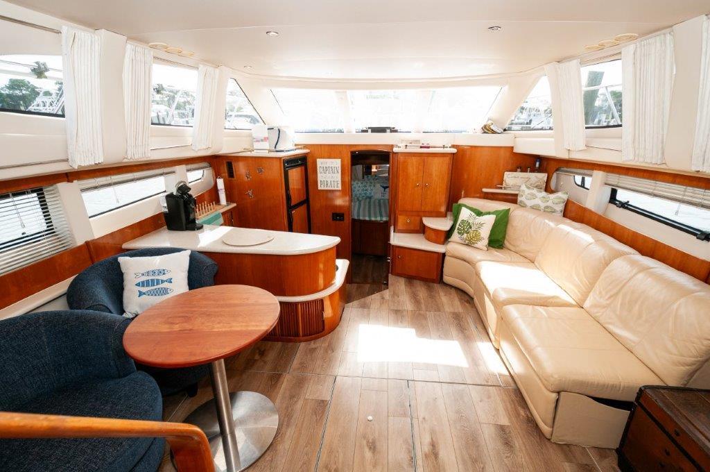 **Exceptional Sound System**: Enjoy music like never before with the Fusion sound system and JBL MARINE speakers positioned throughout the yacht, complemented by a powerful 10” JBL powered subwoofer. Perfect for those sunsets on the water or lively gatherings!
