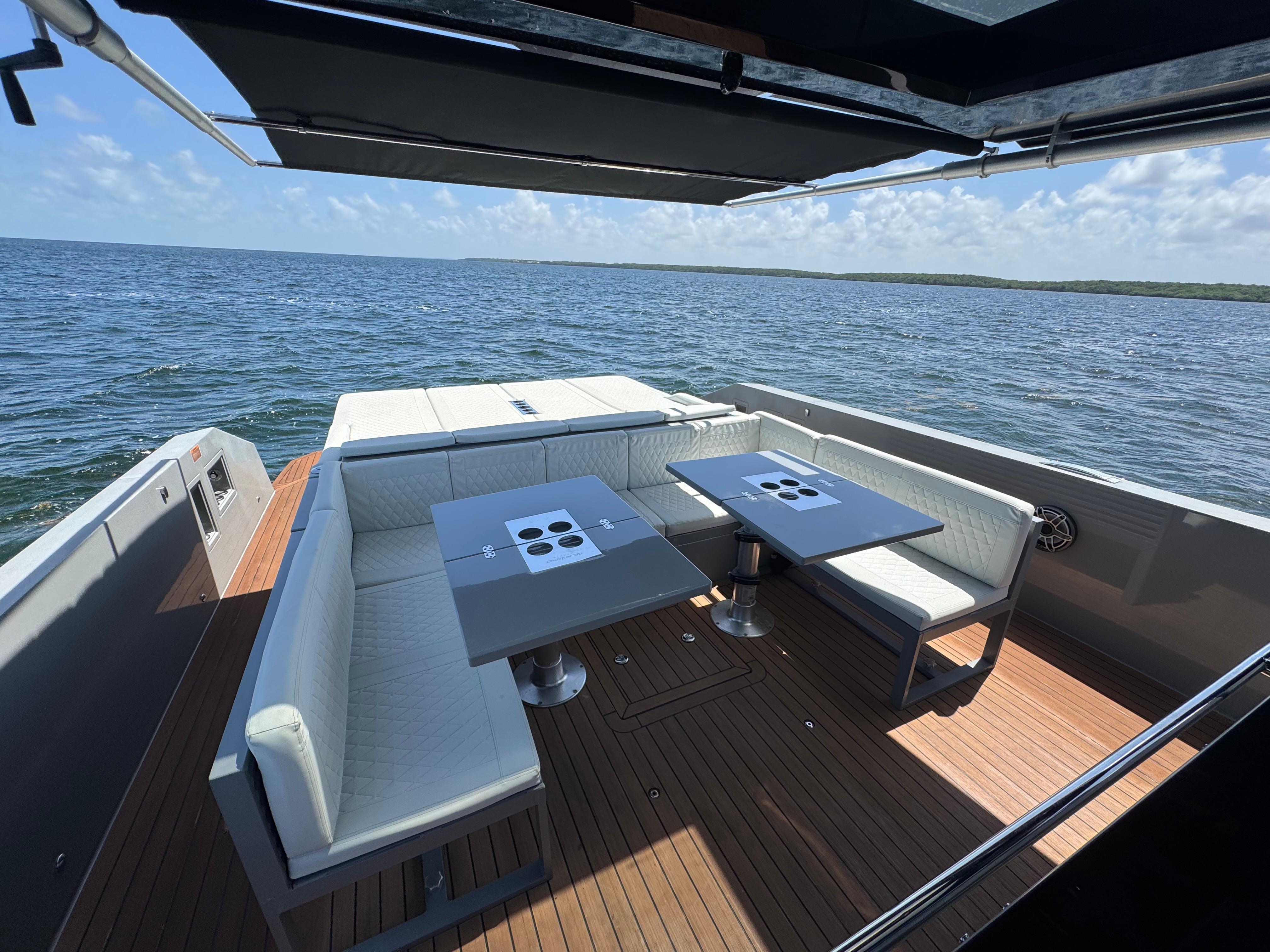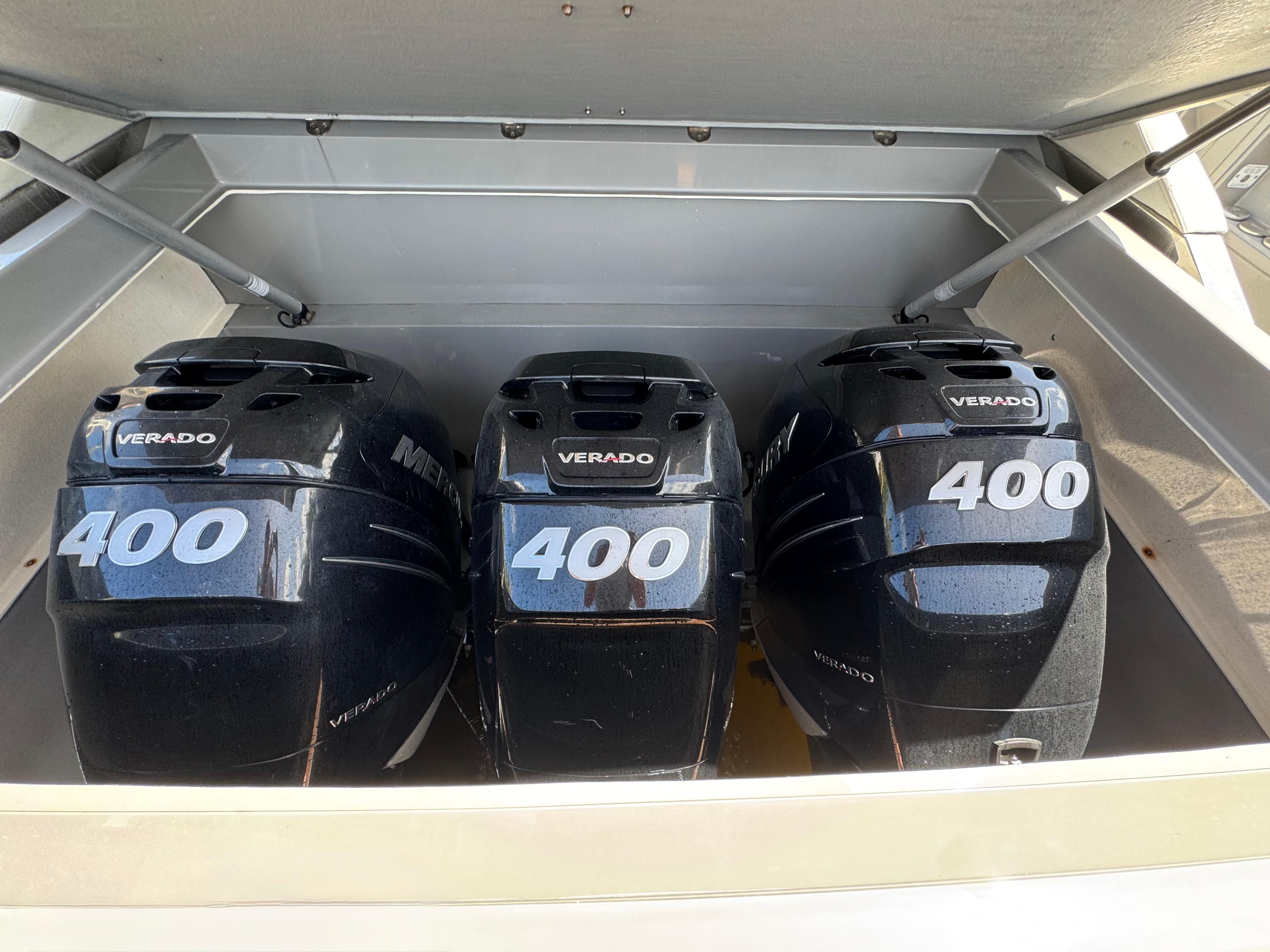Just listed!Seakeeper EquippedUnder 250 hours on triple Mercury 400 L6Full set of individual coversFlir night vision cameraRetractable Cockpit SunshadeAdditional featuresTwo Cockpit Tables with customizable furniture placement for dining/loungingBow ThrusterGeneratorJoystick Piloting SystemComplete Outdoor Entertainment (Sink, Cooktop, 2 Refrigerators, 1 Ice Maker)Shower on DeckFwd Berth with Full BedAft Cabin U-Shape Couch/Triple Bed (250 x 300 x 250 cm)Complete BathroomUSB and Lighter Plug Outlet 12VMercury 3 x 400 HP L612K BTU ACUnderwater LED LightsBlack Bottom PaintInterior TVMuch more!
