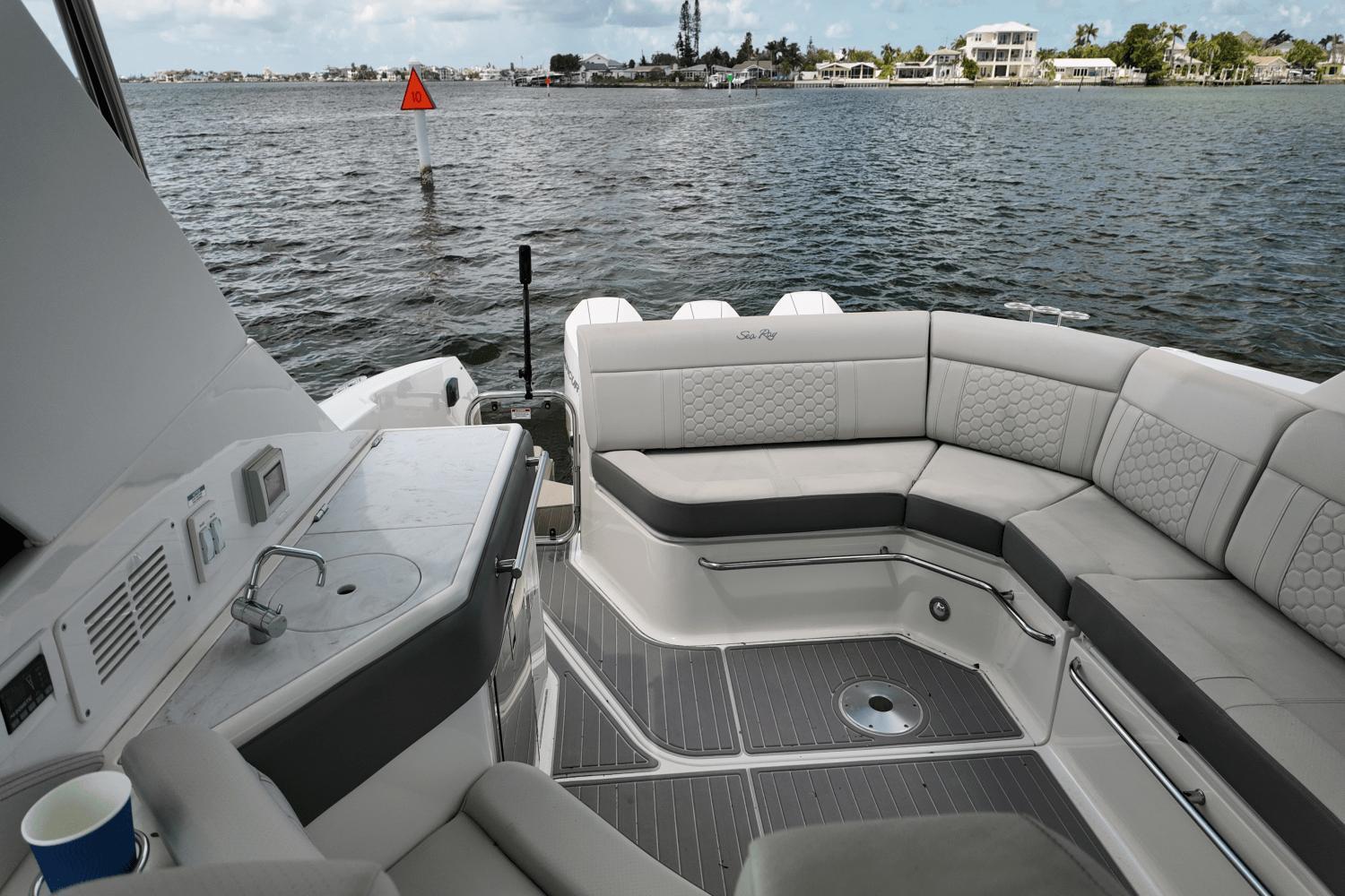 2023 Sea Ray 320 Sundancer Outboard- Lift Kept- 105 hours- Triple 250 Verados- Joystick- Full Glass- Cockpit And Cabin Air Conditioning- Full Sea Dek- Radar- Aft Extended Sunshade- Bow Extended Sunshade- Premier Stereo Upgrade- V-Birth TV- Generator- Cockpit Refrigerator- Cockpit Grill- Fender Clips- Spotlight- Dual Digital Dash- VHF Radio- RGBW LED Lighting- Windlass AnchorOne of Sea Ray’s best-selling cruisers nationwide. The reason is that it fits so many people's lifestyles. It is a fantastic cruiser, sleeps 4, comfortable seating everywhere. Triple Mercury 250 Verado’s push the boat very well and deliver great fuel efficiency at the same time.