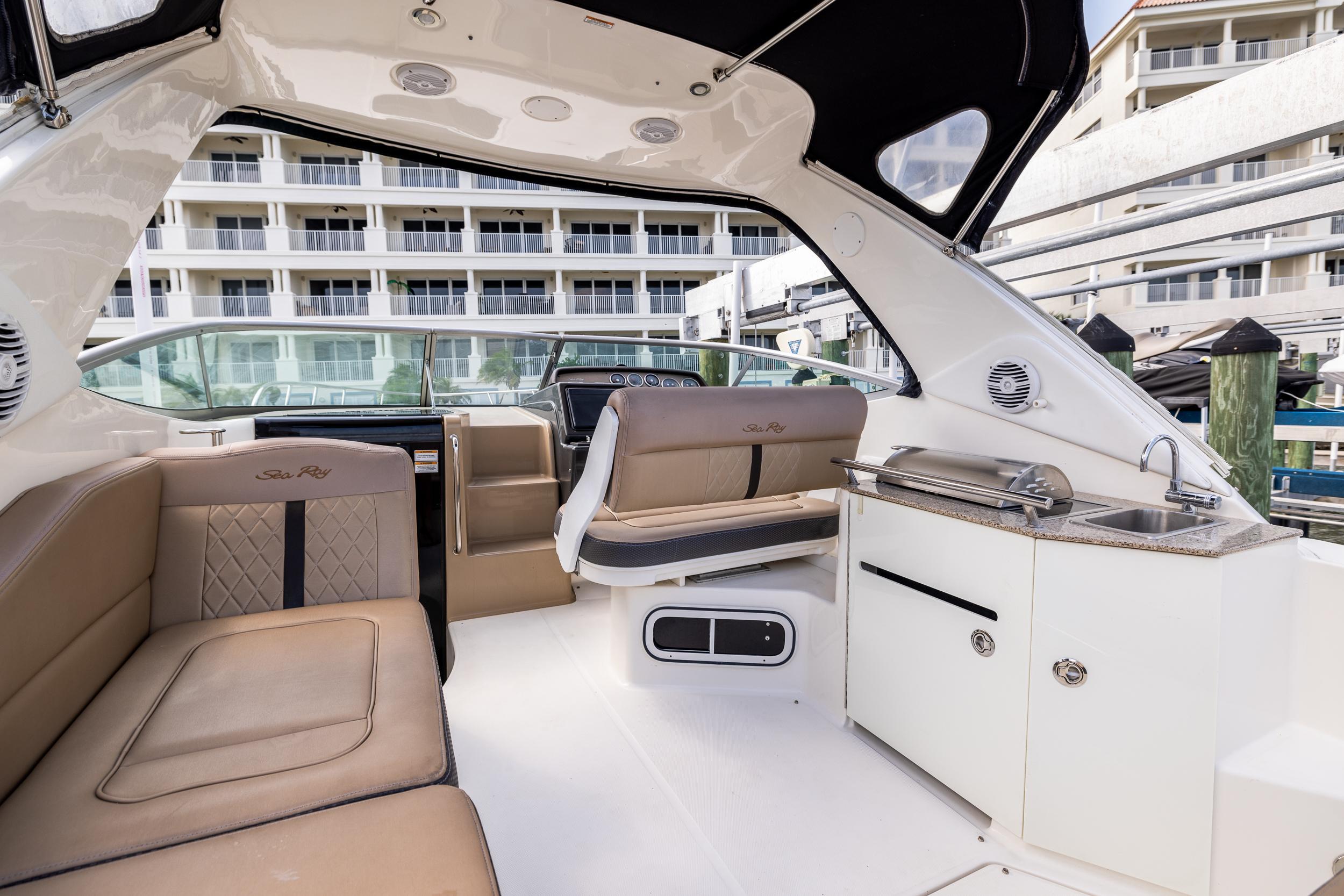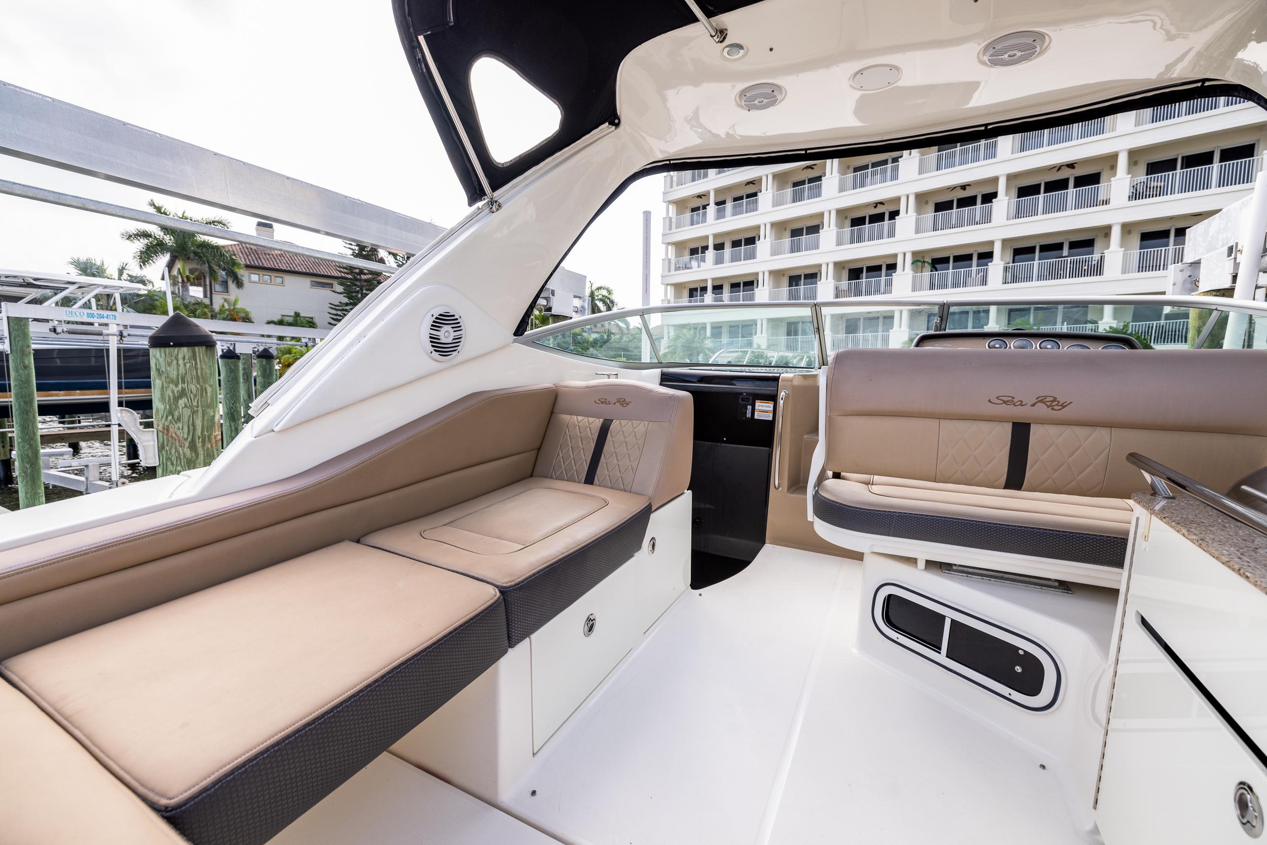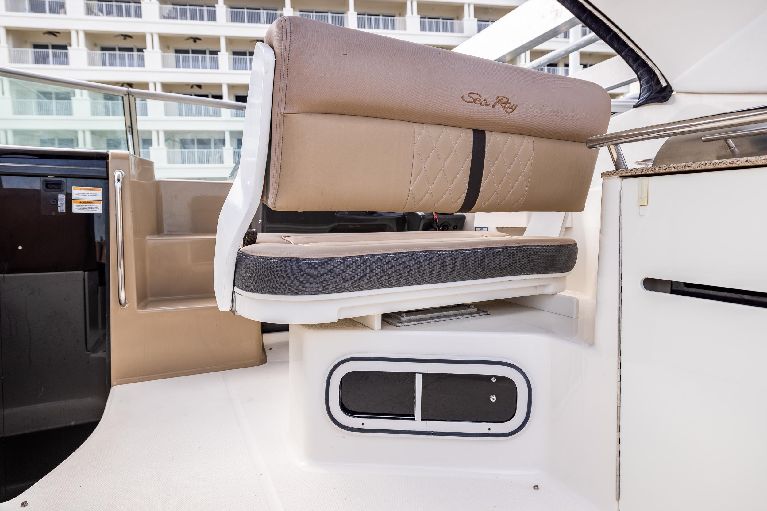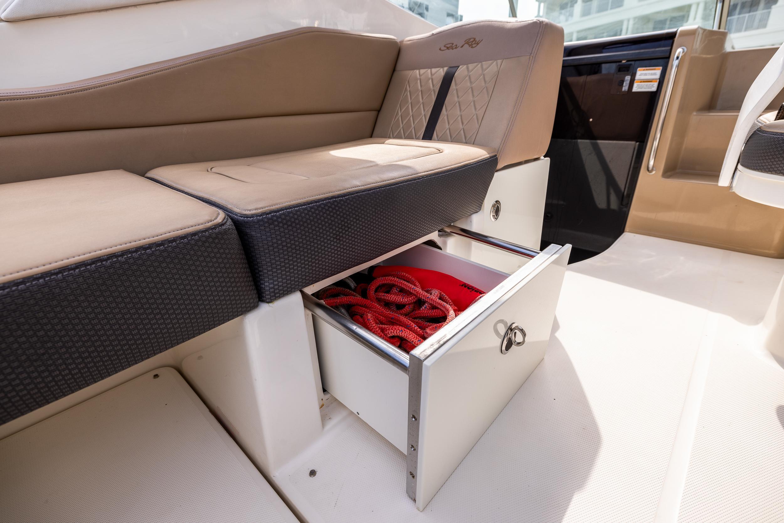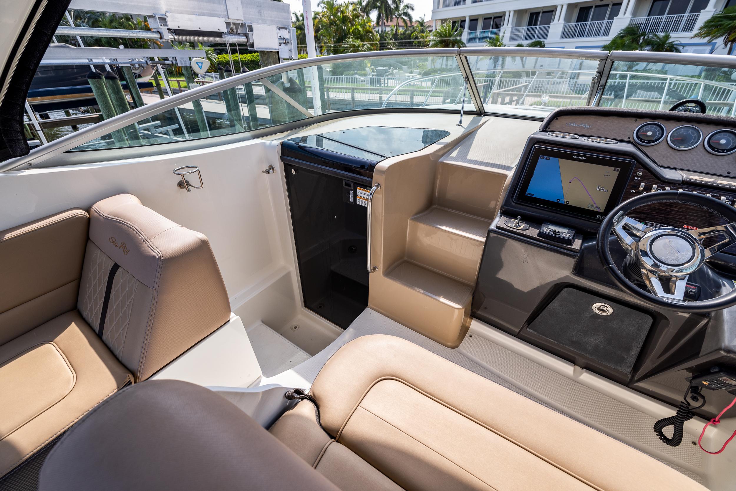 Not all accessories shown or described herein are standard equipment or even available as options. Some features and options may not be available when a boat is built for outside North America and/or has CE Certification. Options and features are subject to change without notice. Not all model-year boats may contain all the features or meet the specifications described herein. Confirm availability of all accessories and equipment with an authorized Sea Ray dealer prior to purchase.