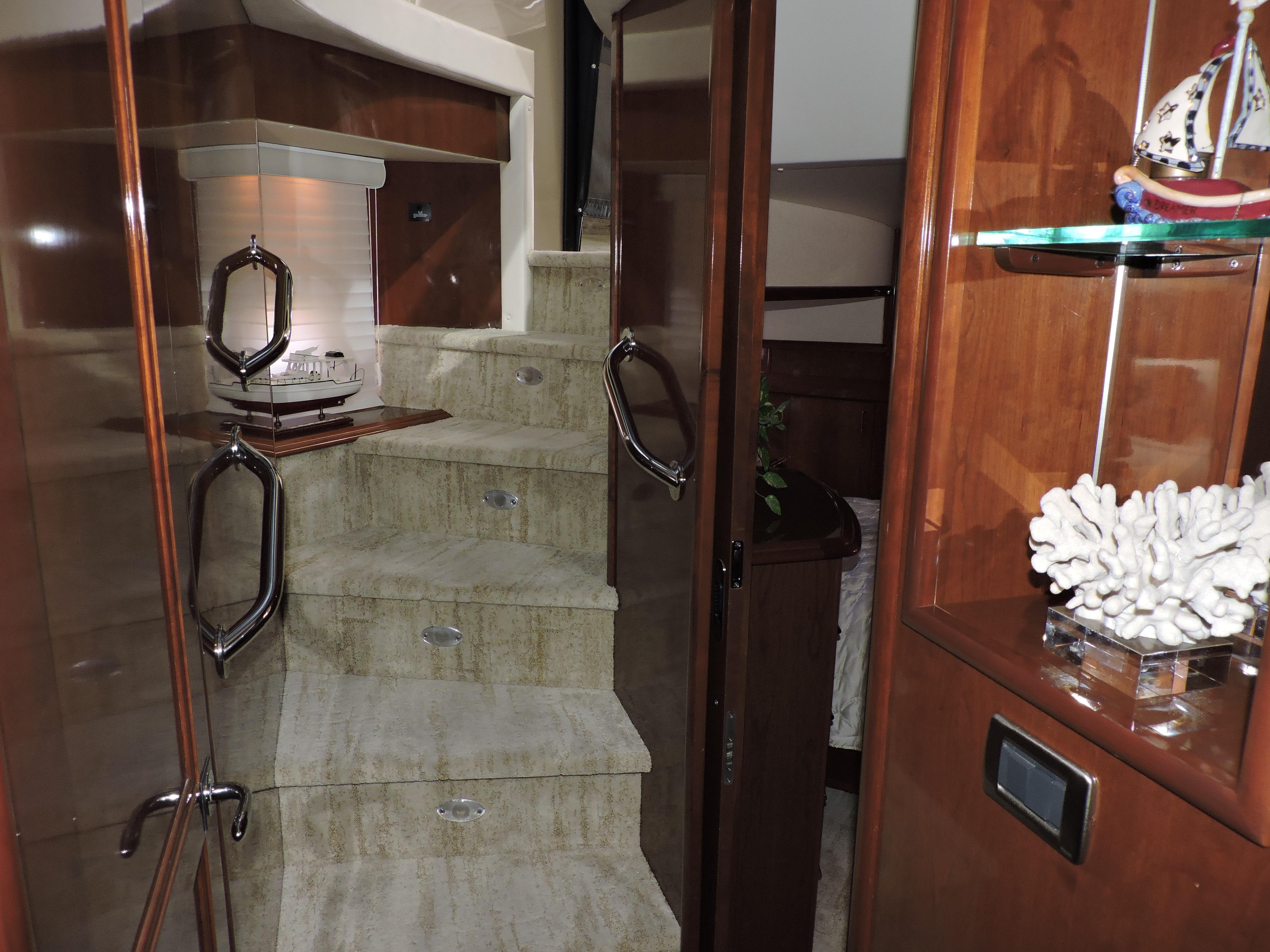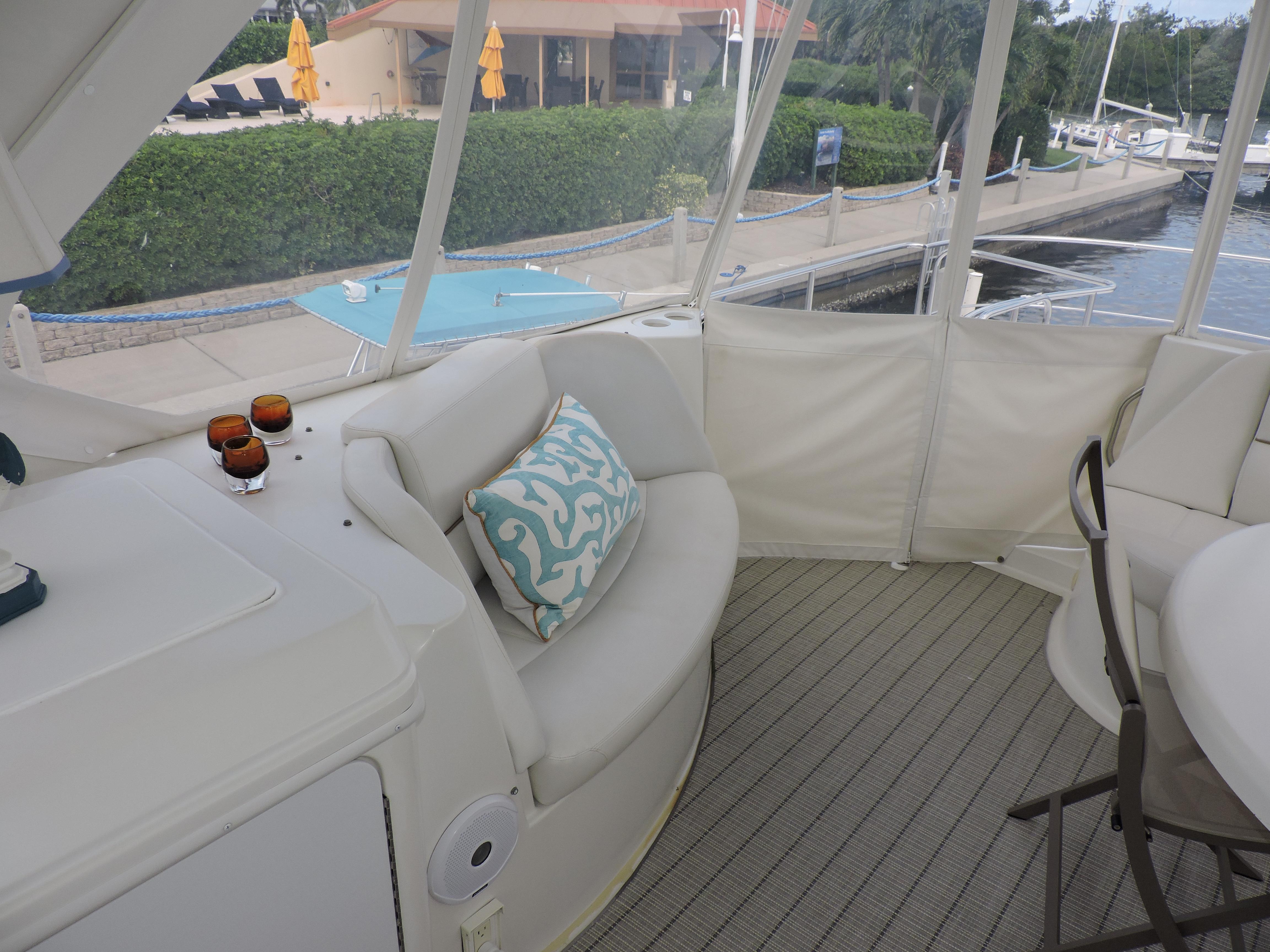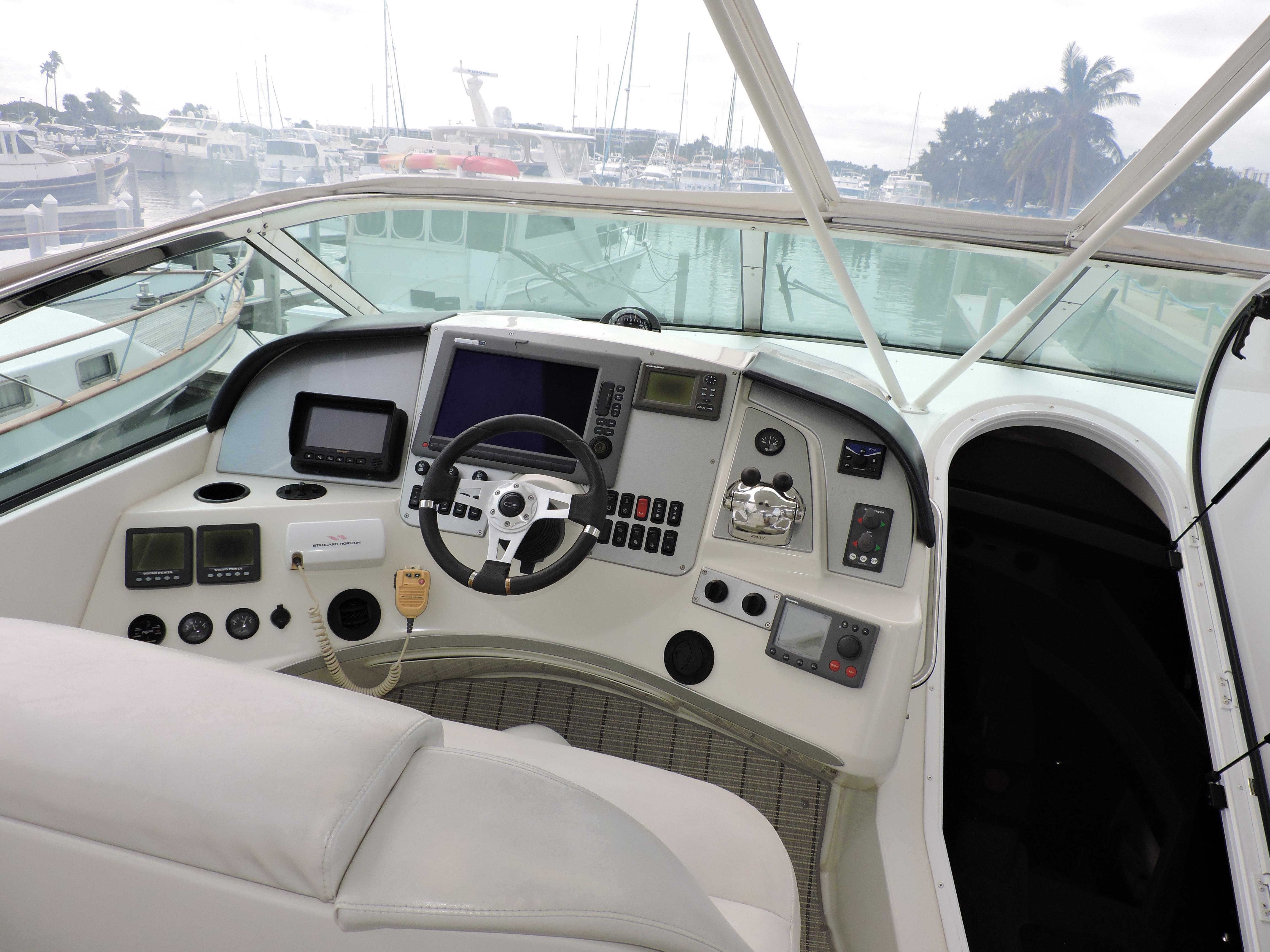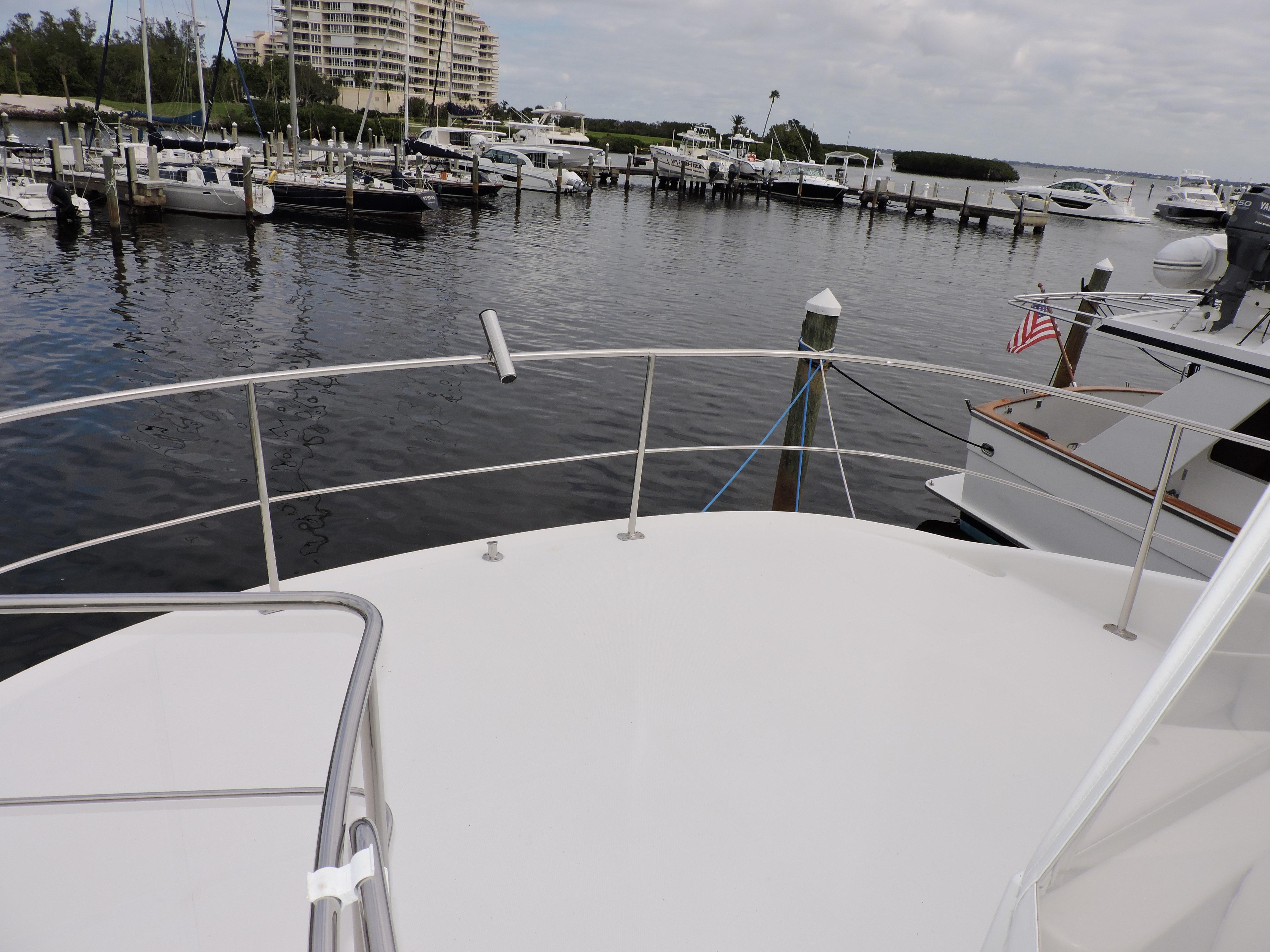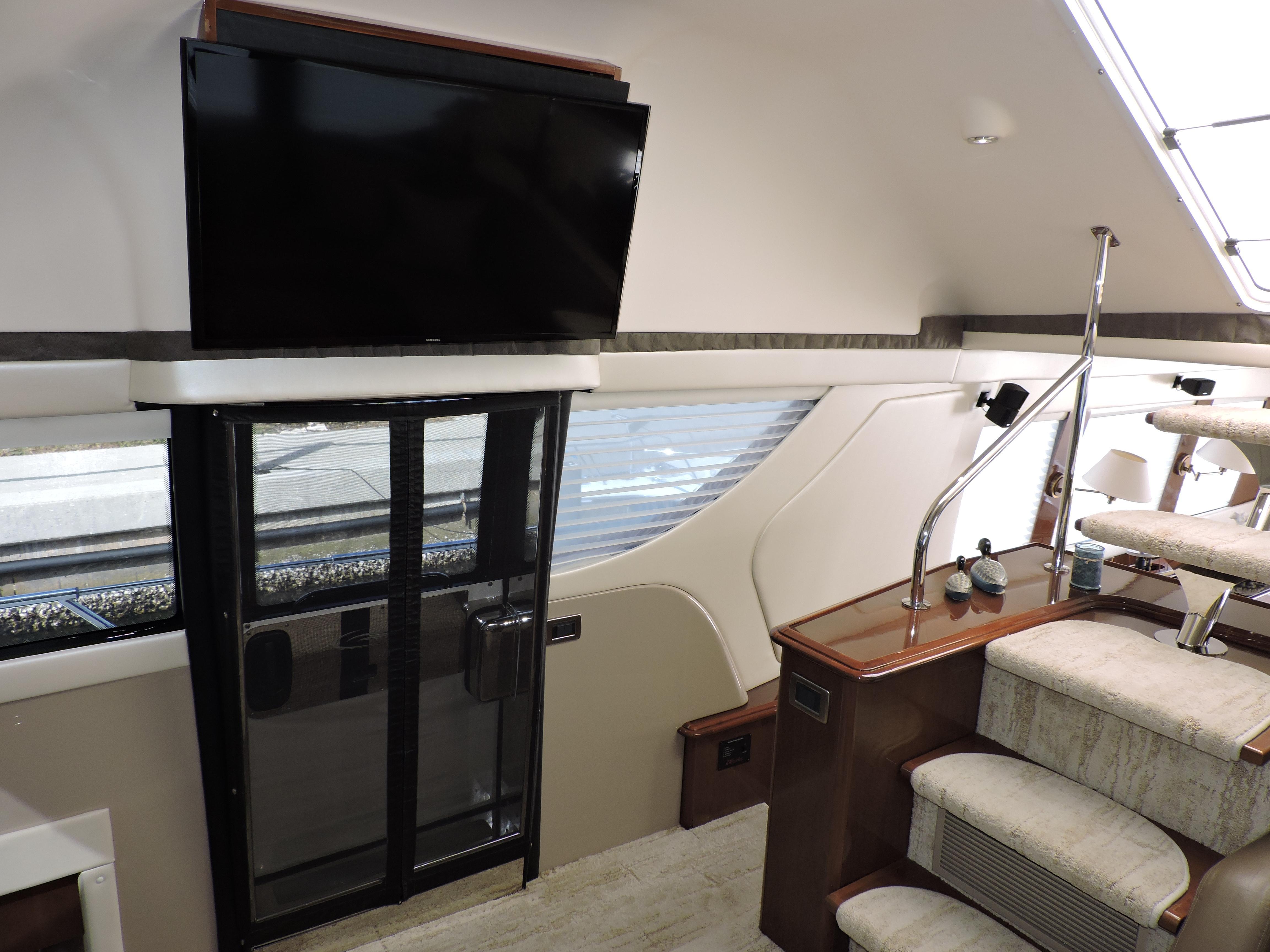 Rare SE model 56 featuring a full upper salon with no lower helm station. You get full entertainment use of this comfortable elevated salon. The interior is tastefully decorated and the padded wall panels and accents were refinished in tasteful materials and custom carpet. The salon features a large storage cabinet the fits the salon accents perfectly and provides generous storage. Mutual Fun II is owned by experienced knowledgeable owners, she is the perfect cruiser or live aboard and Great Loop capable. Located in our marina, Call today for an appointment!