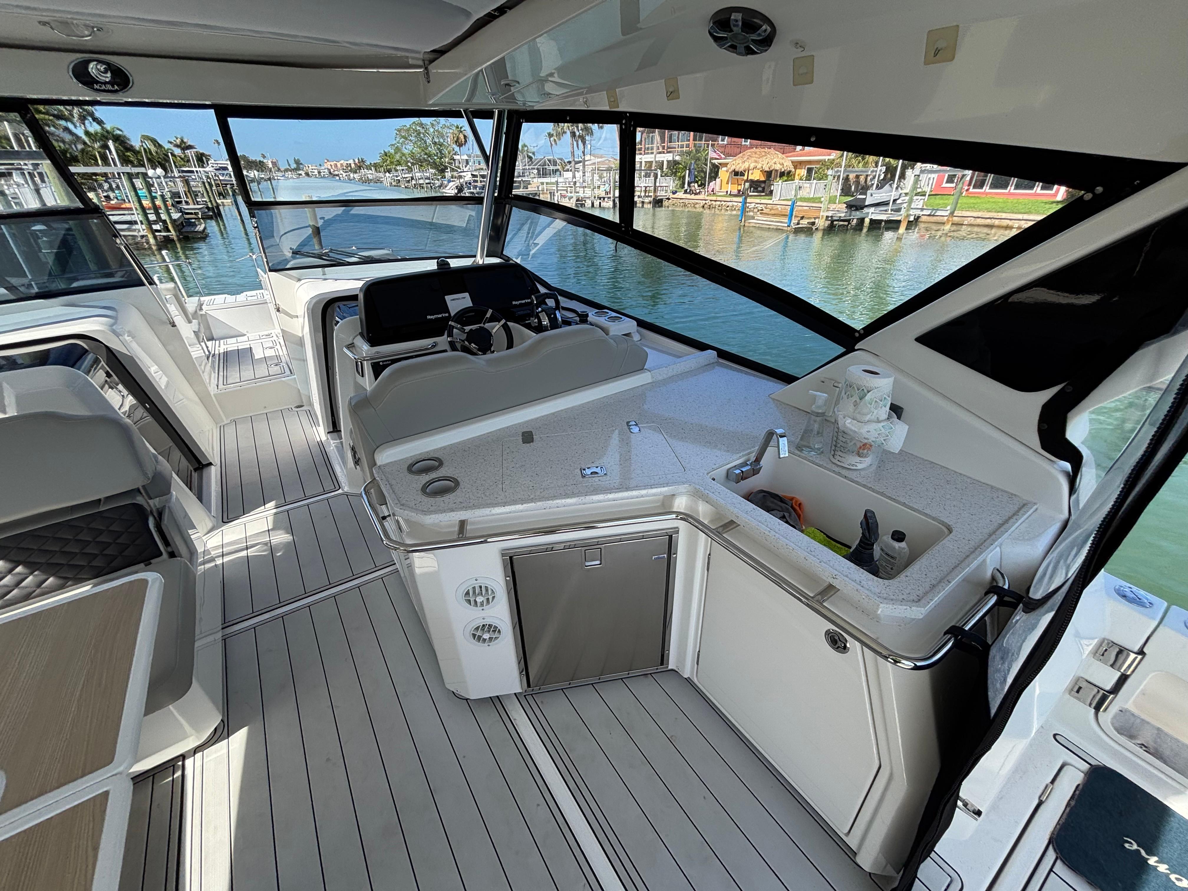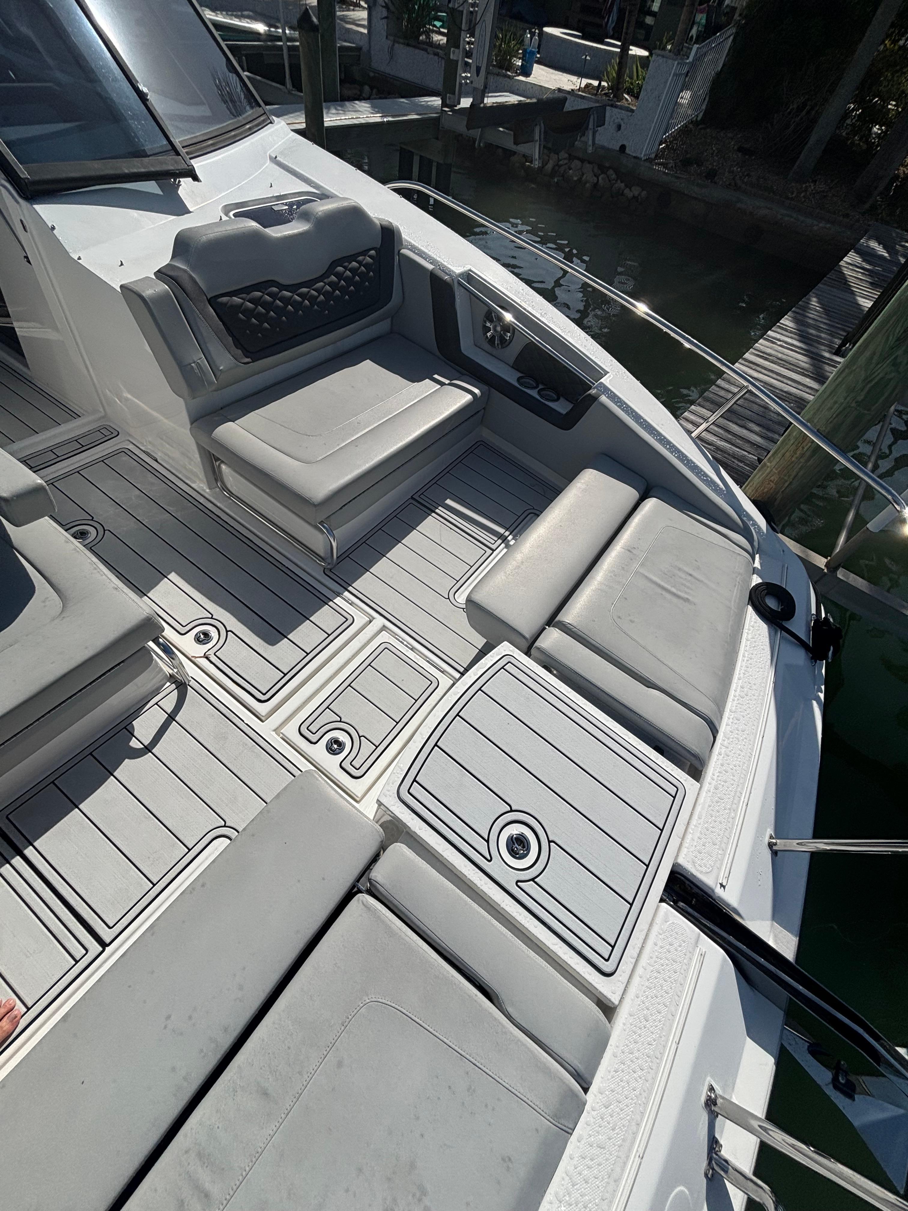 - Forward cockpit seating that comfortably seats 8, converts to two large sunbeds