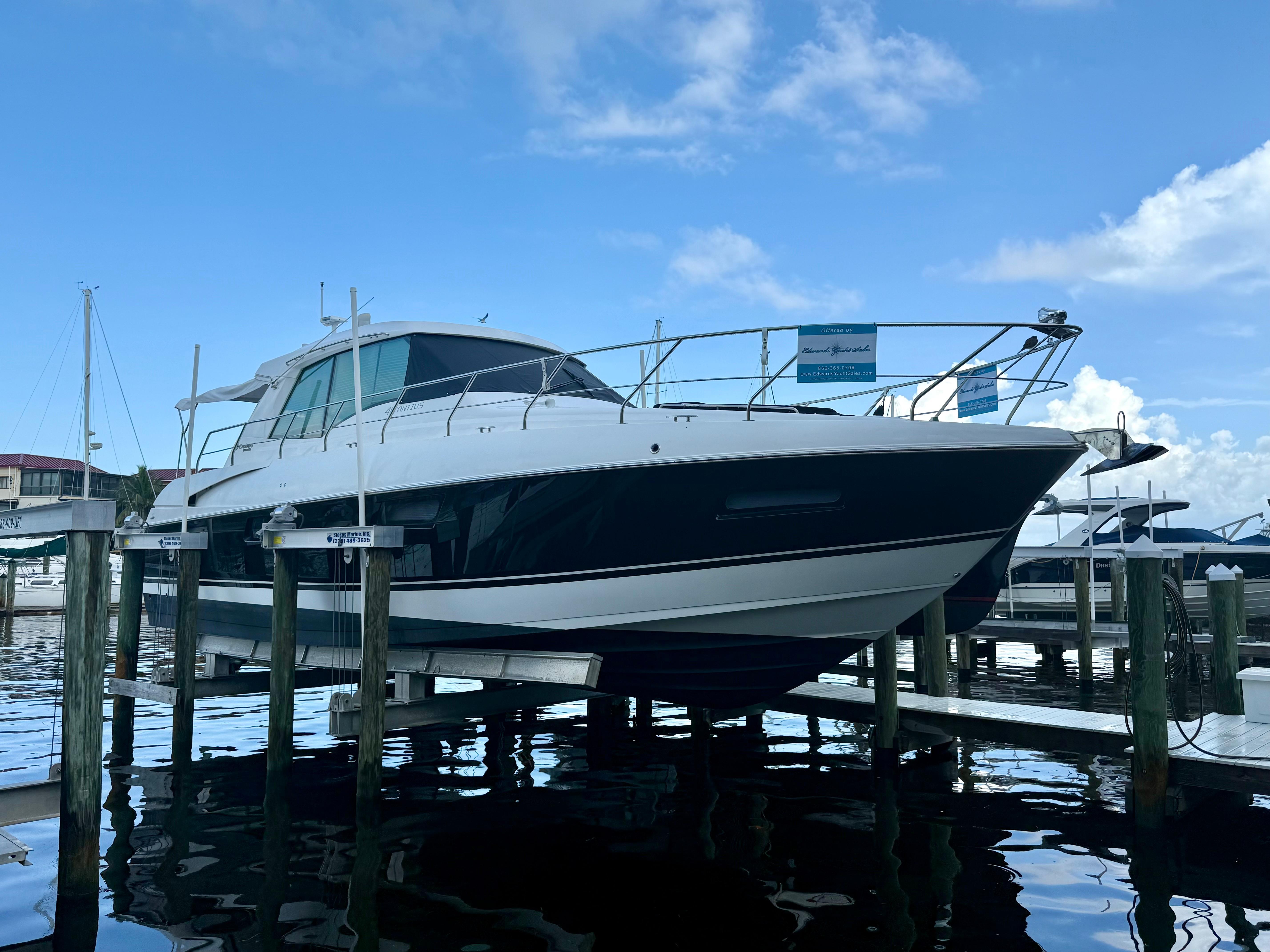 The Current owner has picked out his new boat and is ready to sell this amazing vessel. Outfitted with new awl grip paint, new bottom paint, speed prop, complete detail, fully serviced low hour engines, hydraulic swim platform/dinghy lift. This Bristol Beauty is ready to go. Fully equipped with outside grill, outside refridge and icemaker.
