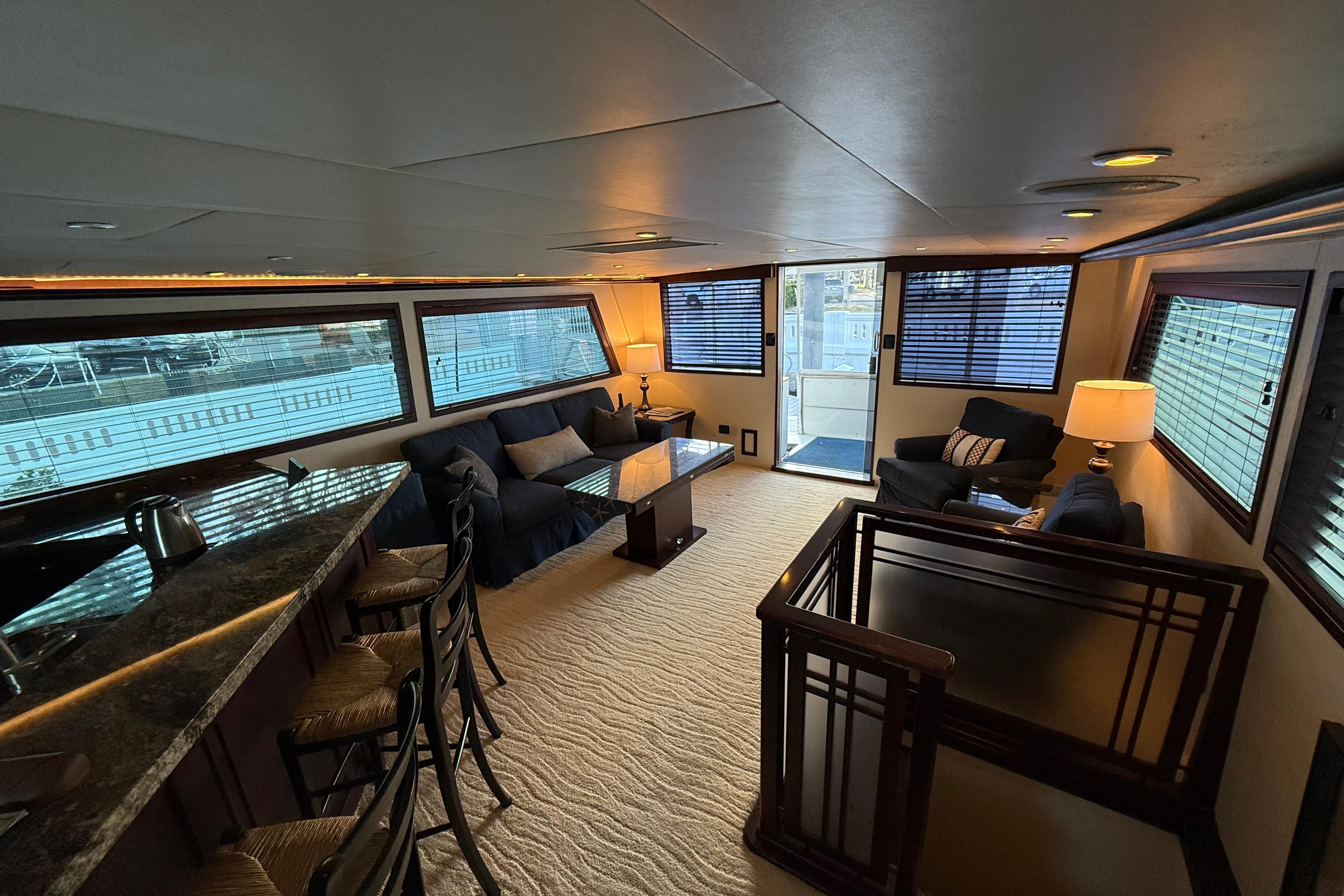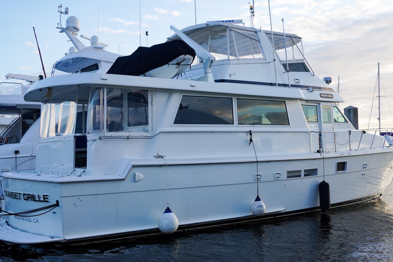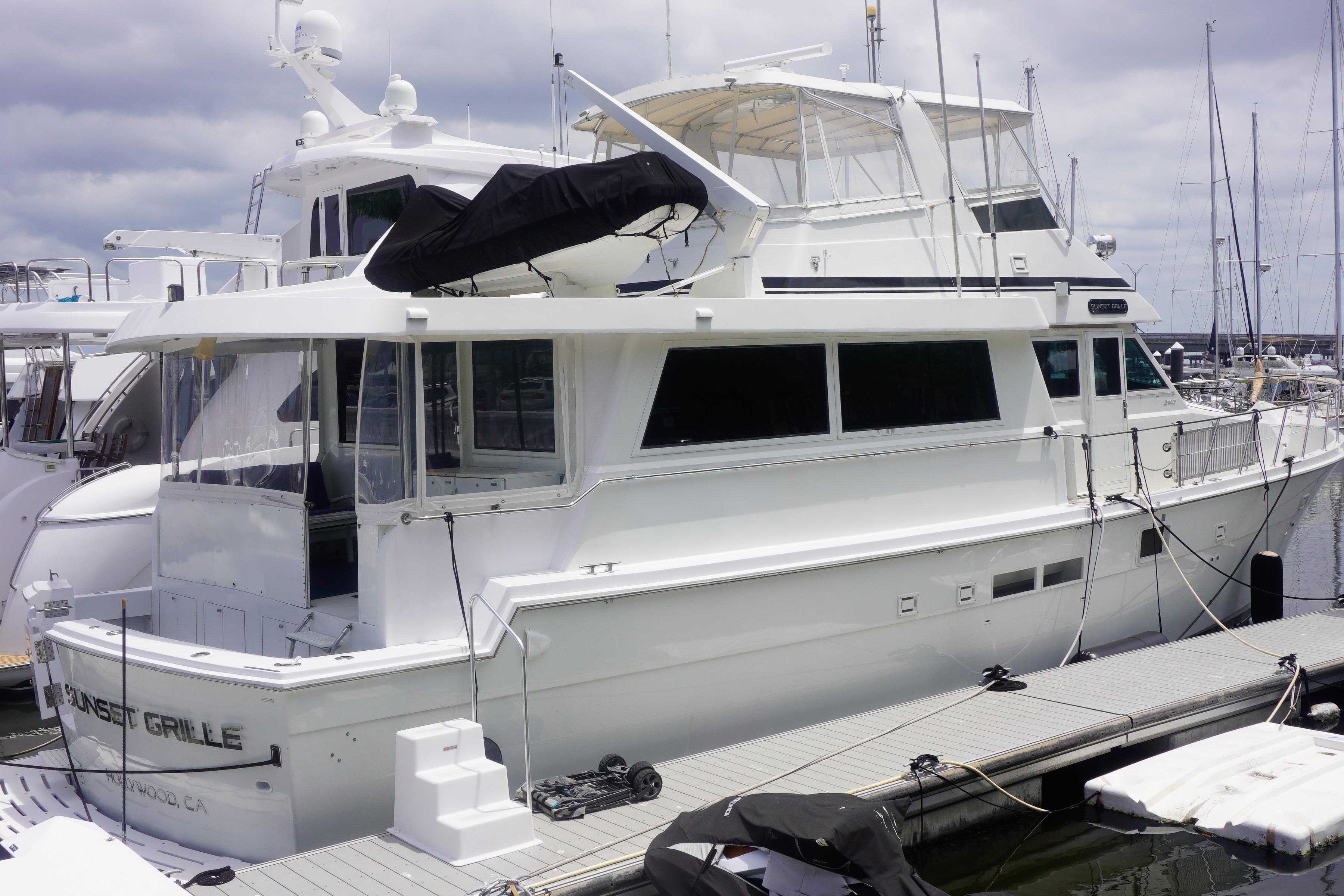 New ListingMotivated SellerUpgraded“Sunset Grille” is a BEAUTIFUL example of this CLASSICHatteras design. With her flowing lines and her towering double deck profile, she is a head turner at any marina!! She features the 4 stateroom GALLEYUP layout, completely updated galley with newer appliances, granite countertops, newer flooring, Naiad stabilizers, bow and stern thrusters, 3 staterooms with island queen berths and 1 stateroom with over and under berth. The gorgeousTOTALLY PRIVATE MASTER STATEROOMis aft and has a separate entrance from the salon. 3 forward staterooms are accessed by a separate stairs port of the pilot house. This boat is one of the RARE MODELS that was extended by Hatteras at the factory before she was ever sold. Hatteras recognized the demand for cockpits in the marketplace and took several of their 54 motor yachts and extended them 8’ to add an aft deck and a cockpit. Built on the same WIDE 17’6” beam with a modified vee hull, this boat is fitted with the optional 720HP Detroit Diesels. “Sunset Grille” is an ideal boat if you love entertaining or have the desire to live aboard or would like to take an extended long cruise. This boat is ready to cruise. Do not miss this opportunity to own this UNIQUE CUSTOM 62’ COCKPIT MOTORYACHT. Please click on full specs for more information.