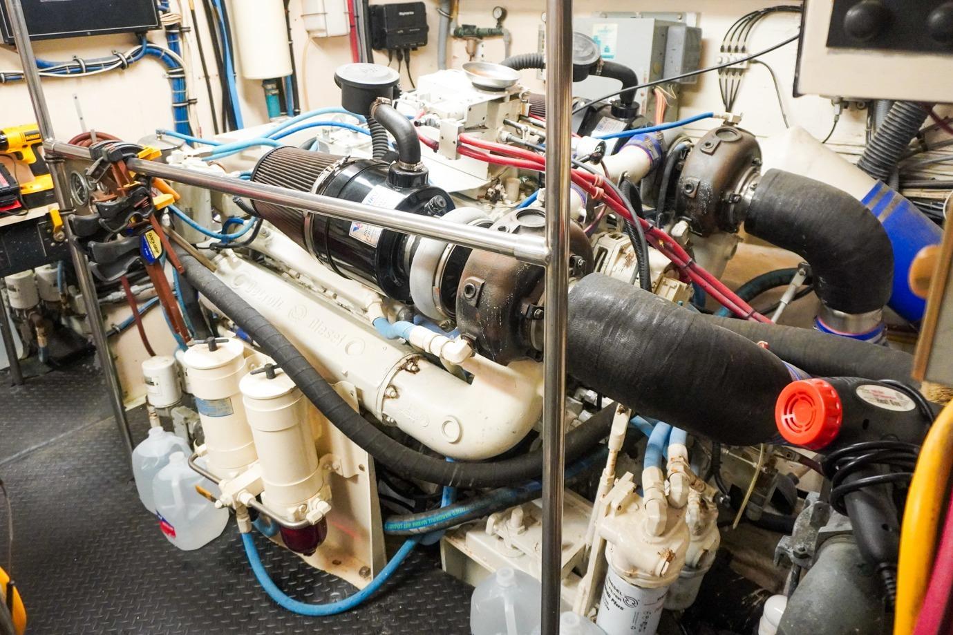 "Sunset Grille” is a fine example of a well-maintained Hatteras with Detroit Diesel 8V 92 TA engines. Over the years this yacht has been upgraded and updated with various new systems, parts and proper maintenance. The Detroit Diesel 8V 92s run and sound great and have no smoke whatsoever at starting. In 2019 according to the previous owner it was reported that the port engine had 732 and starboard engine had 1091 hours since the major overhaul (SMOH). The current owner is a knowledgeable owner who has enjoyed and used the boat by putting less than 500 hours for local use only.