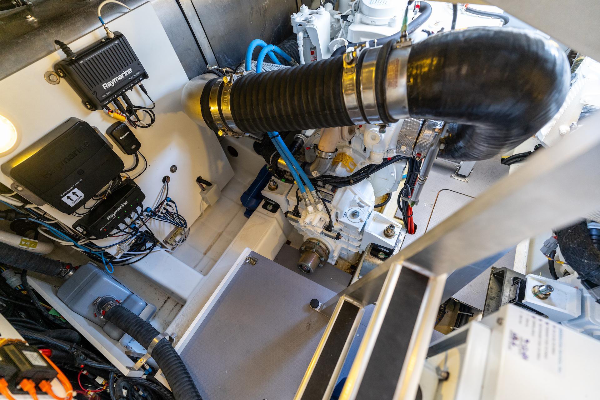 The Prestige 420 is available with multiple engine possibilities (2 x 380 hp or 2 x 425 hp) to adapt its power to suit your cruising style. This has the upgraded engine package with 425hp engines. This innovation combines the joystick and a variable bowthruster to ensure easy handling and precise control. On the interior, the Prestige 420 reveals her ingenuity and refinement. High-end finishes and materials create a harmonious and inviting atmosphere.