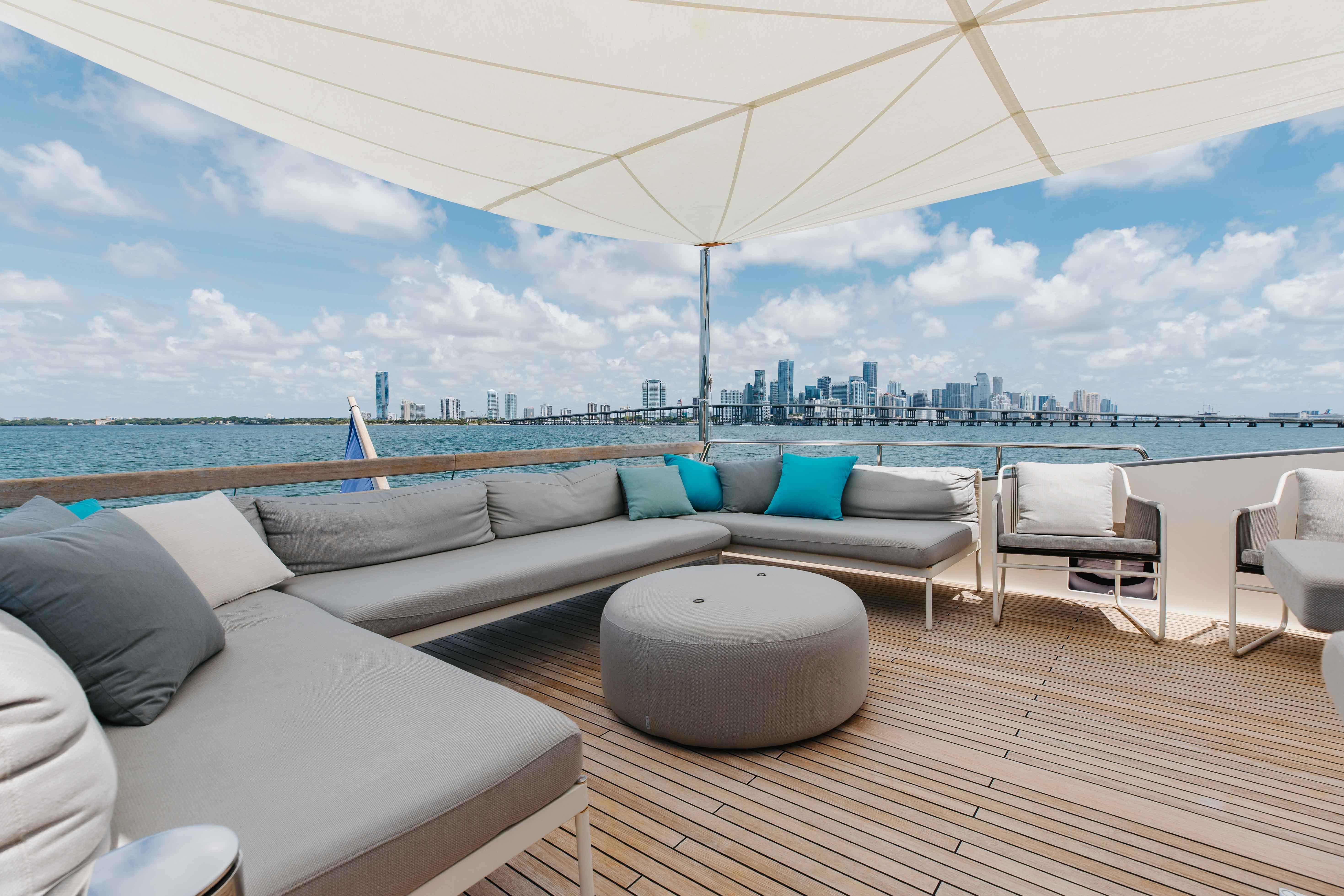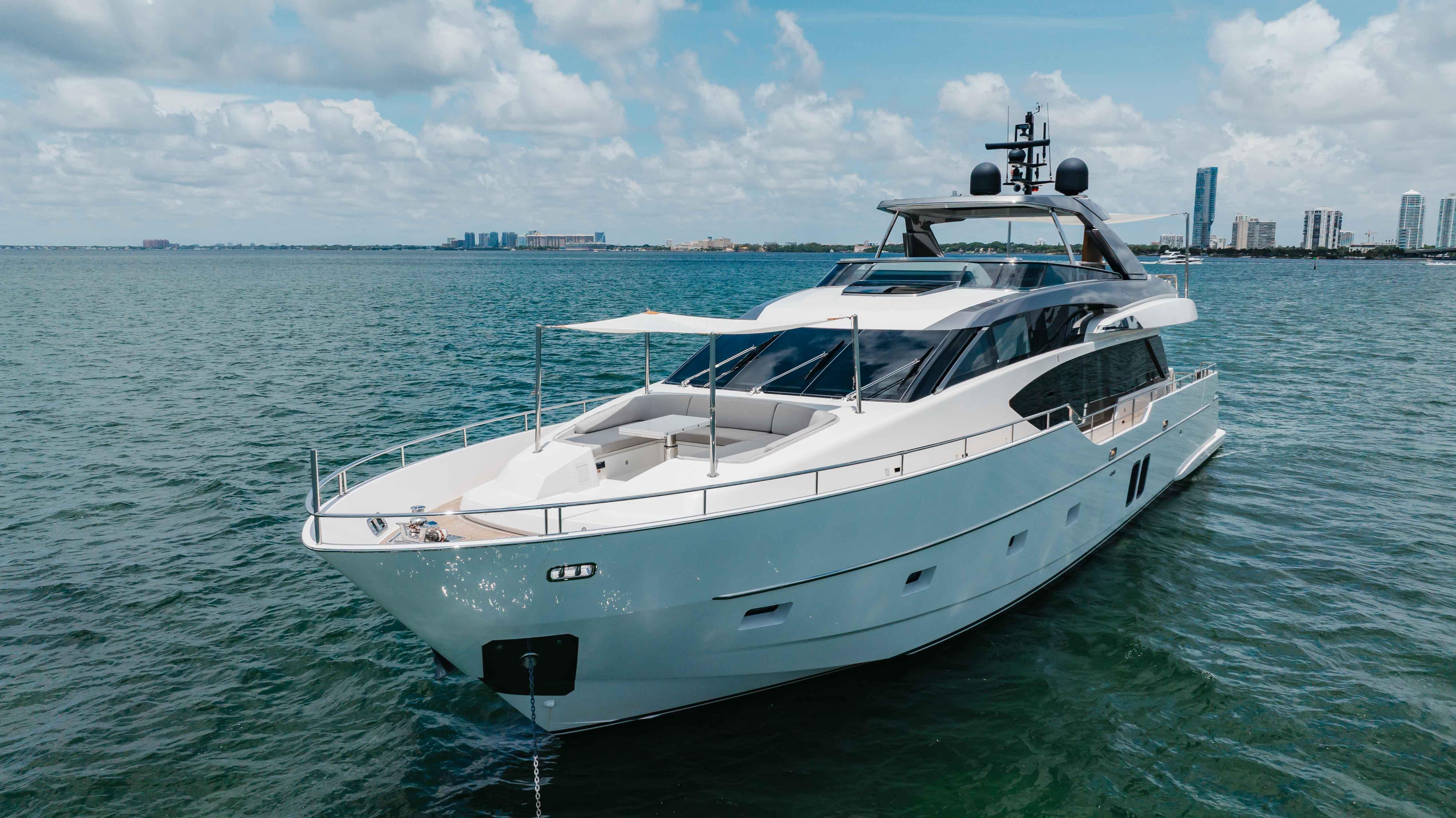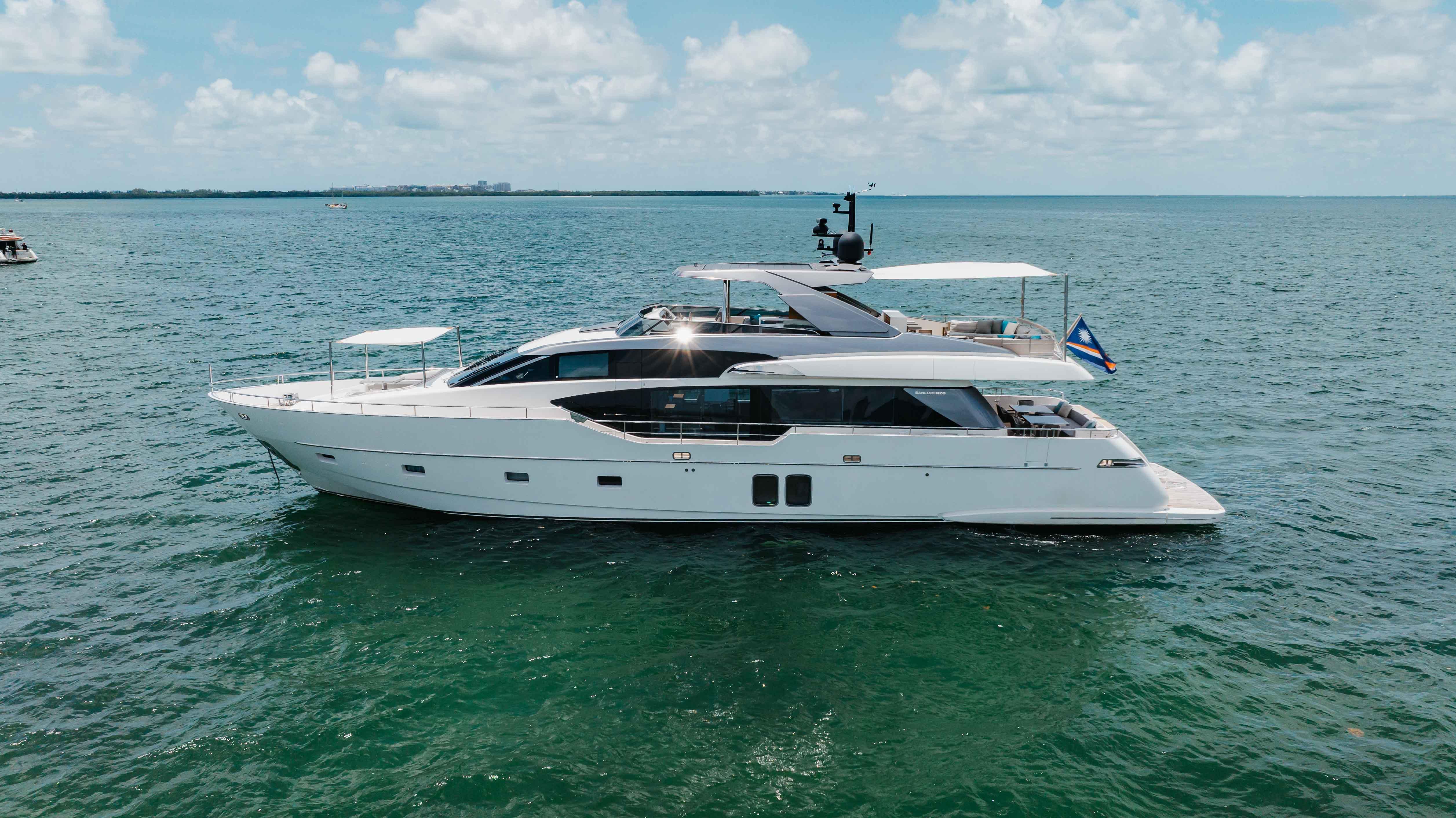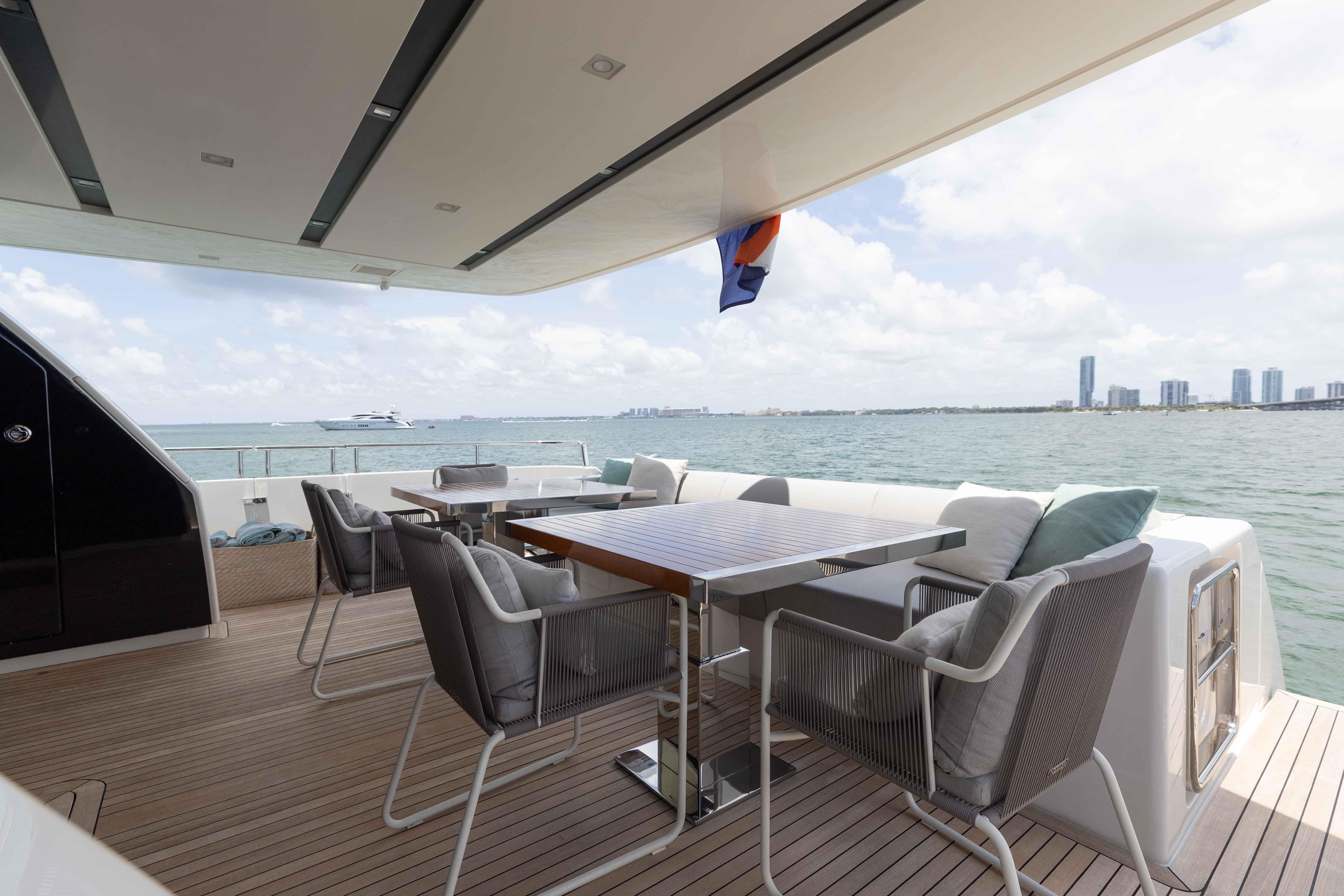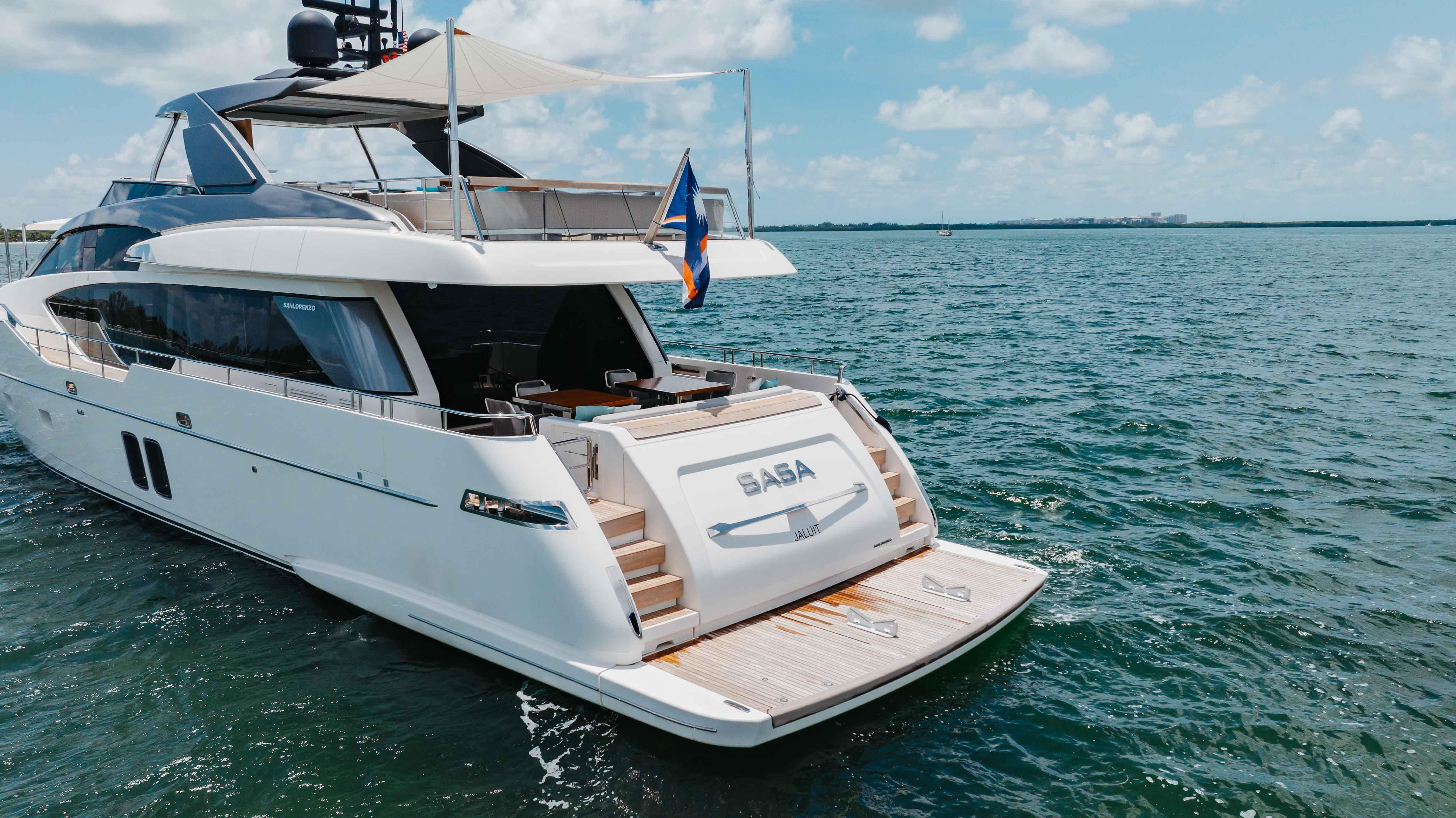 Available for sale for the first time by her original owner, “SASA”, is the newest delivered SL86 available, fullyloaded with Americas edition factory options, and a beautiful contemporary ‘beachhouse’ interior design. The SL86 hull design is among the builder’s most capable and popular models ever introduced. Sleek yetunderstated styling defines this timeless Officina Italiana Design, exuding quality from every angle. Based inMiami, FL she is conveniently located for showings.4 Cabins below sleep 8 guests, plus 4 crew forward ensure excellent flow and privacy for guests. Some of the yacht’s notable highlights include upgraded MAN engines for a top speed of 27 knots, electric fin stabilization, a large toy garage, hydraulic swim platform, on-deck day-head, louvered bridge sunshade, 900 gallon watermaker, additional fridge drawers and winecoolers throughout, a full wet bar with pop up TV and BBQ on the bridge. Her striking design elements include Dedon / Cassina / and Roda free-standing furniture, Teak decks, and Carrara white Italian marble.