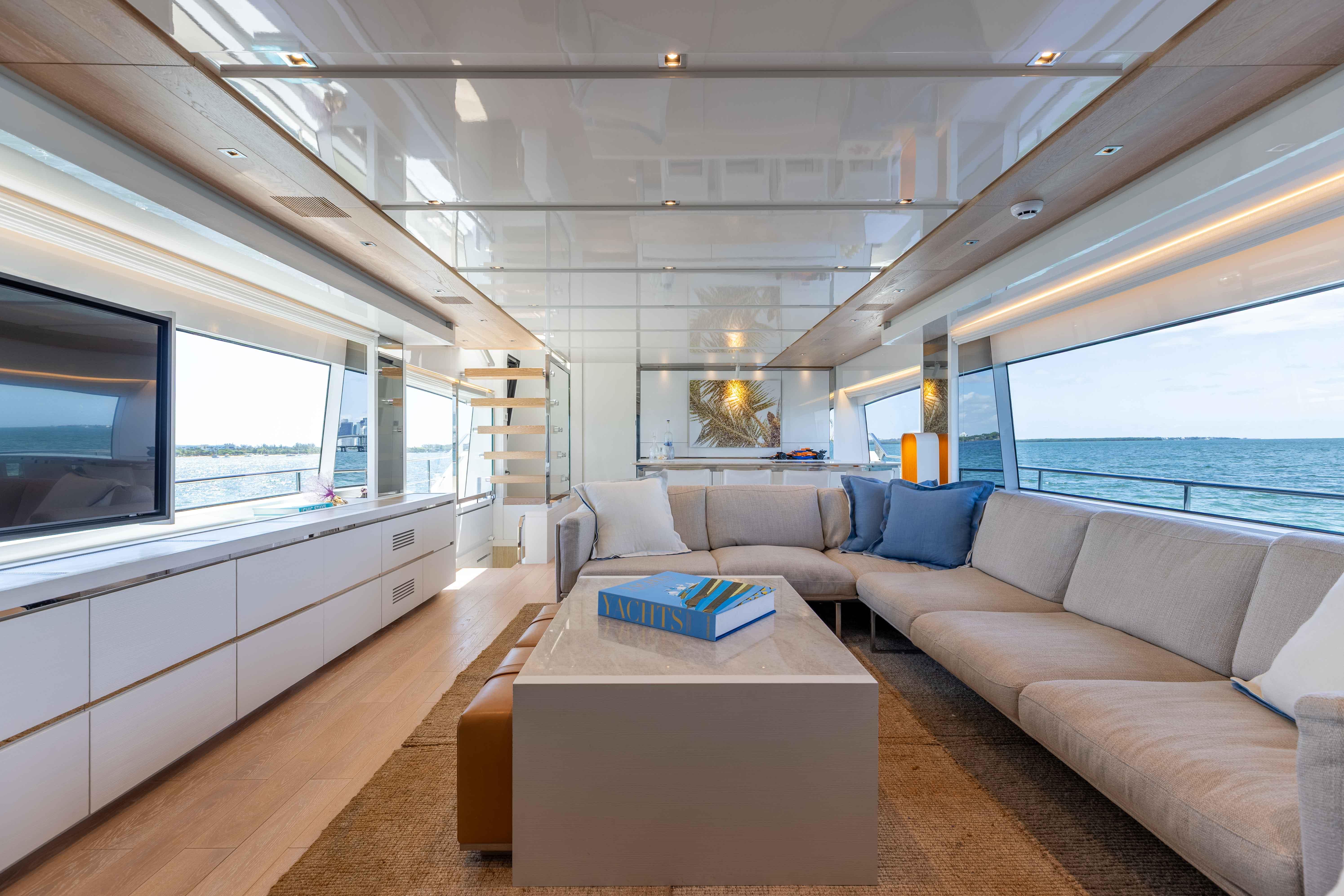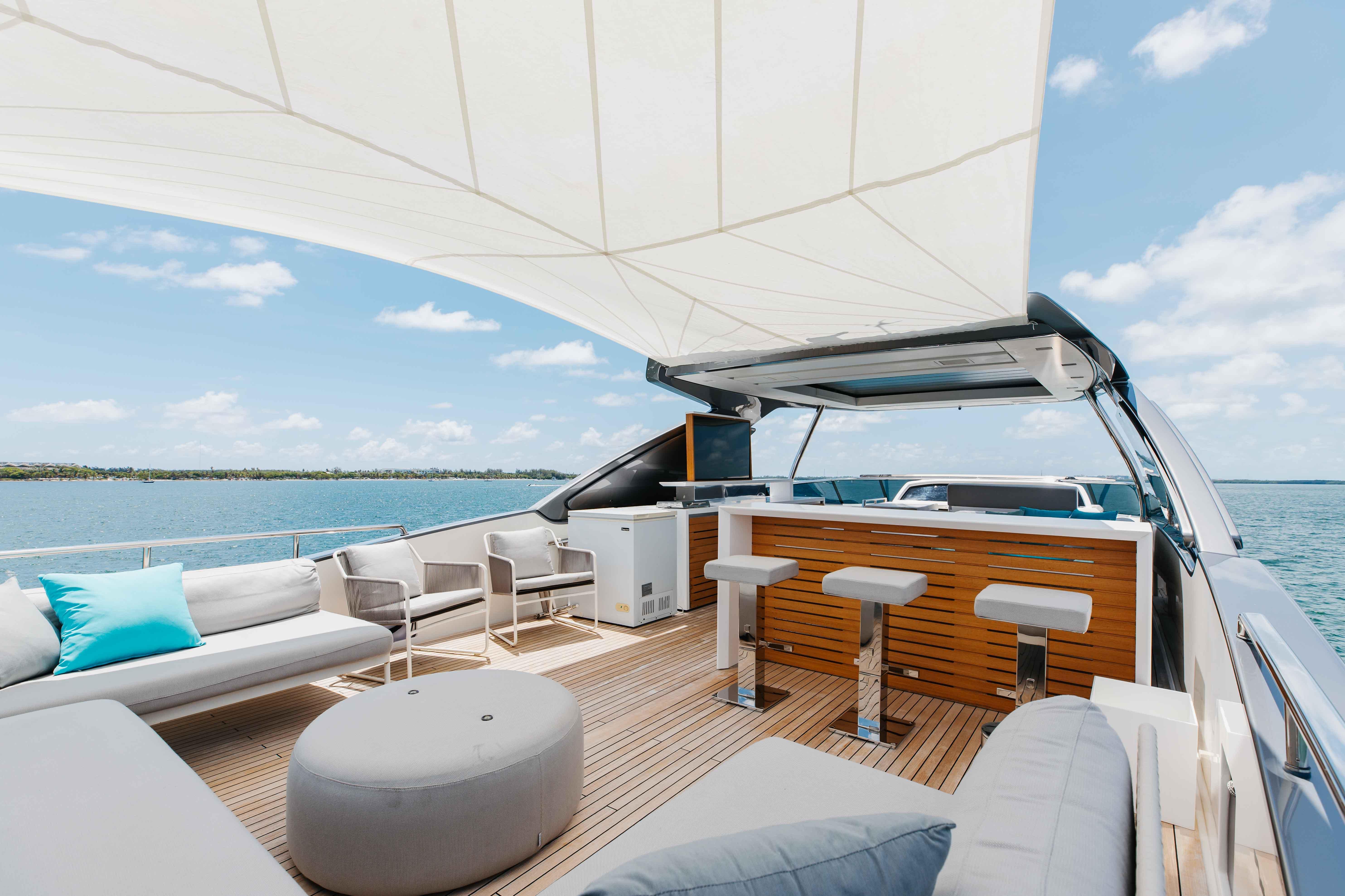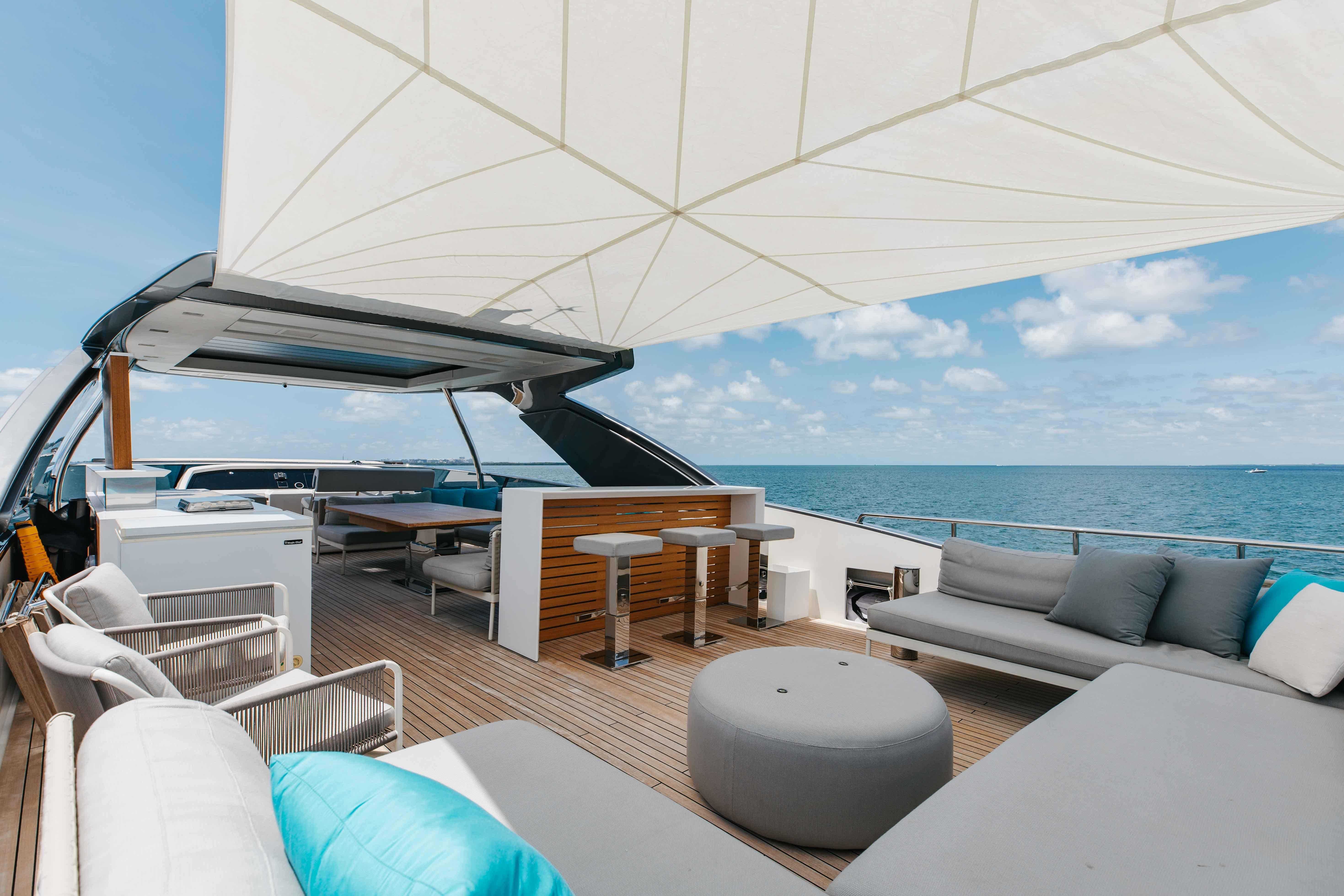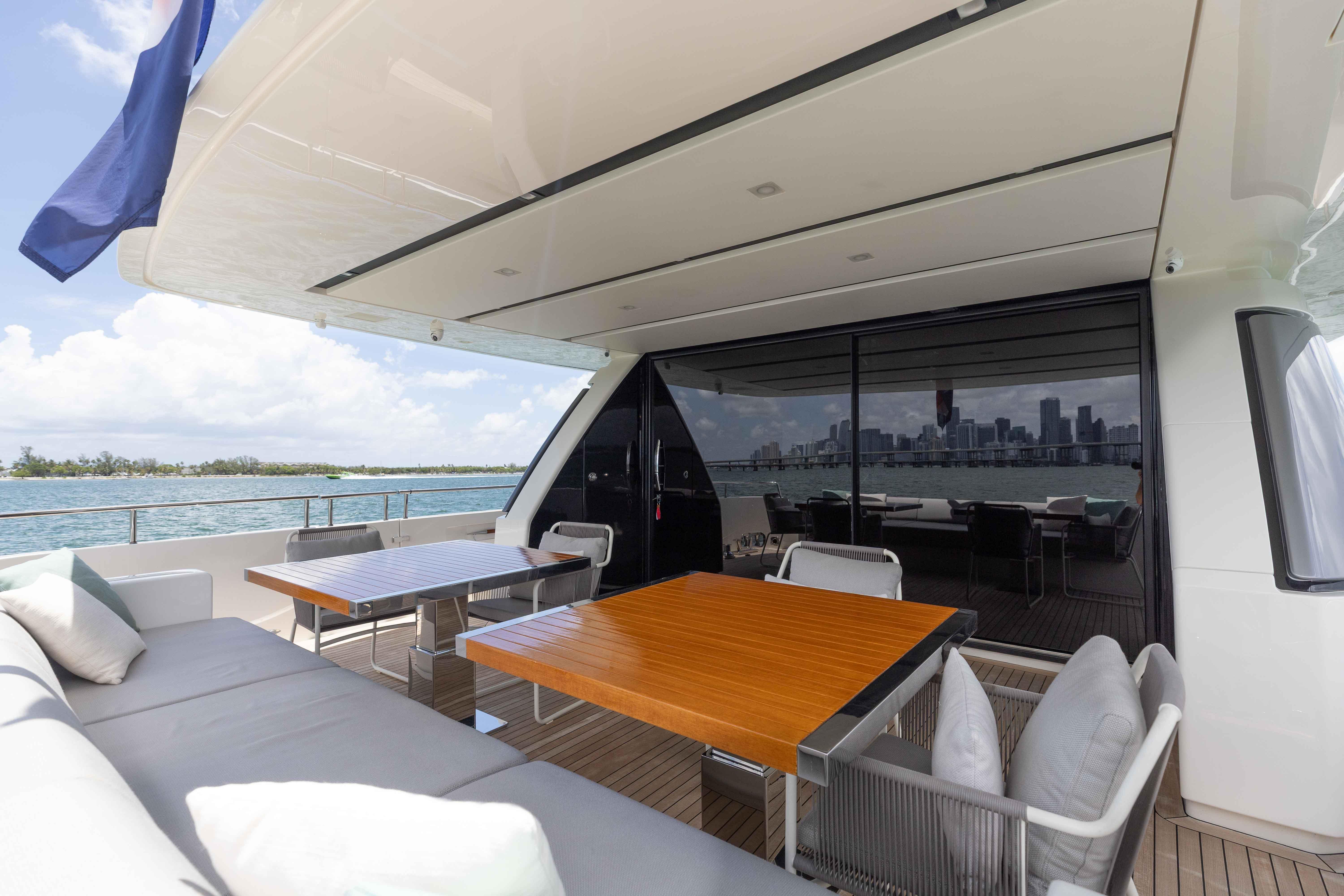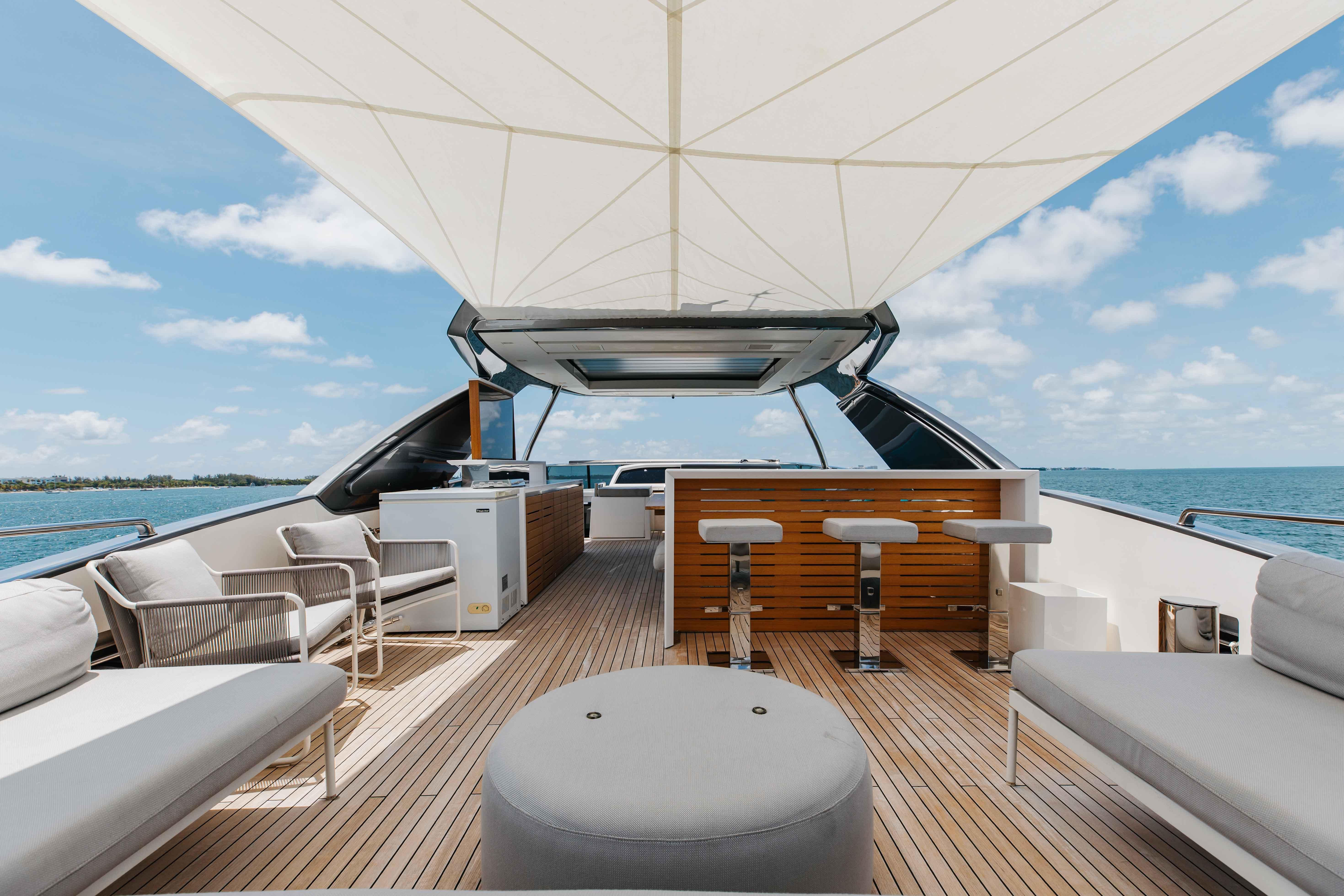 Available for sale for the first time by her original owner, “SASA”, is the newest delivered SL86 available, fullyloaded with Americas edition factory options, and a beautiful contemporary ‘beachhouse’ interior design. The SL86 hull design is among the builder’s most capable and popular models ever introduced. Sleek yetunderstated styling defines this timeless Officina Italiana Design, exuding quality from every angle. Based inMiami, FL she is conveniently located for showings.4 Cabins below sleep 8 guests, plus 4 crew forward ensure excellent flow and privacy for guests. Some of the yacht’s notable highlights include upgraded MAN engines for a top speed of 27 knots, electric fin stabilization, a large toy garage, hydraulic swim platform, on-deck day-head, louvered bridge sunshade, 900 gallon watermaker, additional fridge drawers and winecoolers throughout, a full wet bar with pop up TV and BBQ on the bridge. Her striking design elements include Dedon / Cassina / and Roda free-standing furniture, Teak decks, and Carrara white Italian marble.