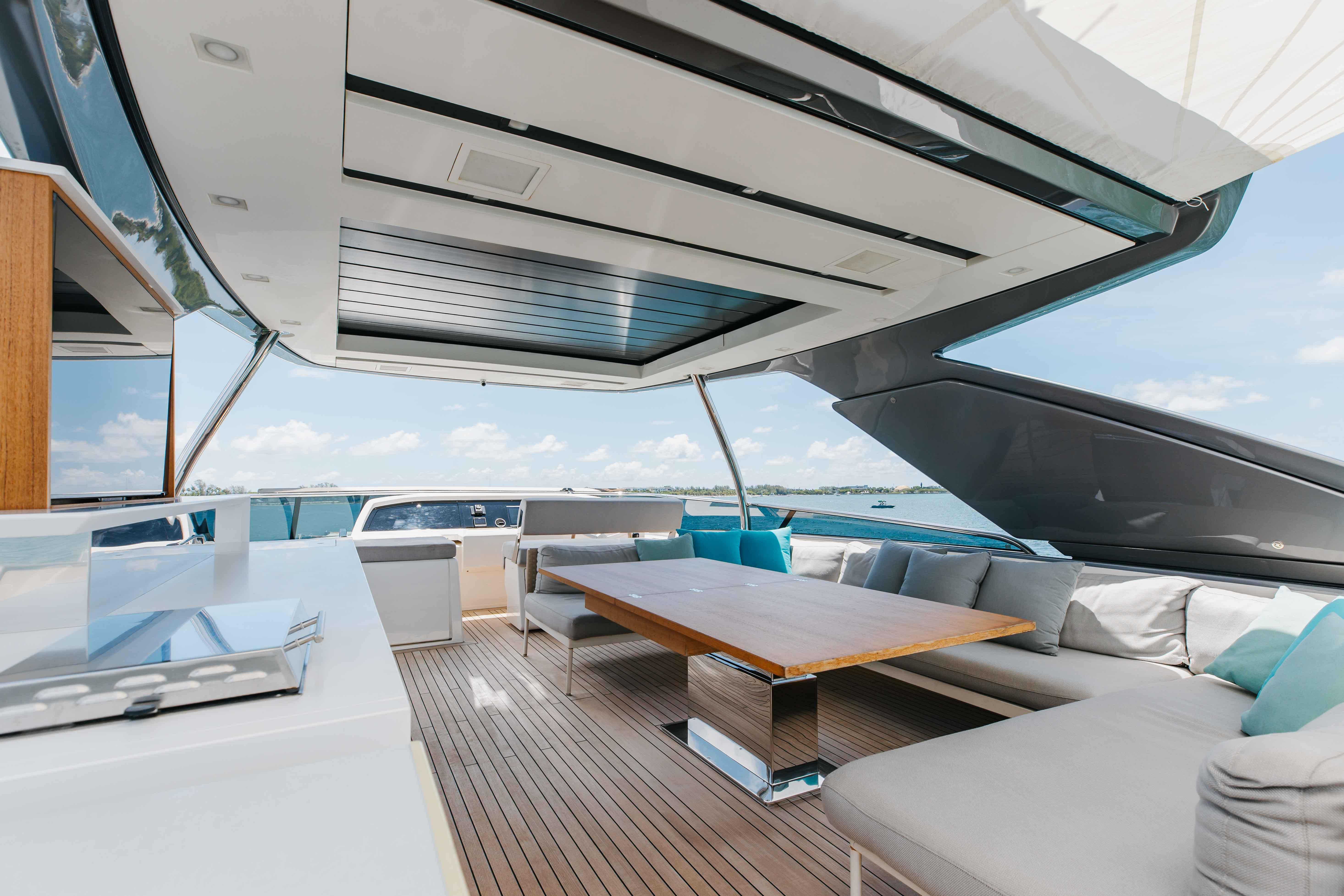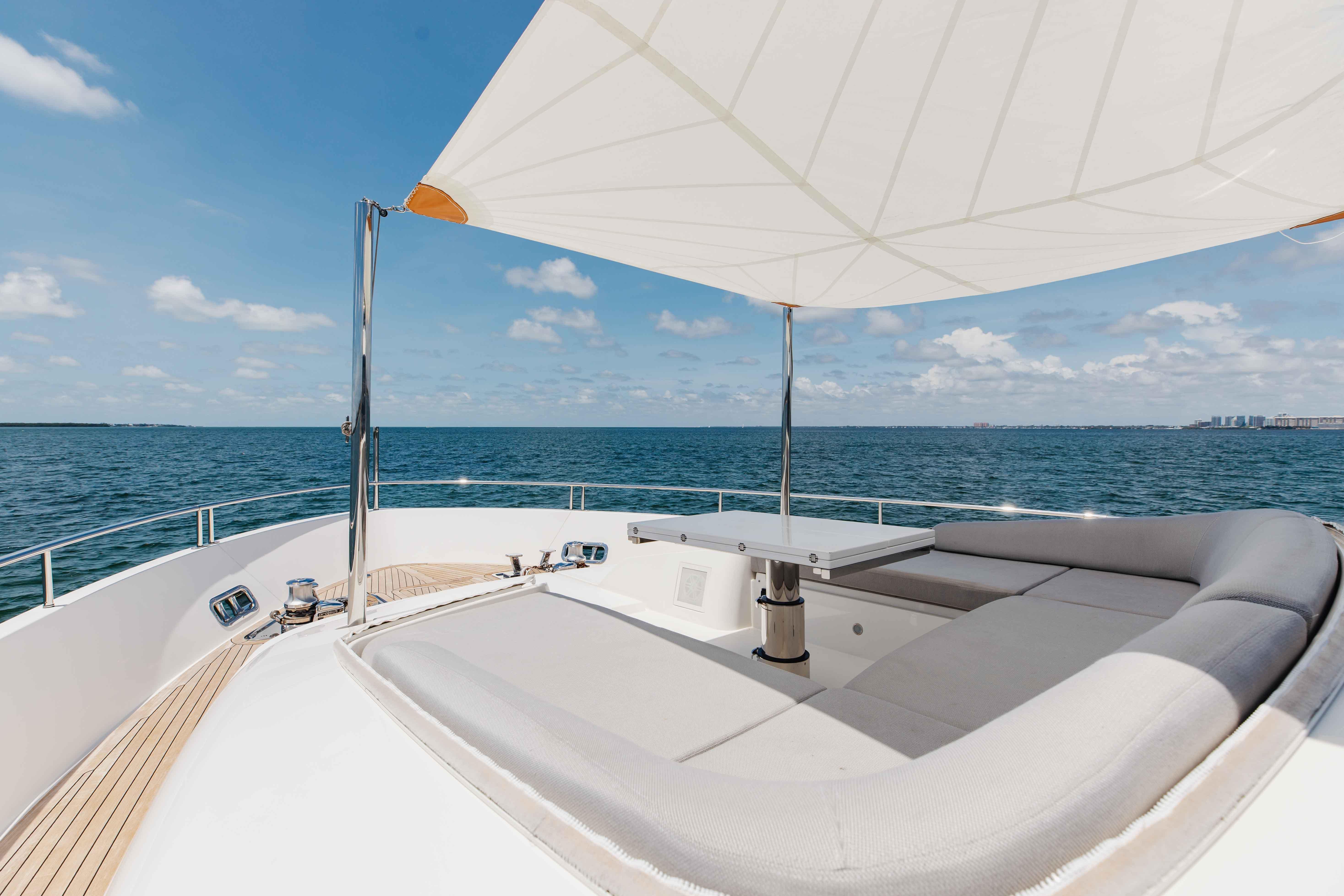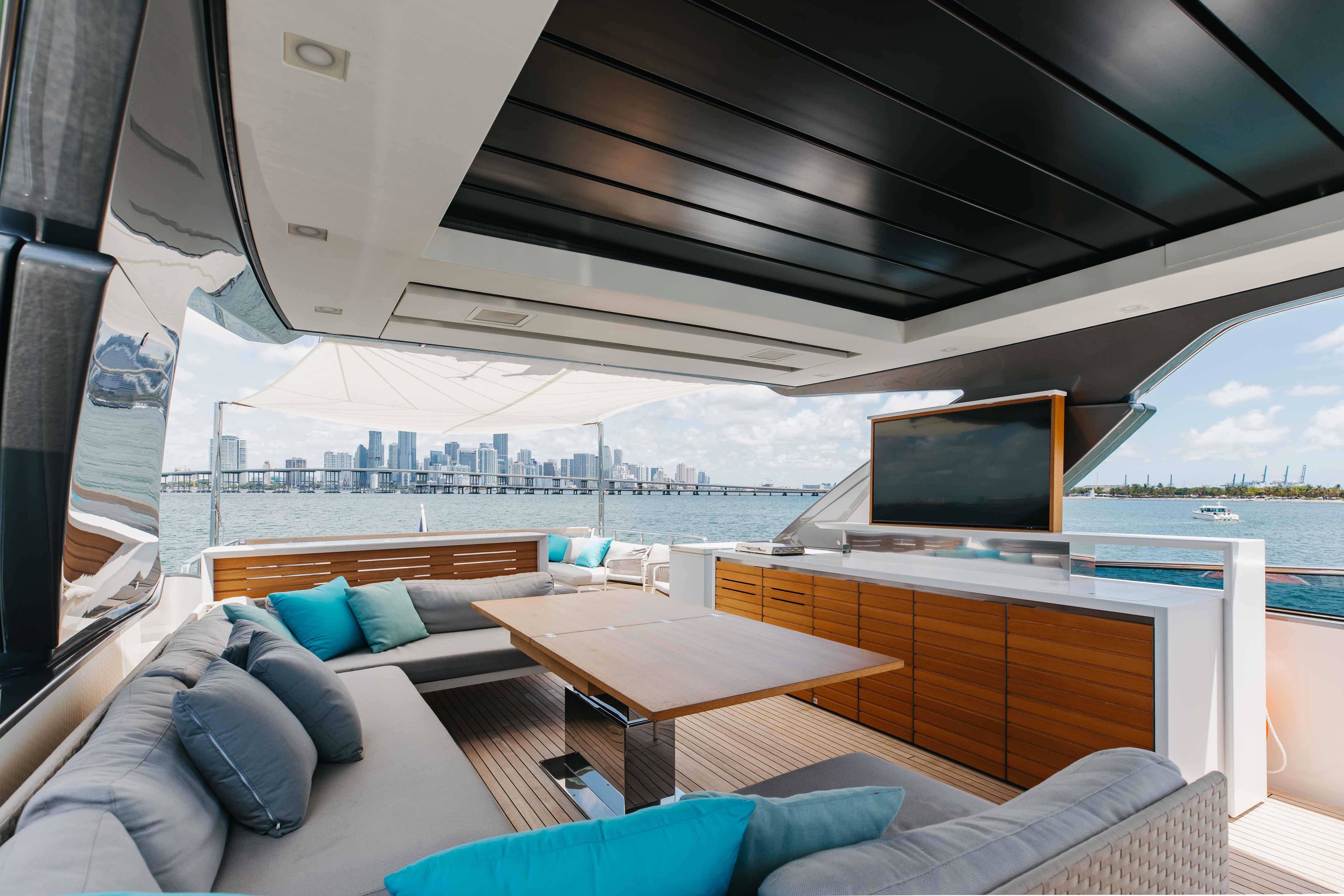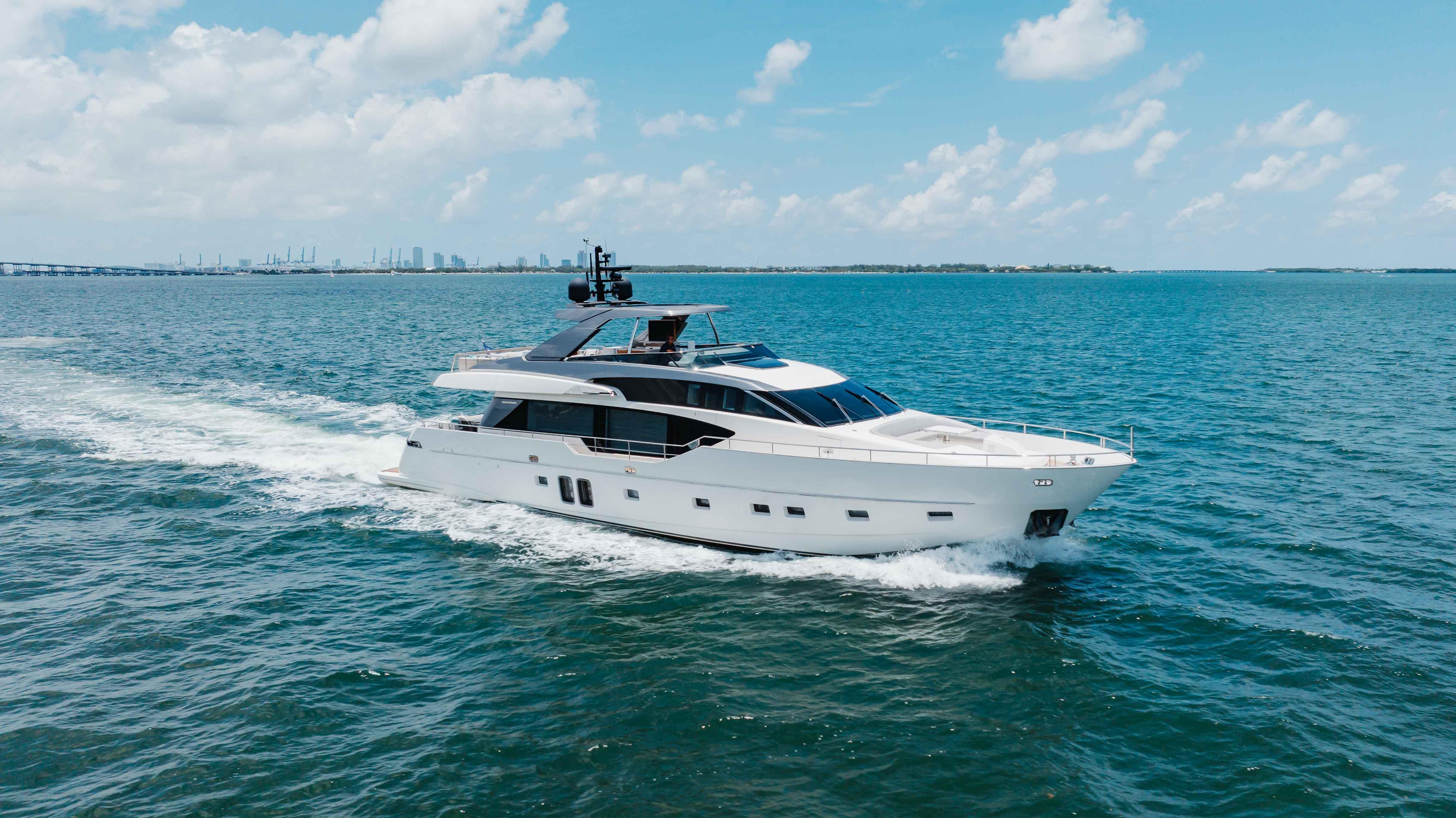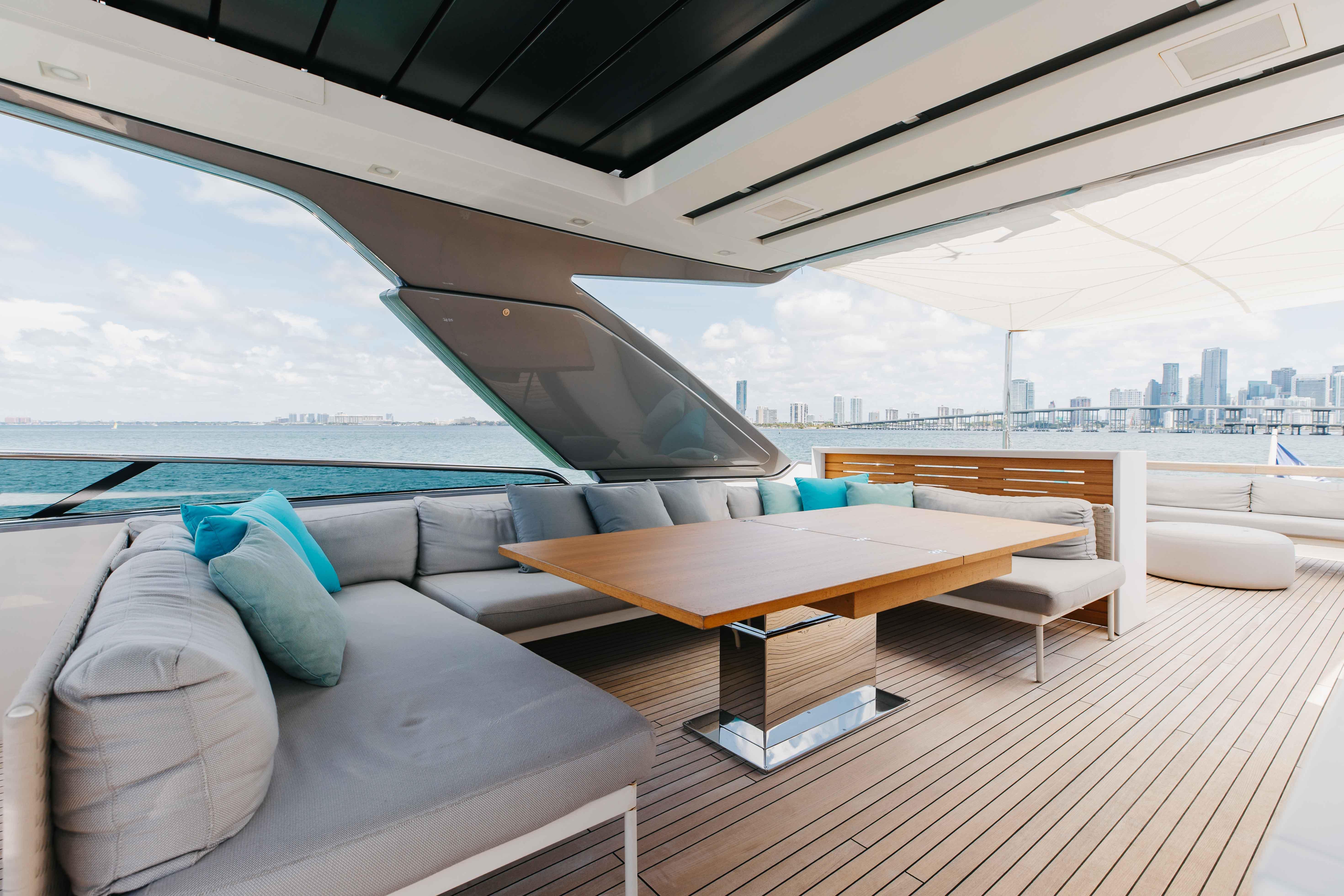 Available for sale for the first time by her original owner, “SASA”, is the newest delivered SL86 available, fullyloaded with Americas edition factory options, and a beautiful contemporary ‘beachhouse’ interior design. The SL86 hull design is among the builder’s most capable and popular models ever introduced. Sleek yetunderstated styling defines this timeless Officina Italiana Design, exuding quality from every angle. Based inMiami, FL she is conveniently located for showings.4 Cabins below sleep 8 guests, plus 4 crew forward ensure excellent flow and privacy for guests. Some of the yacht’s notable highlights include upgraded MAN engines for a top speed of 27 knots, electric fin stabilization, a large toy garage, hydraulic swim platform, on-deck day-head, louvered bridge sunshade, 900 gallon watermaker, additional fridge drawers and winecoolers throughout, a full wet bar with pop up TV and BBQ on the bridge. Her striking design elements include Dedon / Cassina / and Roda free-standing furniture, Teak decks, and Carrara white Italian marble.