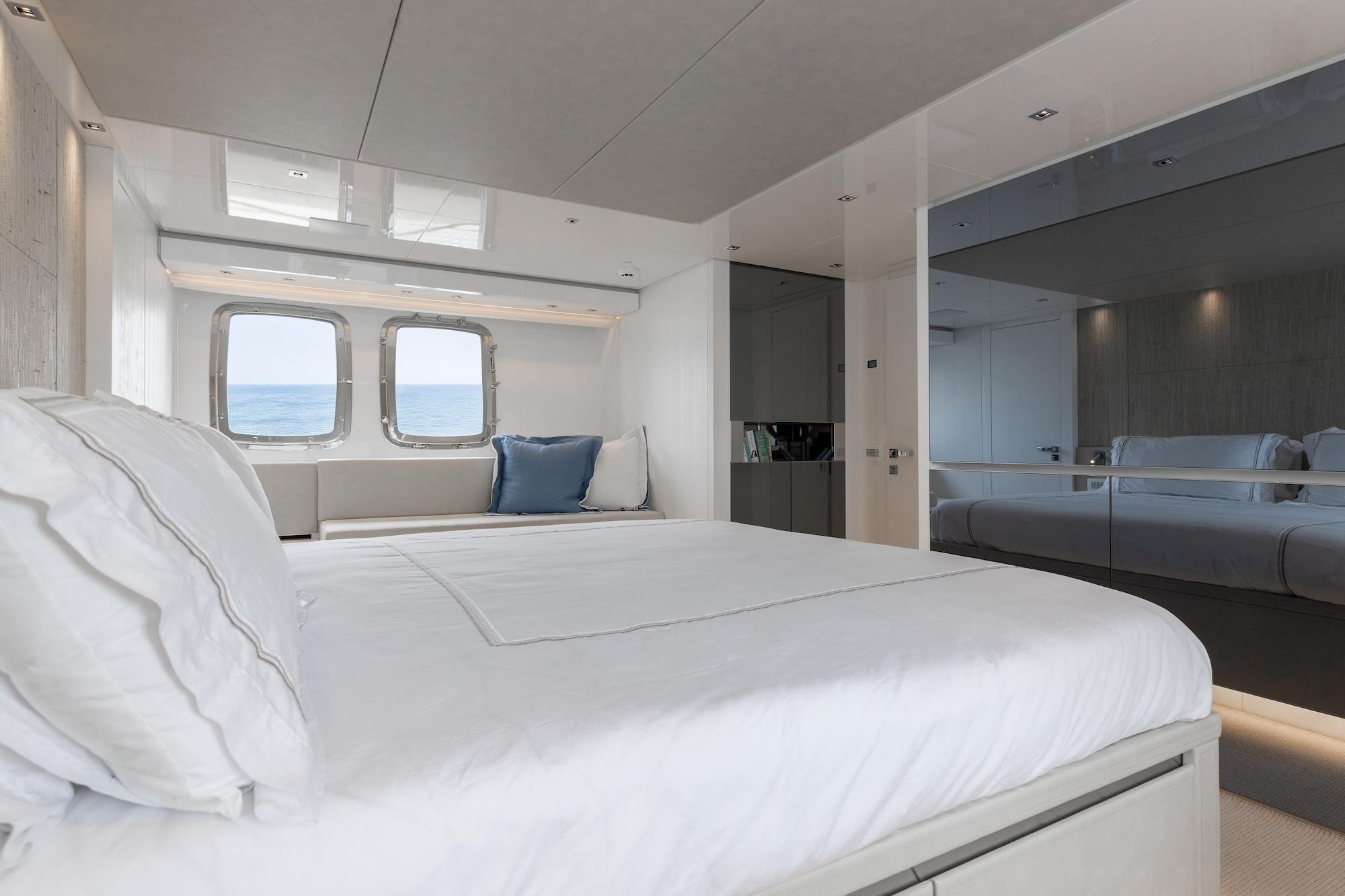 - Bookshelves in owner's cabin, mirror on the back, led and stainless steel antiroll