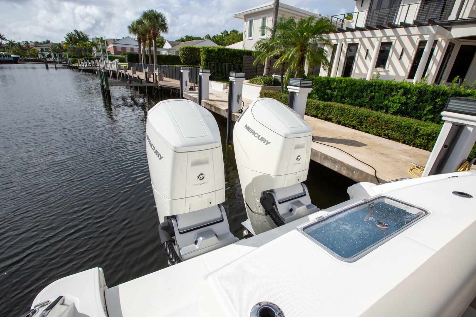 Step aboard the 2023 Boston Whaler 380 Outrage and experience the pinnacle of offshore capability blended with refined luxury. Designed for anglers and adventurers alike, this state-of-the-art center console boasts rare twin Mercury 600 HP Verado® outboards with joystick piloting, giving you superior control and blistering performance. From the expansive helm with cutting-edge electronics to the integrated hardtop with glass enclosure, every detail is crafted to deliver comfort, protection, and an exhilarating ride even in rough seas. Seakeeper Stabilizer equipped and a Fischer Panda generator.The 380 Outrage isn't just a fishing machine—it's also a premium entertainer. The spacious cockpit features convertible seating, an integrated summer kitchen, and a forward lounge with wraparound seating and a stowable table—perfect for relaxing at anchor. Below deck, a comfortable cabin with air conditioning, a cozy berth, and a private head ensures overnight versatility. Whether you're chasing marlin offshore or cruising the coast with friends and family, the 2023 Boston Whaler 380 Outrage delivers performance, luxury, and durability in one commanding package.Mercury Engine Warranties expire 12/28/25