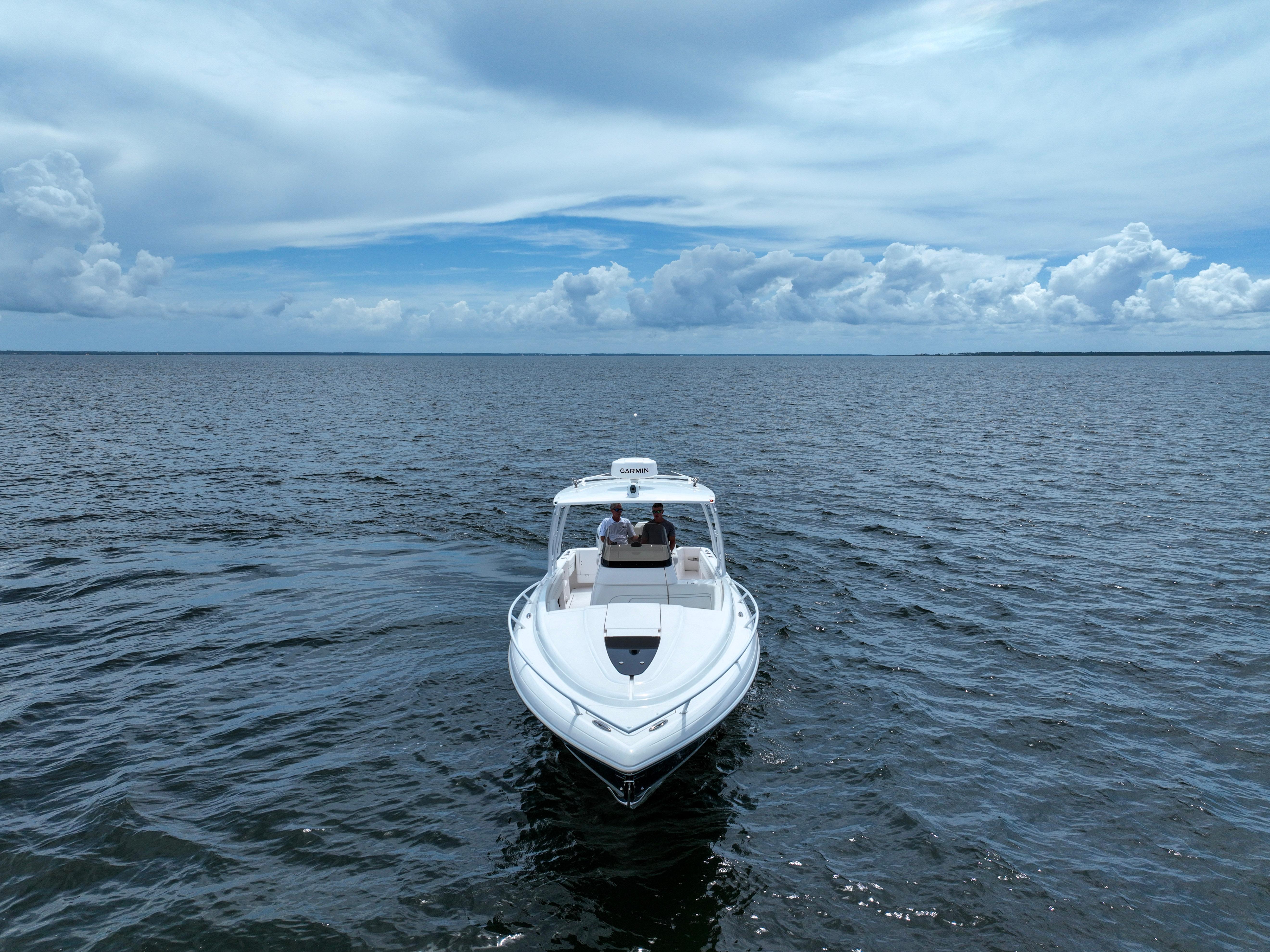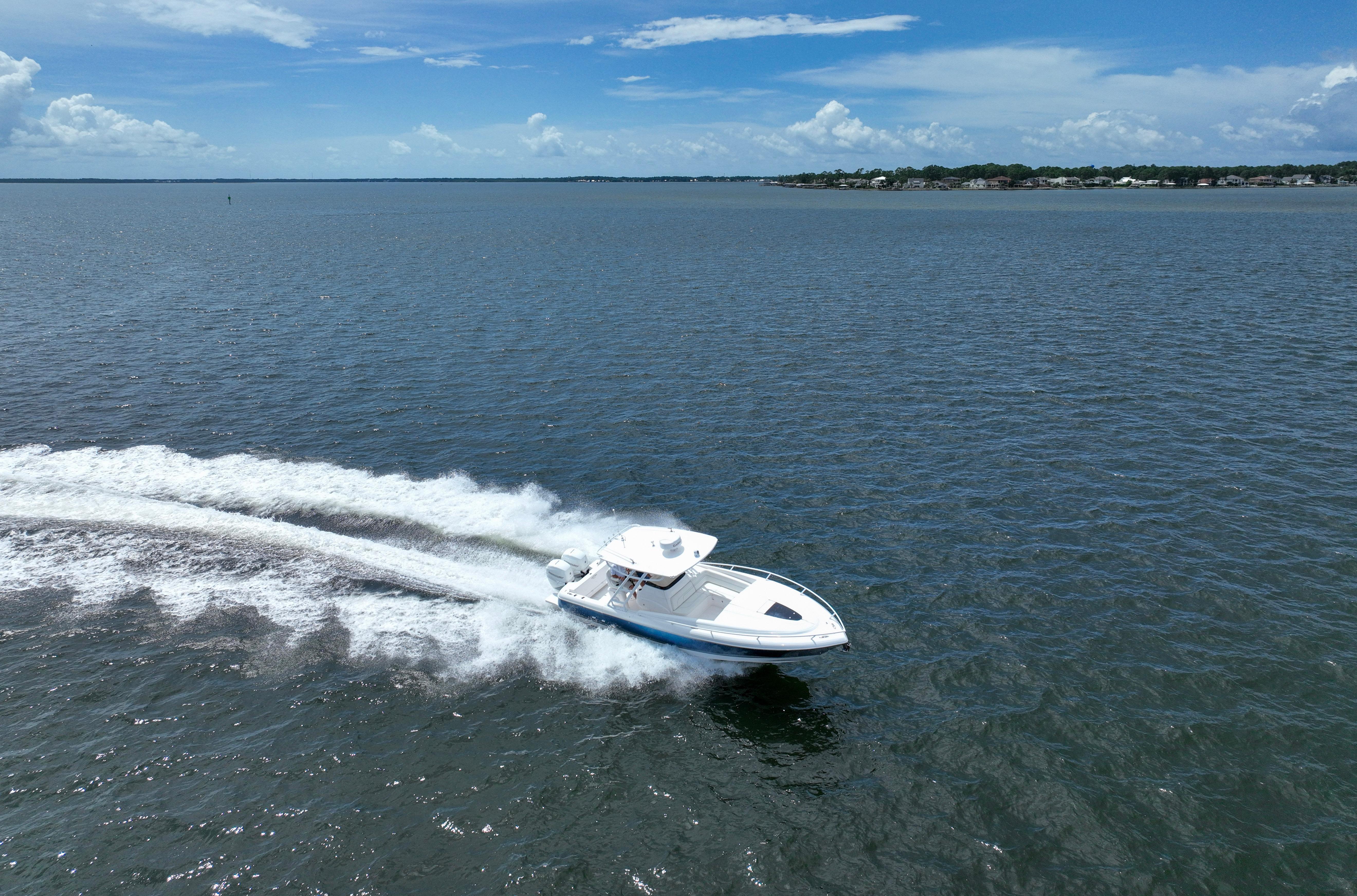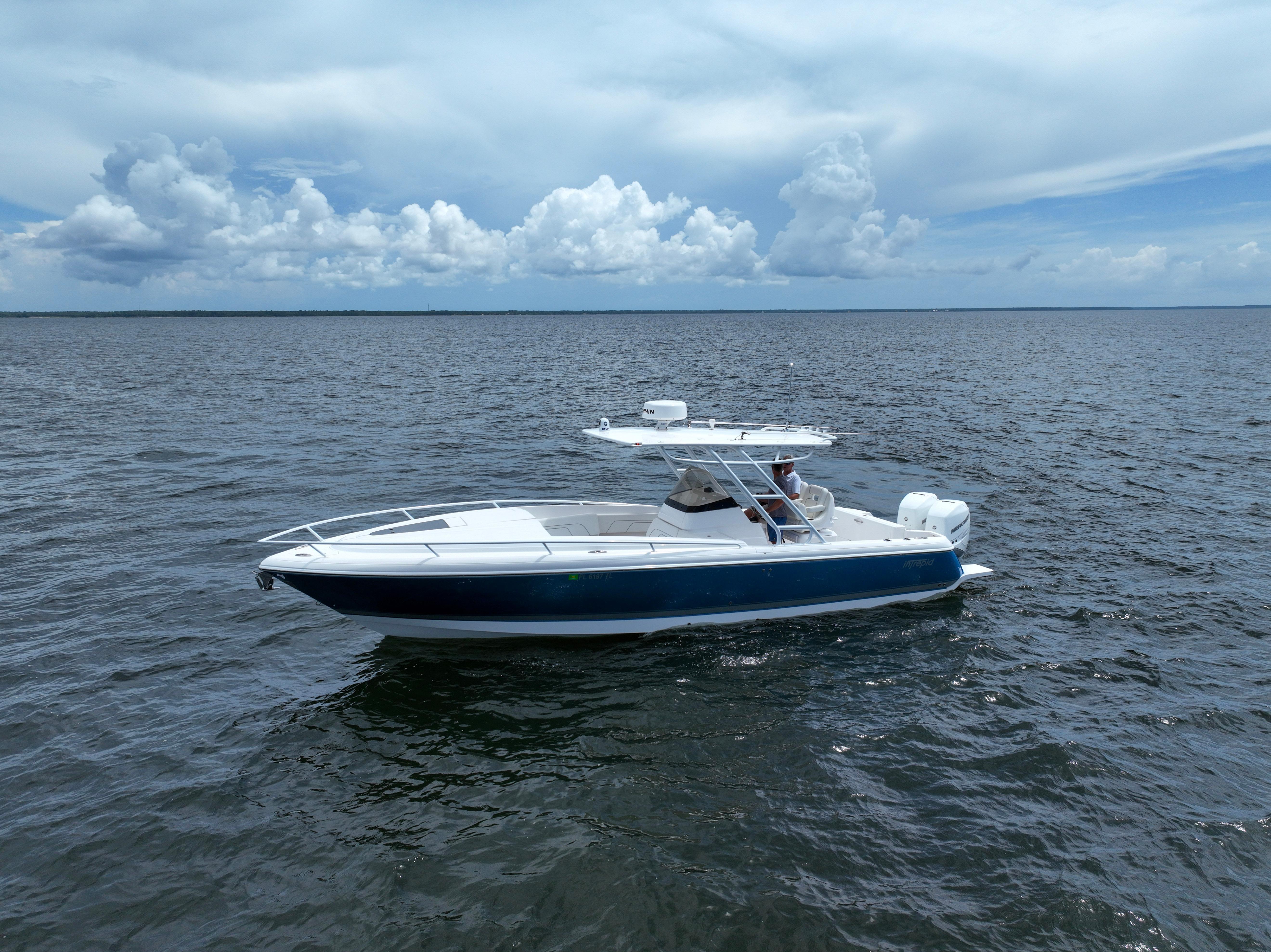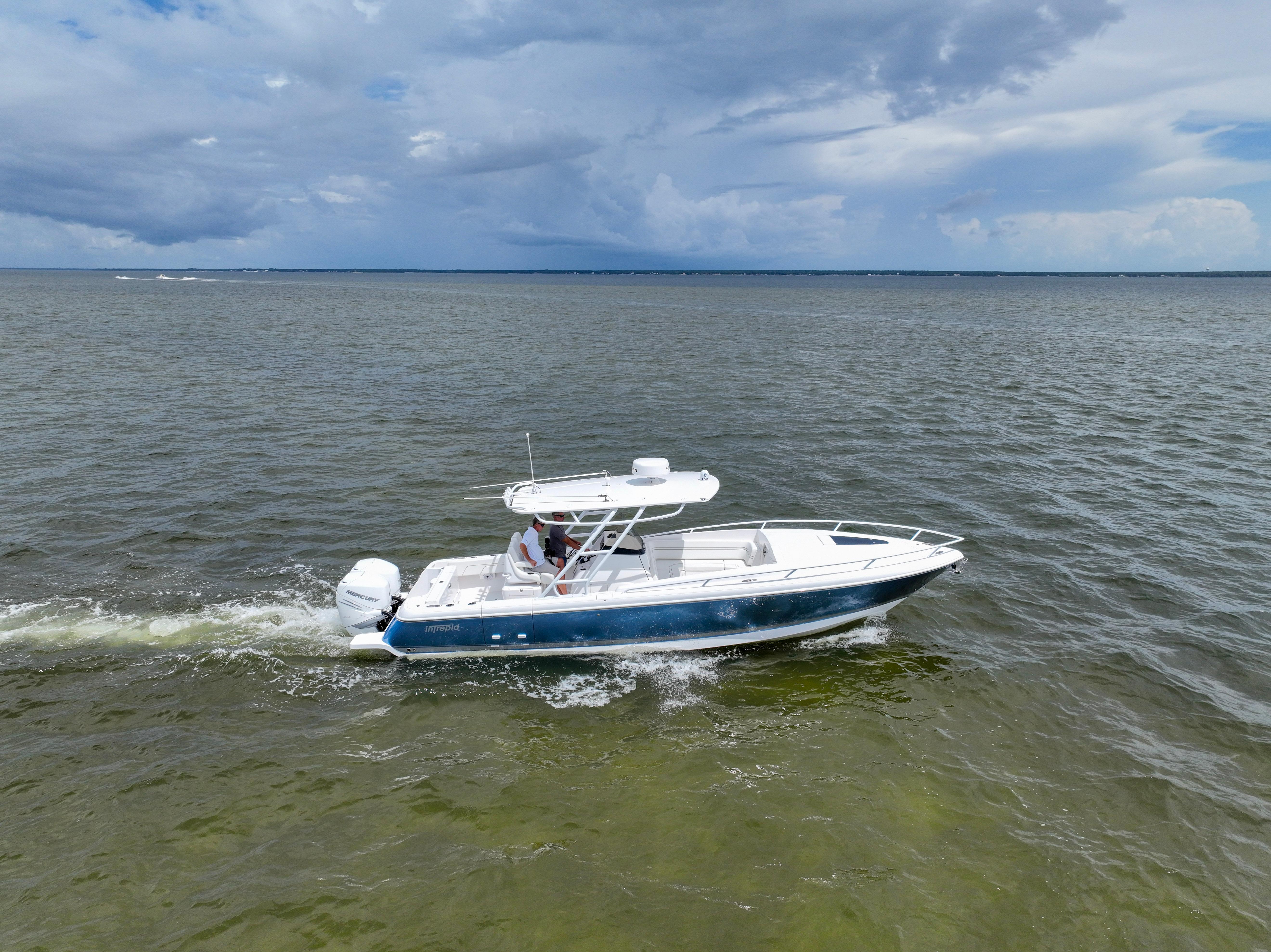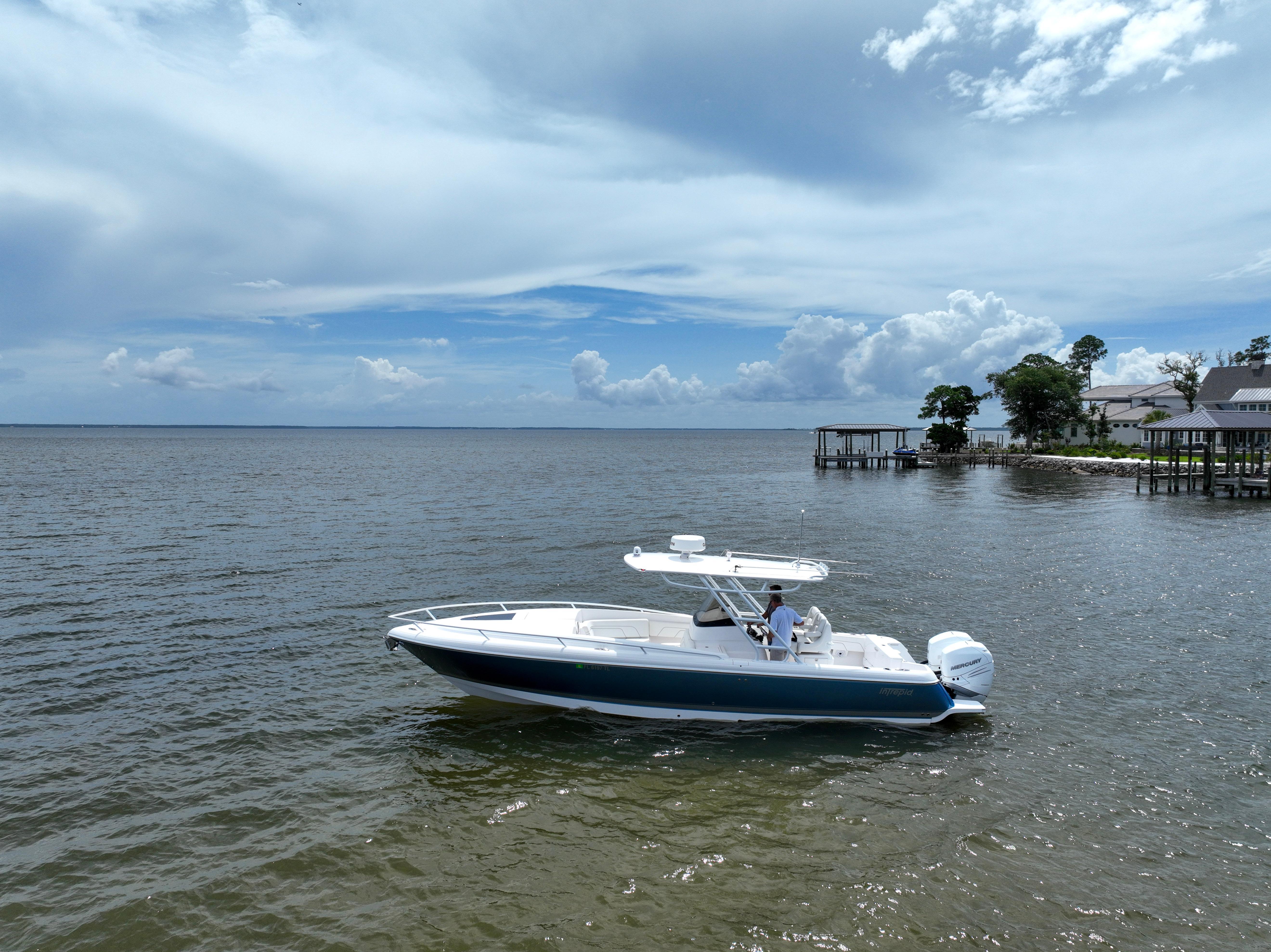 2023 32' Intrepid 327-I Valor for sale- The 327 Intrepid represents a well-versed, excellent running, bespoke of functionality, and a truly enjoyable time on the water. The absolute perfect luxury yacht shuttle vessel or family runabout, the 327 offers a delectable platter to fulfill everyone's needs. Whether you want to partake in offshore fishing, diving, island hopping, or setting up at the sandbar for the day, this Intrepid covers every base without overcomplicating. Twin 350 Mercury Cold Fusion Mercury Verados offer plenty of speed and fuel efficiency, with tremendous handling on its proven high-performance stepped hull. The forward air-circulated cuddy cabin provides enough escape from the elements should you need a break from the wind and sun. A clever side boarding door drops down for easy boarding while swimming or snorkeling with a fiberglass molded step built right in. Most impressive is the ample, well-designed seating, from the fold-down transom seat, comfortable helm, to L-shaped forward lounge seating in the bow. There is even a very convenient electric slide actuator to access the head below the helm. With extremely light use, lift kept and loaded up with options, this one is not to be missed.