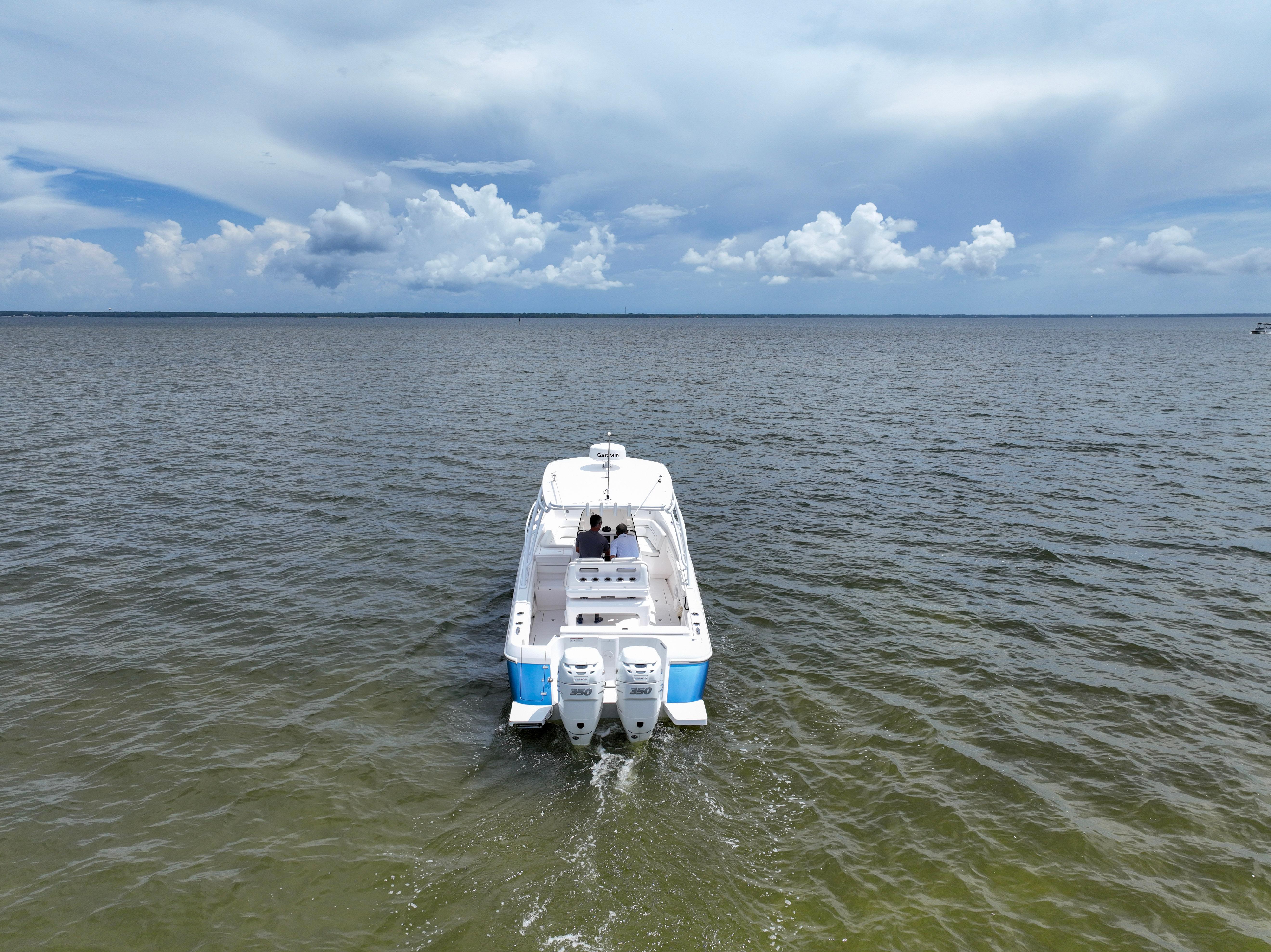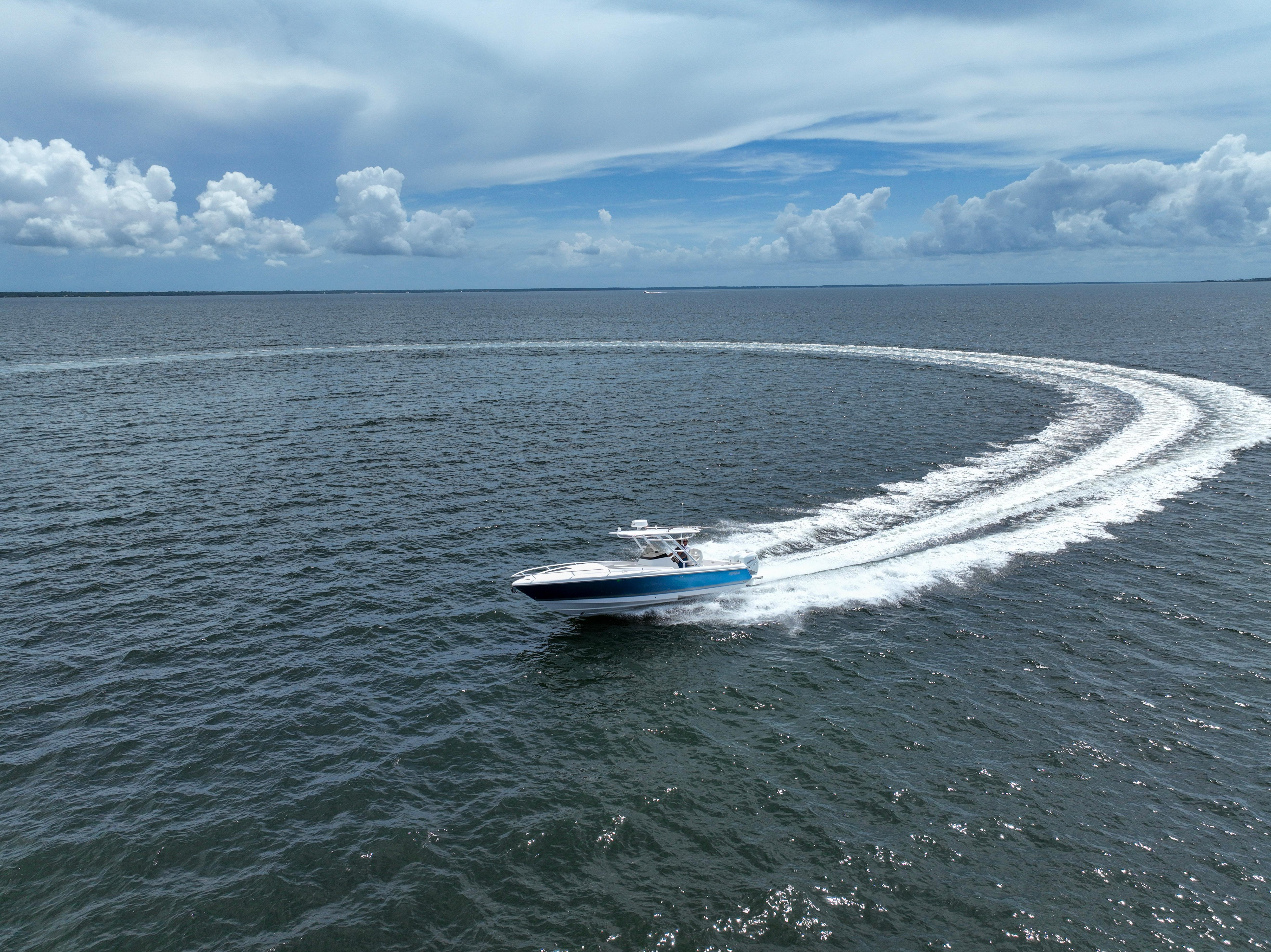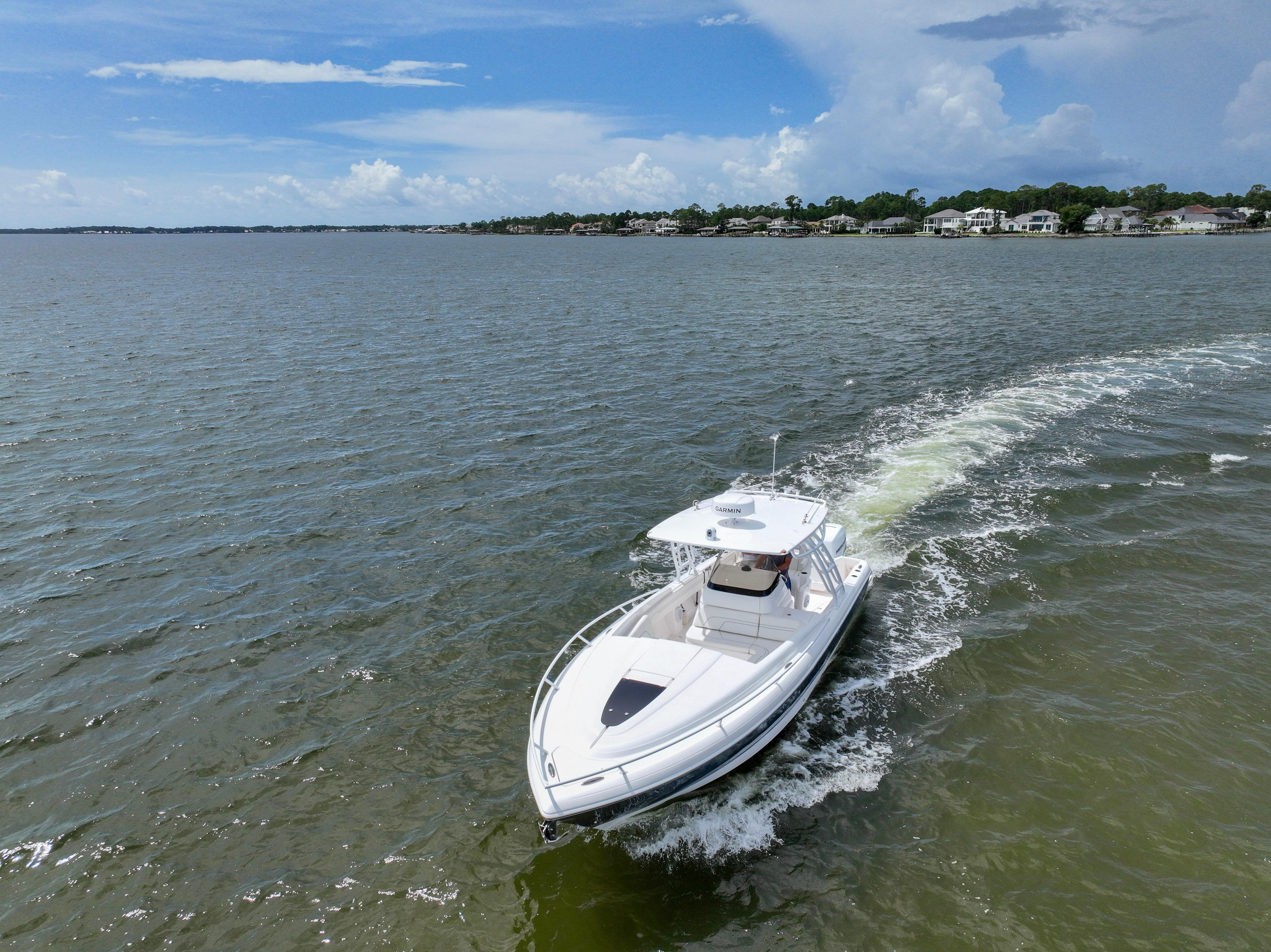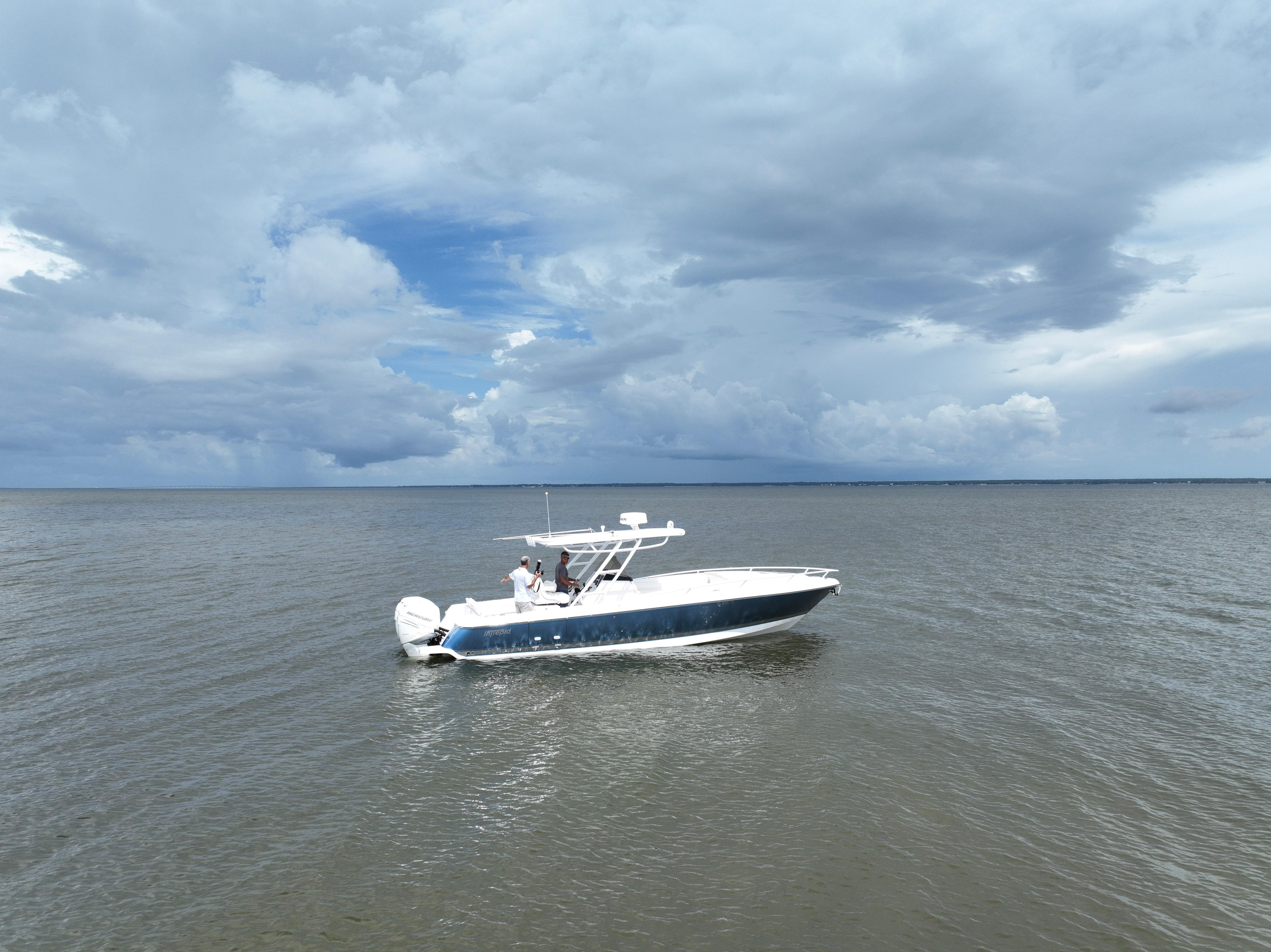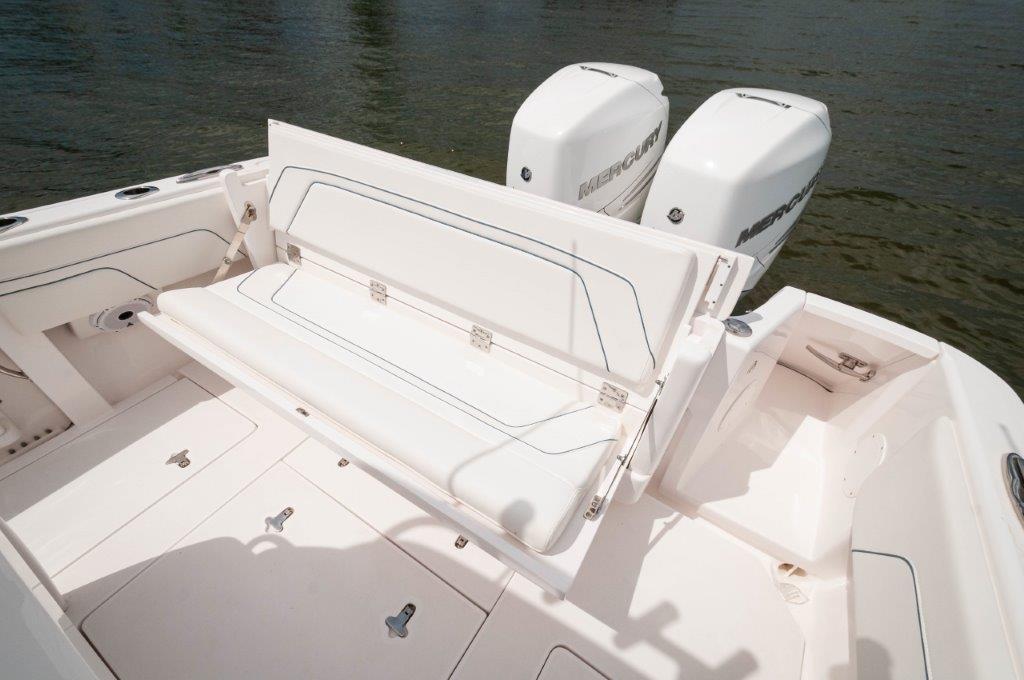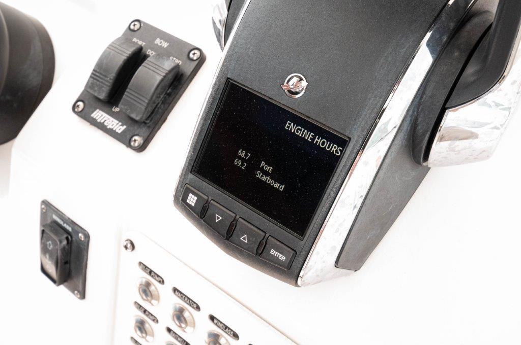 2023 32' Intrepid 327-I Valor for sale- The 327 Intrepid represents a well-versed, excellent running, bespoke of functionality, and a truly enjoyable time on the water. The absolute perfect luxury yacht shuttle vessel or family runabout, the 327 offers a delectable platter to fulfill everyone's needs. Whether you want to partake in offshore fishing, diving, island hopping, or setting up at the sandbar for the day, this Intrepid covers every base without overcomplicating. Twin 350 Mercury Cold Fusion Mercury Verados offer plenty of speed and fuel efficiency, with tremendous handling on its proven high-performance stepped hull. The forward air-circulated cuddy cabin provides enough escape from the elements should you need a break from the wind and sun. A clever side boarding door drops down for easy boarding while swimming or snorkeling with a fiberglass molded step built right in. Most impressive is the ample, well-designed seating, from the fold-down transom seat, comfortable helm, to L-shaped forward lounge seating in the bow. There is even a very convenient electric slide actuator to access the head below the helm. With extremely light use, lift kept and loaded up with options, this one is not to be missed.