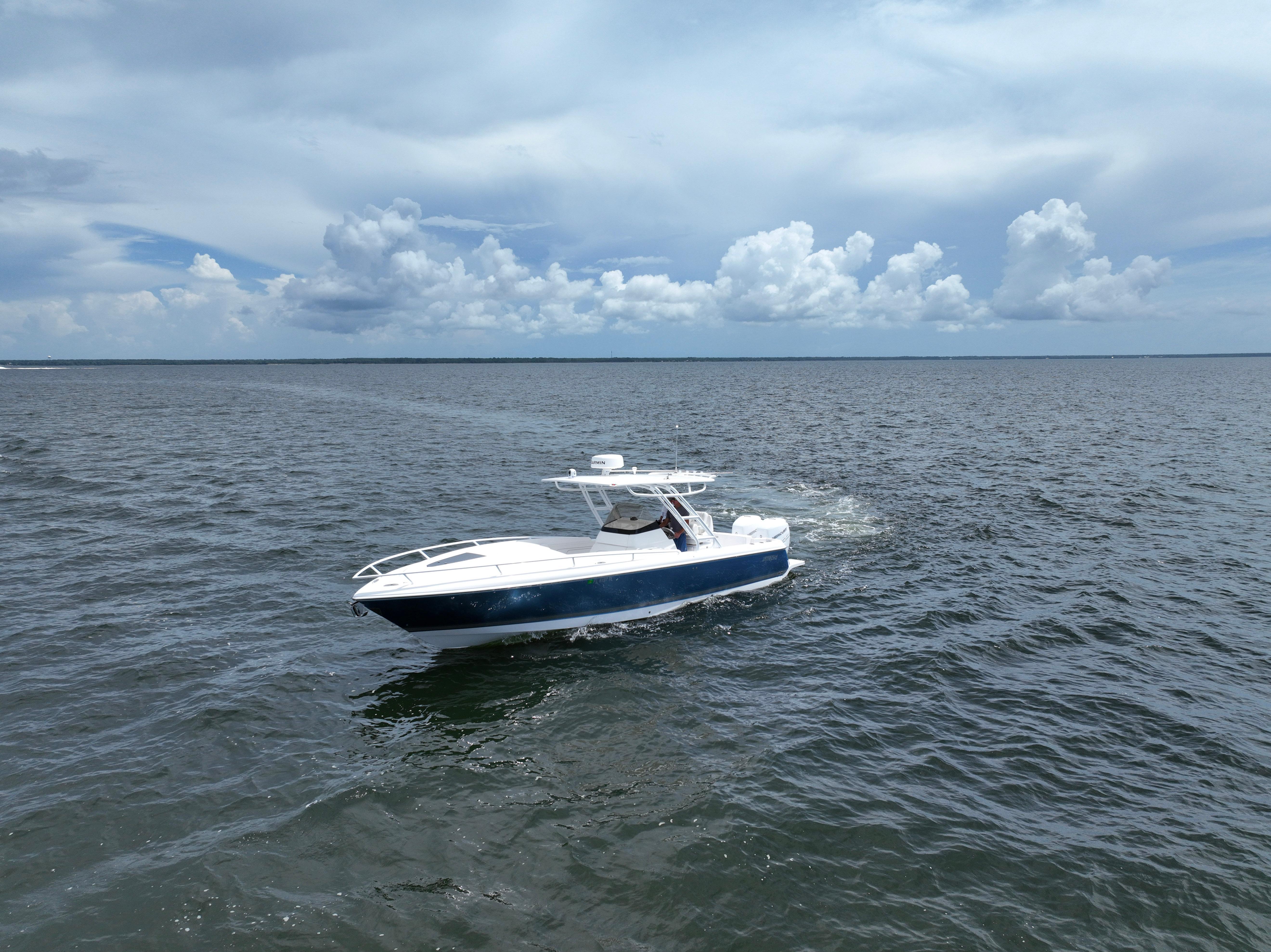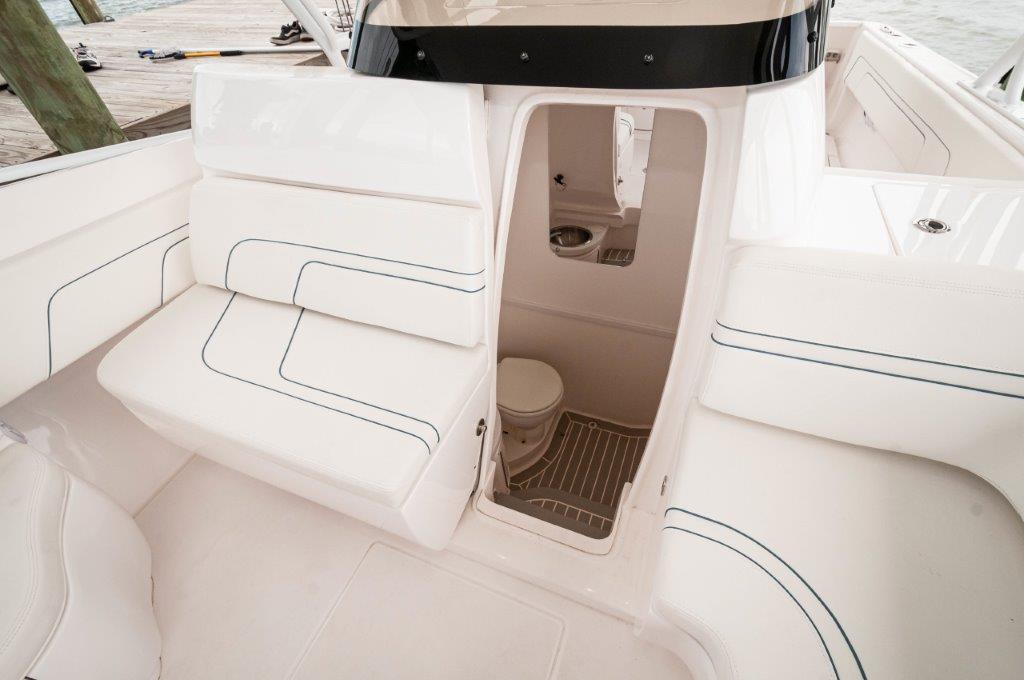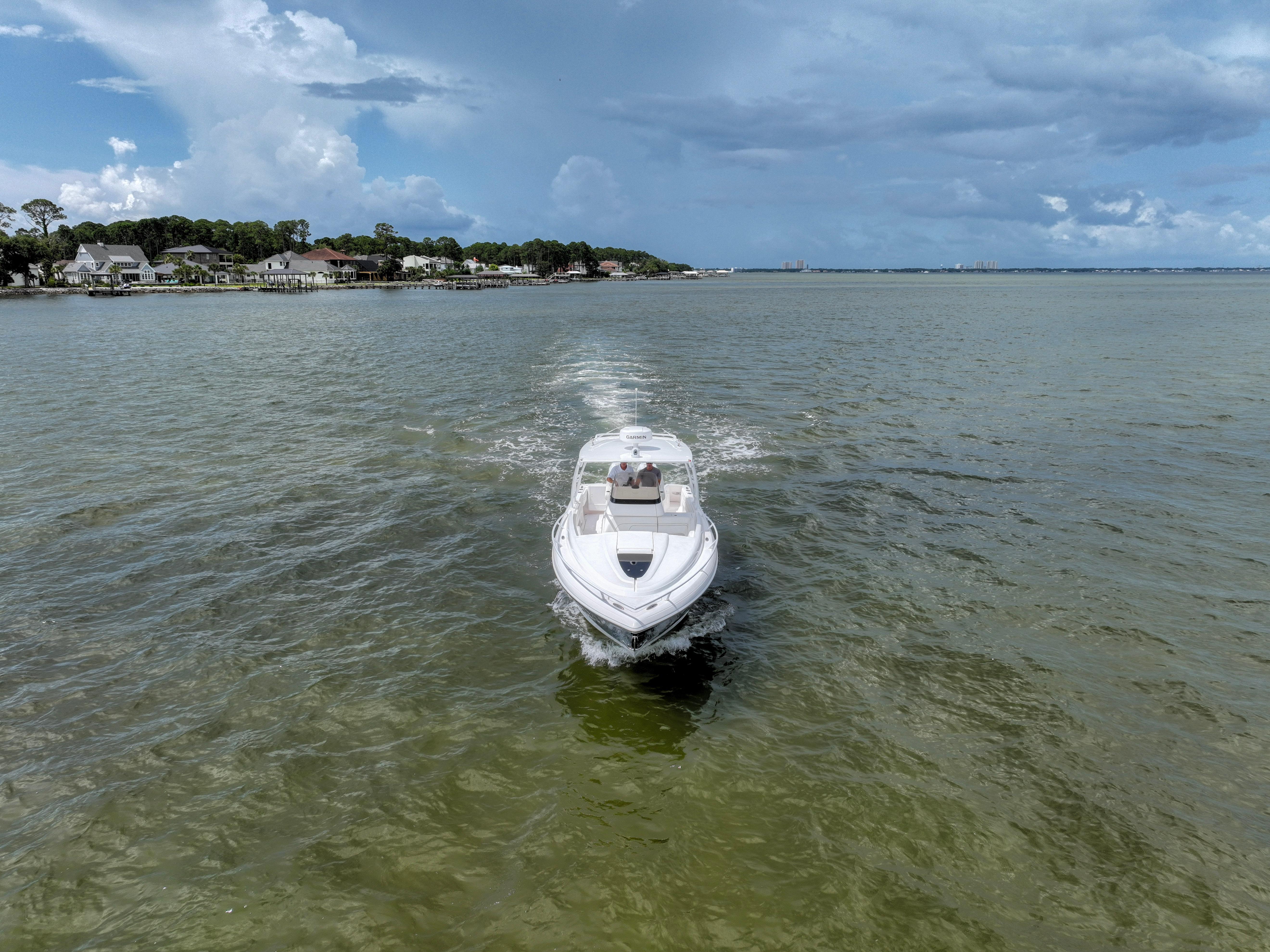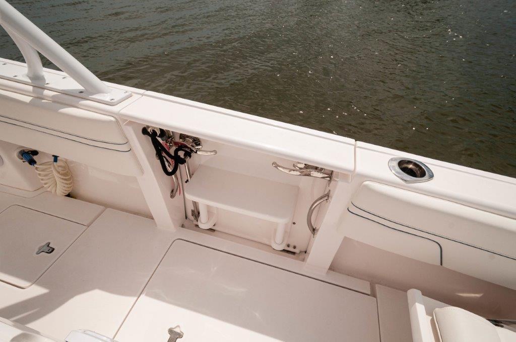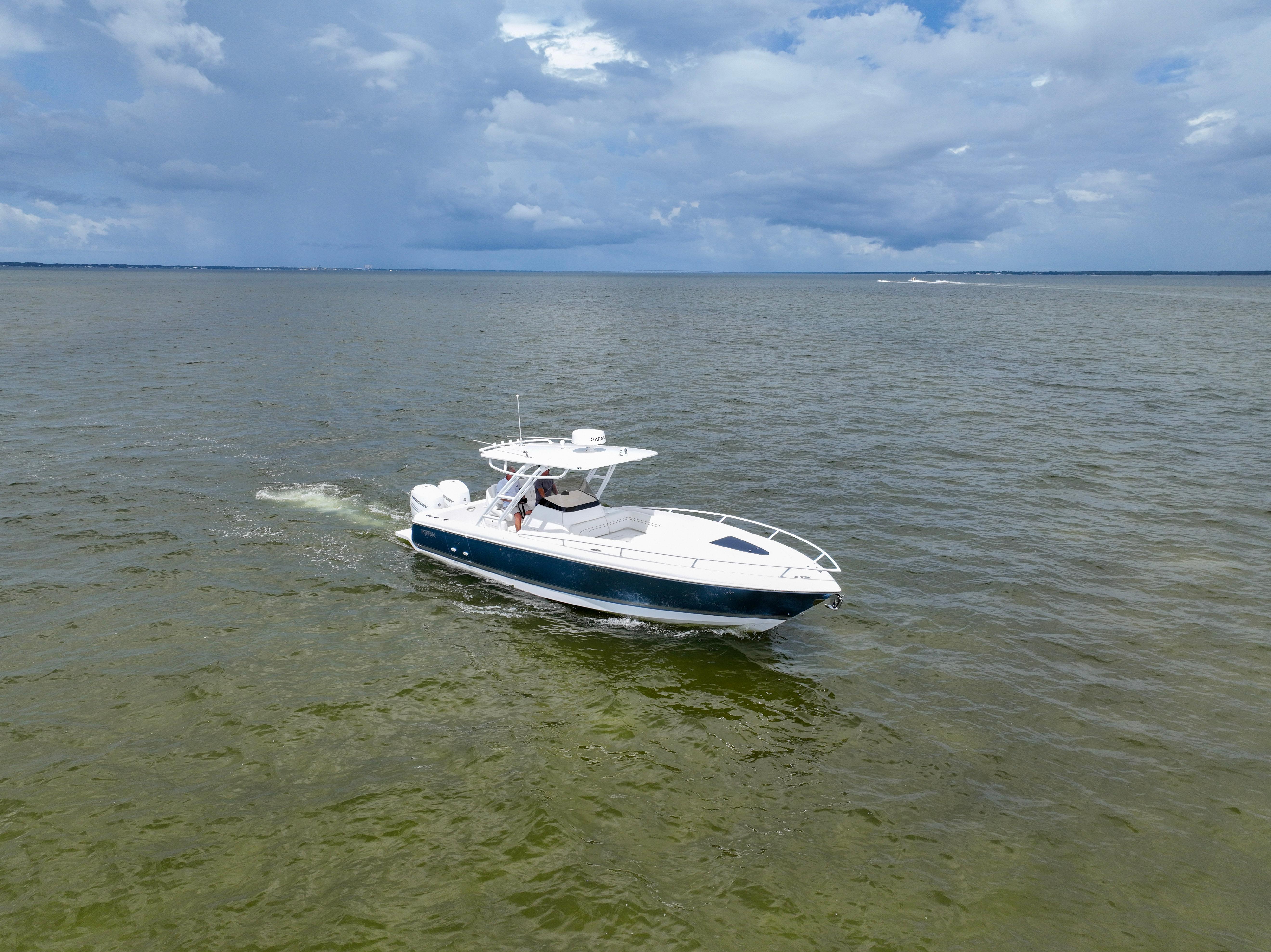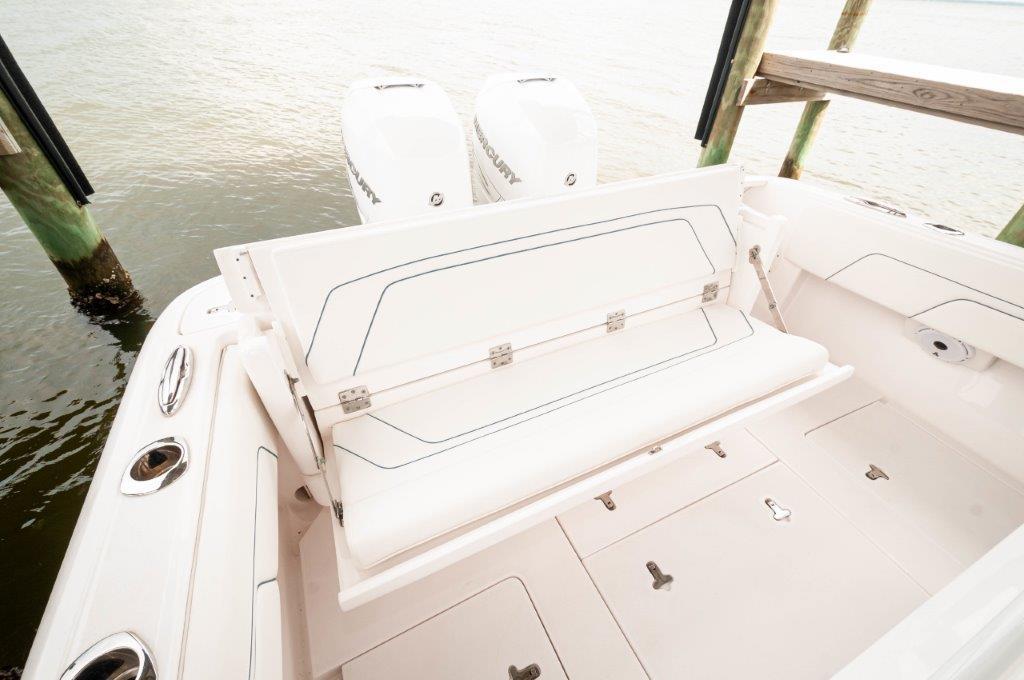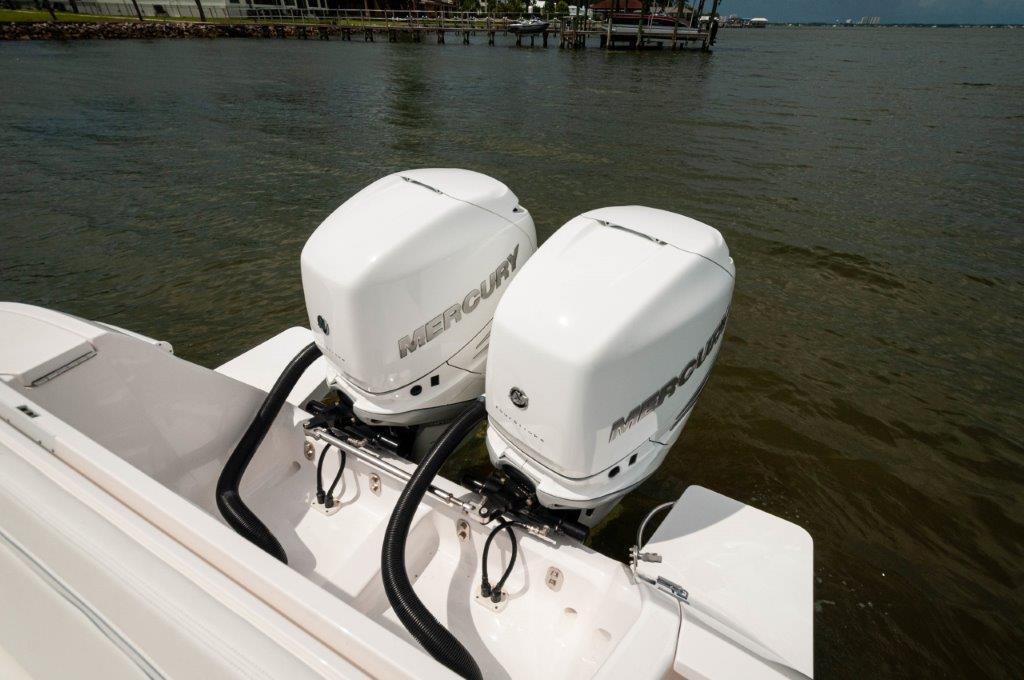 2023 32' Intrepid 327-I Valor for sale- The 327 Intrepid represents a well-versed, excellent running, bespoke of functionality, and a truly enjoyable time on the water. The absolute perfect luxury yacht shuttle vessel or family runabout, the 327 offers a delectable platter to fulfill everyone's needs. Whether you want to partake in offshore fishing, diving, island hopping, or setting up at the sandbar for the day, this Intrepid covers every base without overcomplicating. Twin 350 Mercury Cold Fusion Mercury Verados offer plenty of speed and fuel efficiency, with tremendous handling on its proven high-performance stepped hull. The forward air-circulated cuddy cabin provides enough escape from the elements should you need a break from the wind and sun. A clever side boarding door drops down for easy boarding while swimming or snorkeling with a fiberglass molded step built right in. Most impressive is the ample, well-designed seating, from the fold-down transom seat, comfortable helm, to L-shaped forward lounge seating in the bow. There is even a very convenient electric slide actuator to access the head below the helm. With extremely light use, lift kept and loaded up with options, this one is not to be missed.