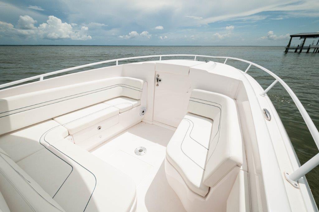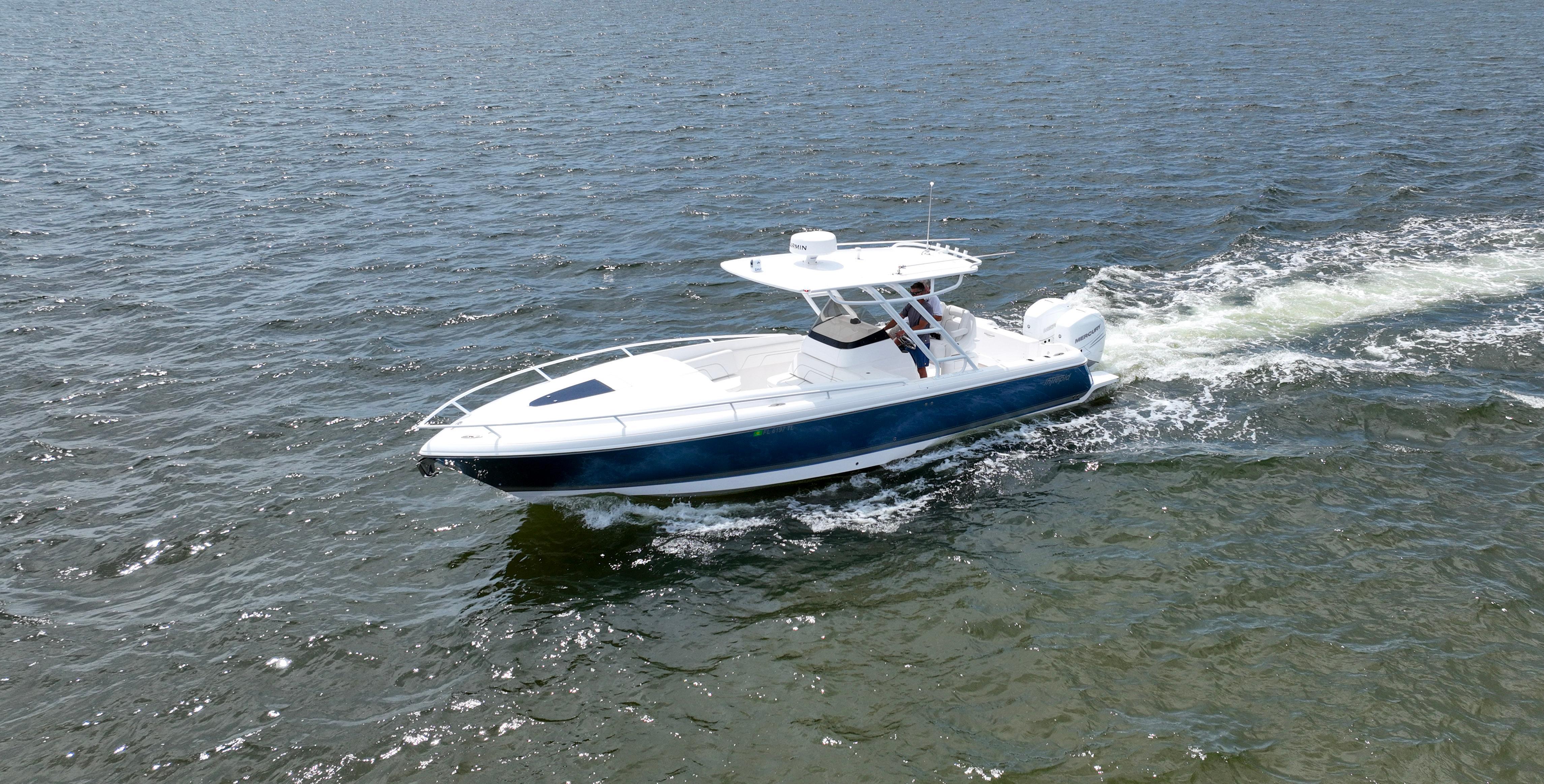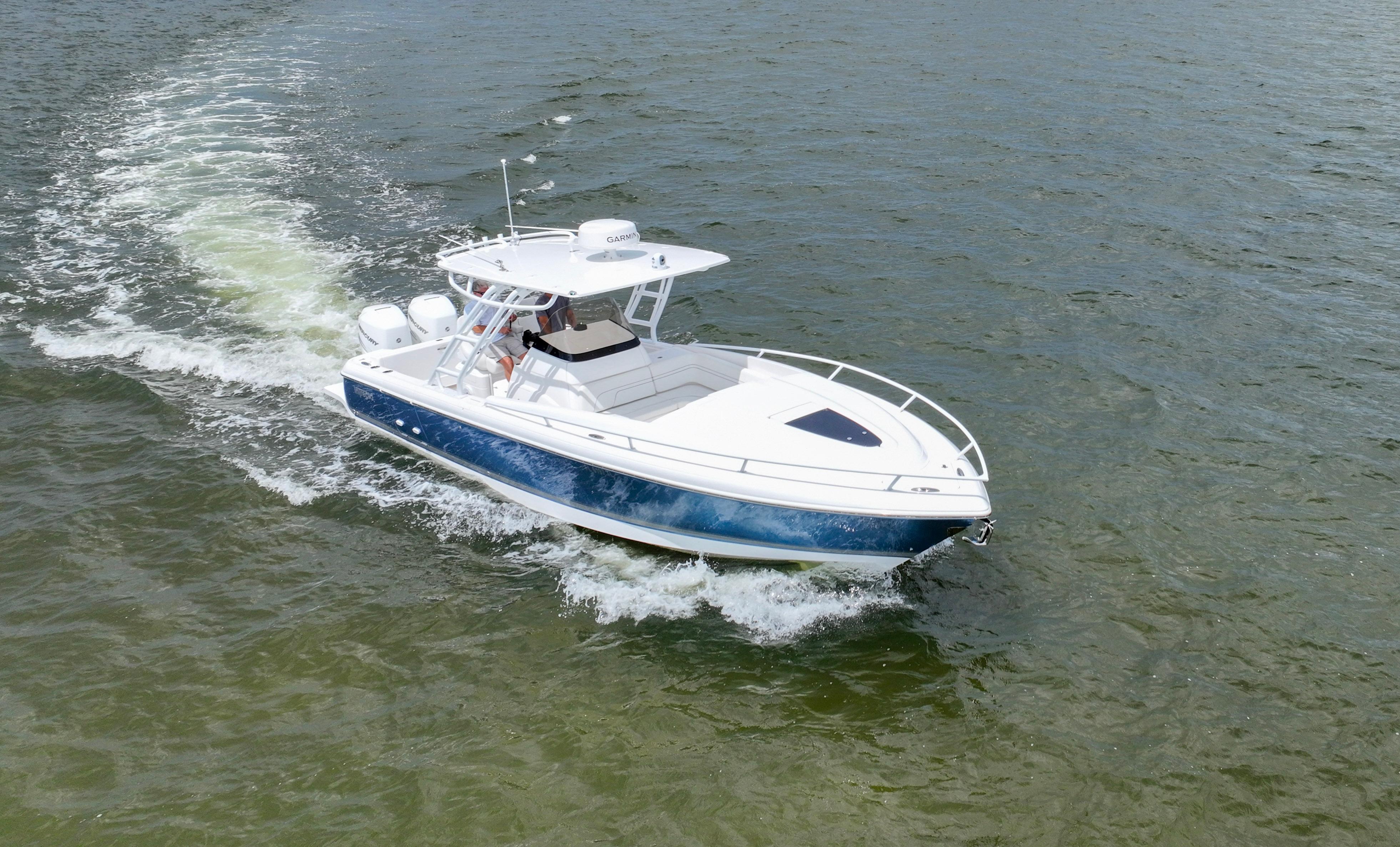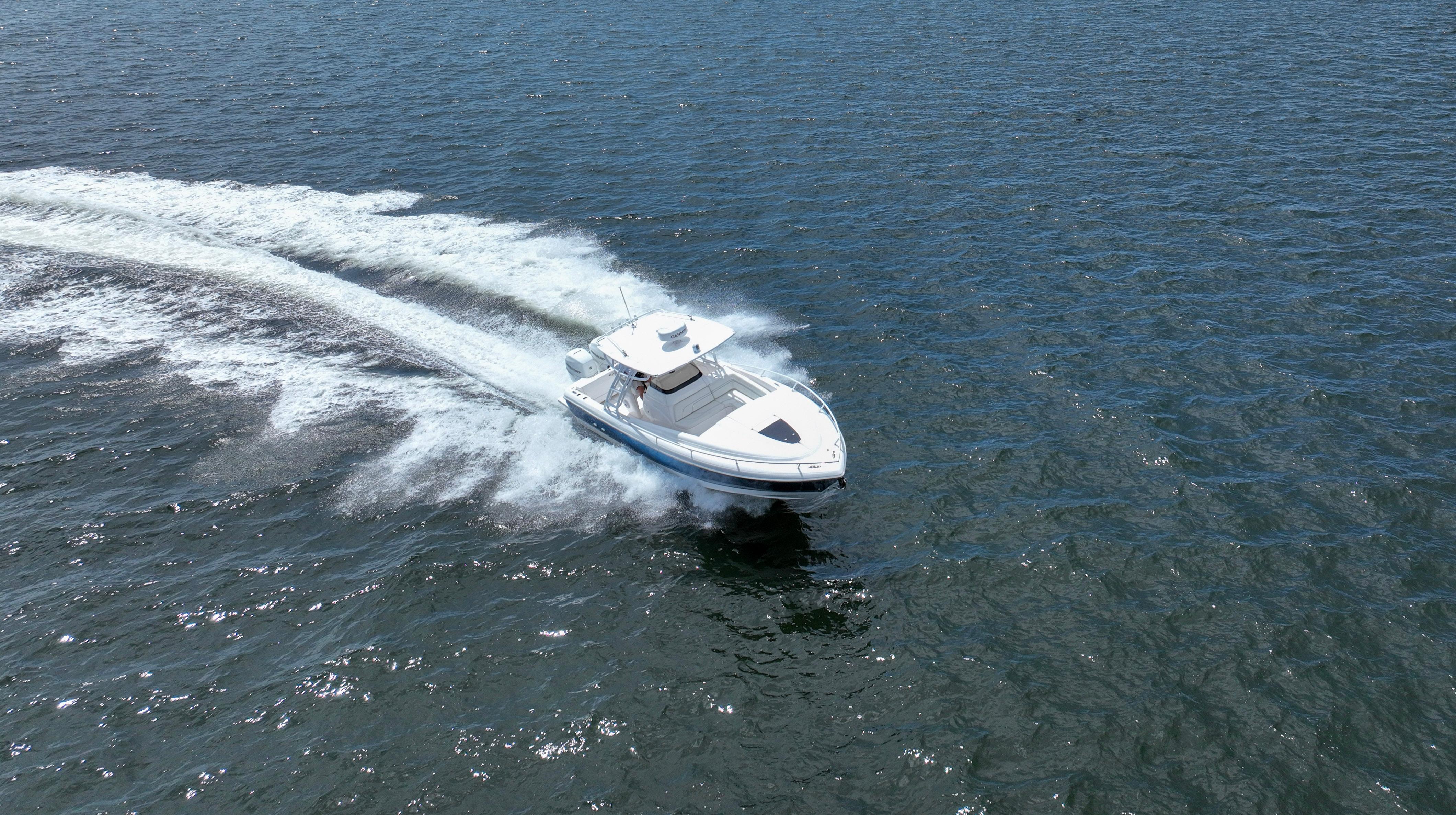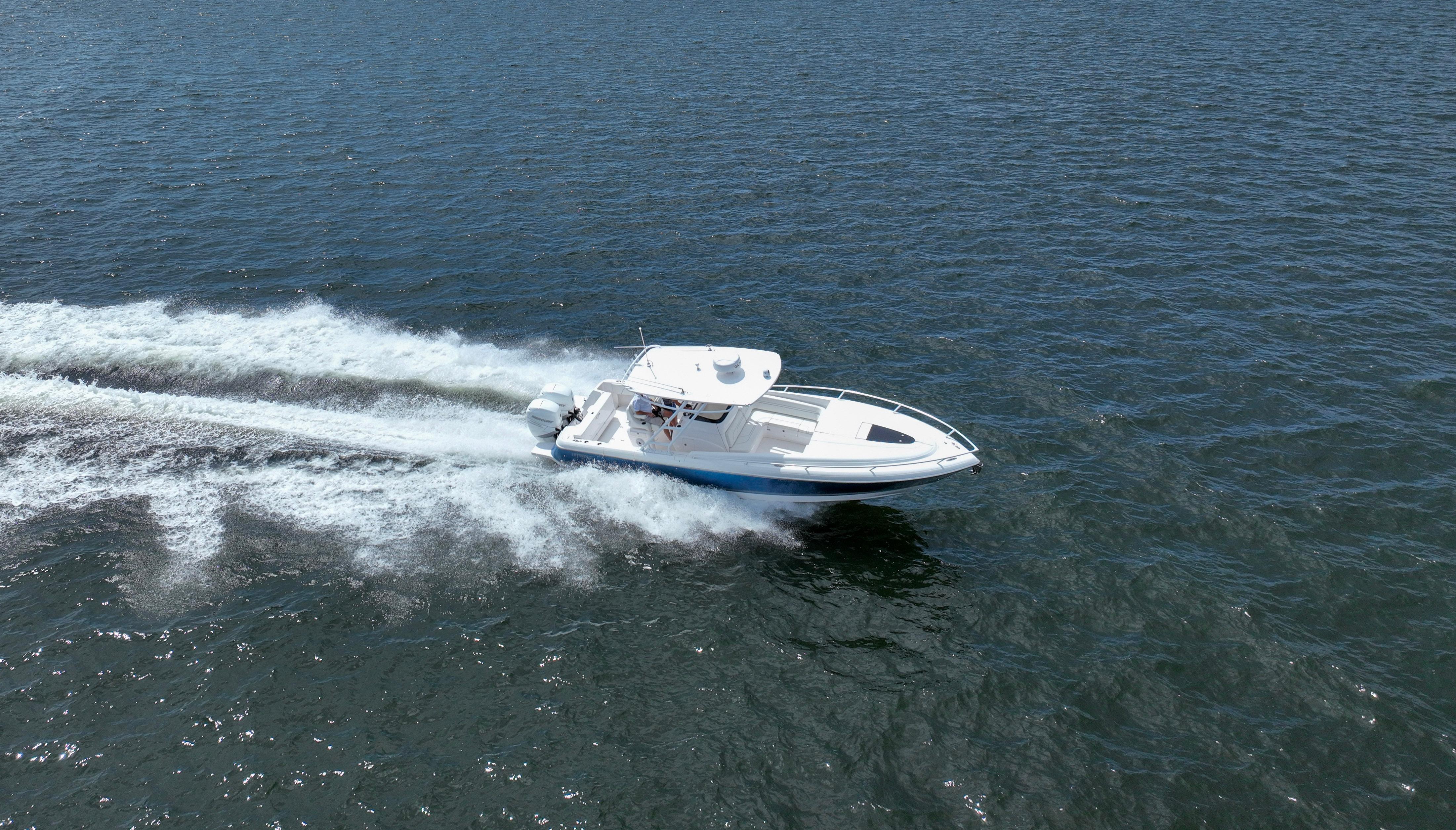 2023 32' Intrepid 327-I Valor for sale- The 327 Intrepid represents a well-versed, excellent running, bespoke of functionality, and a truly enjoyable time on the water. The absolute perfect luxury yacht shuttle vessel or family runabout, the 327 offers a delectable platter to fulfill everyone's needs. Whether you want to partake in offshore fishing, diving, island hopping, or setting up at the sandbar for the day, this Intrepid covers every base without overcomplicating. Twin 350 Mercury Cold Fusion Mercury Verados offer plenty of speed and fuel efficiency, with tremendous handling on its proven high-performance stepped hull. The forward air-circulated cuddy cabin provides enough escape from the elements should you need a break from the wind and sun. A clever side boarding door drops down for easy boarding while swimming or snorkeling with a fiberglass molded step built right in. Most impressive is the ample, well-designed seating, from the fold-down transom seat, comfortable helm, to L-shaped forward lounge seating in the bow. There is even a very convenient electric slide actuator to access the head below the helm. With extremely light use, lift kept and loaded up with options, this one is not to be missed.