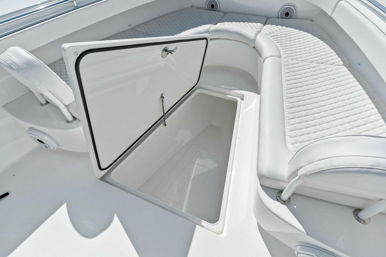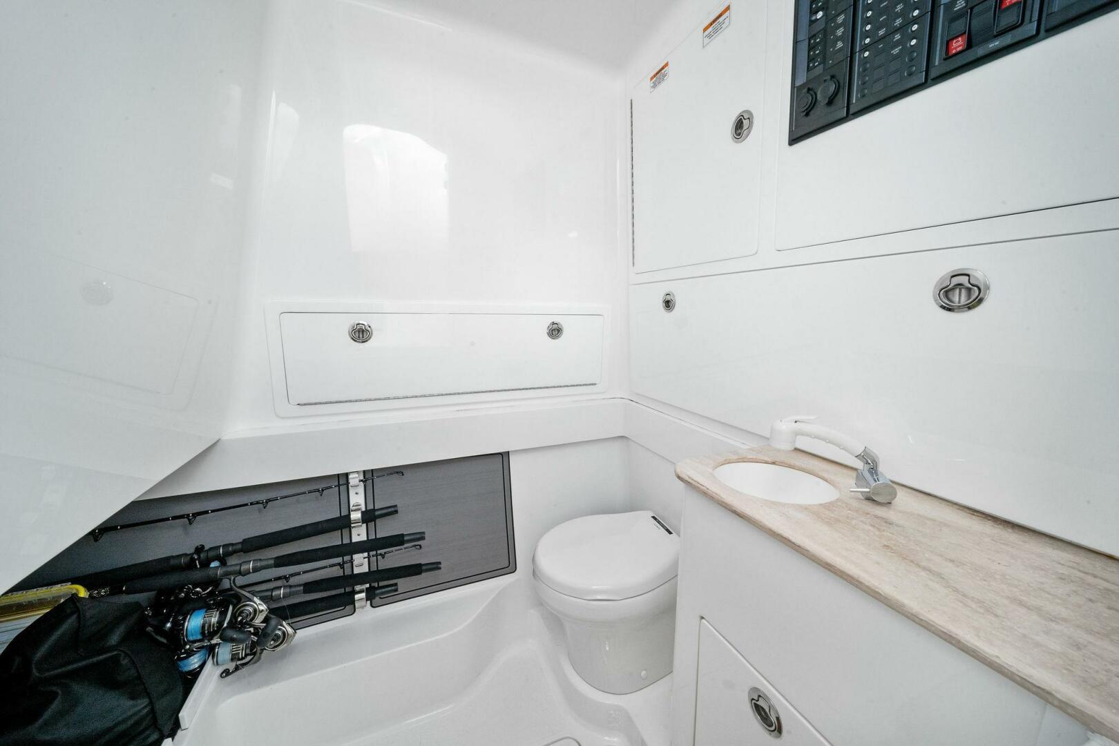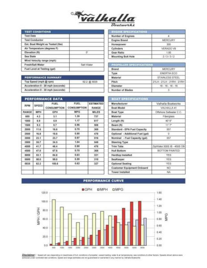 2023 41 Valhalla Center Console is in pristine condition and ready for her next owner! She was ordered custom by an experienced Viking owner with a great mix of fishing options as well as popular comfort and convenience features. She features a Seakeeper with warranty as well as a custom, oversized Palm Beach Towers T-Top. Her quad V8 300 Mercury Verado delivers impressive top-end speeds of 55 knots with the highest fuel economy and range available in any power package. These engines are non-supercharged, have V8 torque, and are very reliable with Mercury extended warranty until Feb of 2028. Her patented stepped / tunnel hull was designed by Michael Peters in collaboration with Valhalla Boatworks designers. The Valhalla 41 is where form and function blend seamlessly into the most advanced center consoles ever made. If you're ready to experience the legendary ride and speed of a Valhalla V-41, call us today!