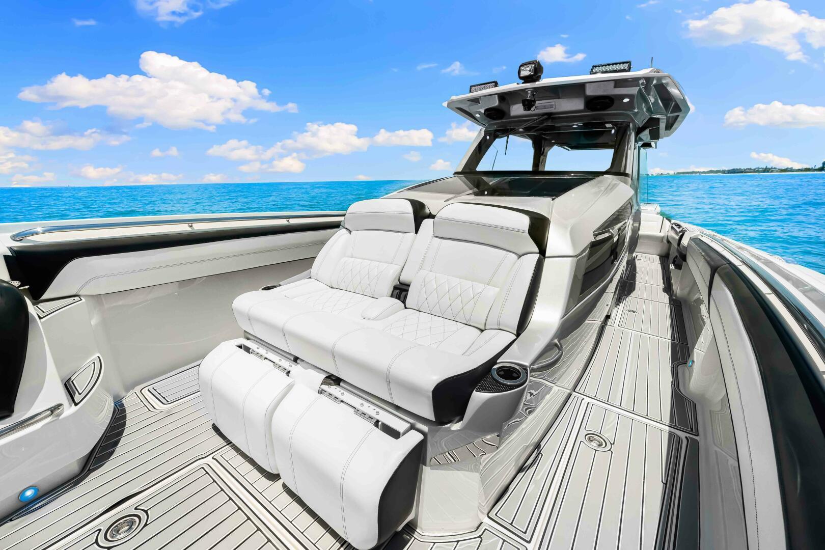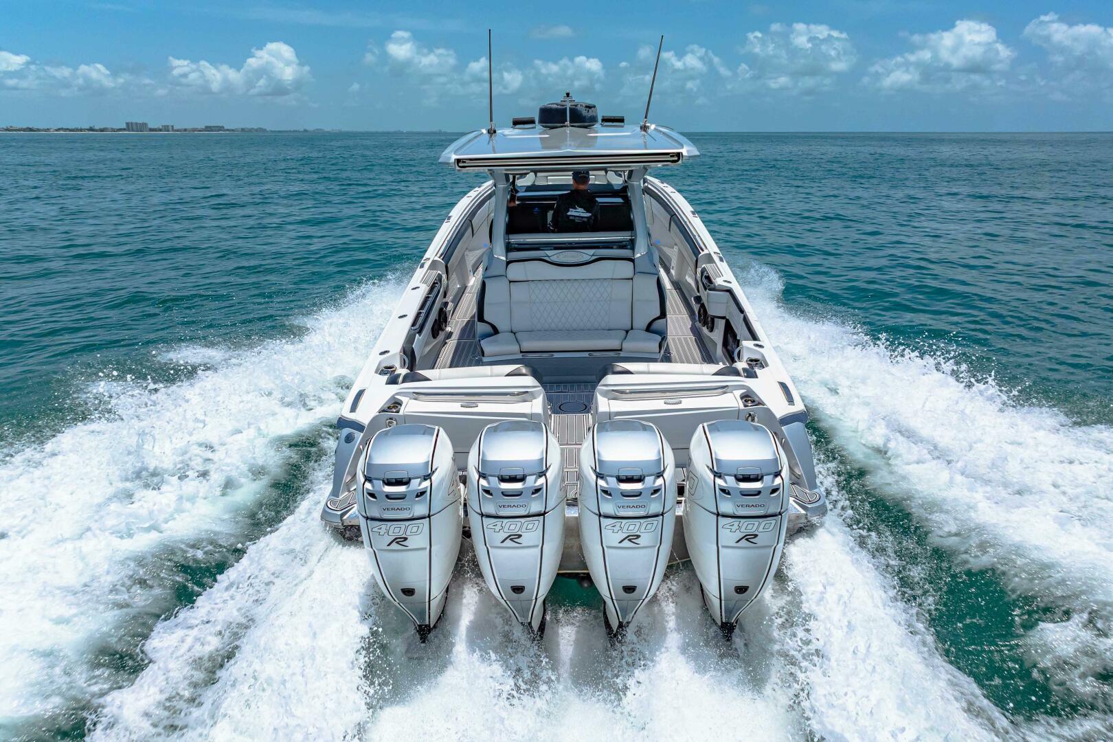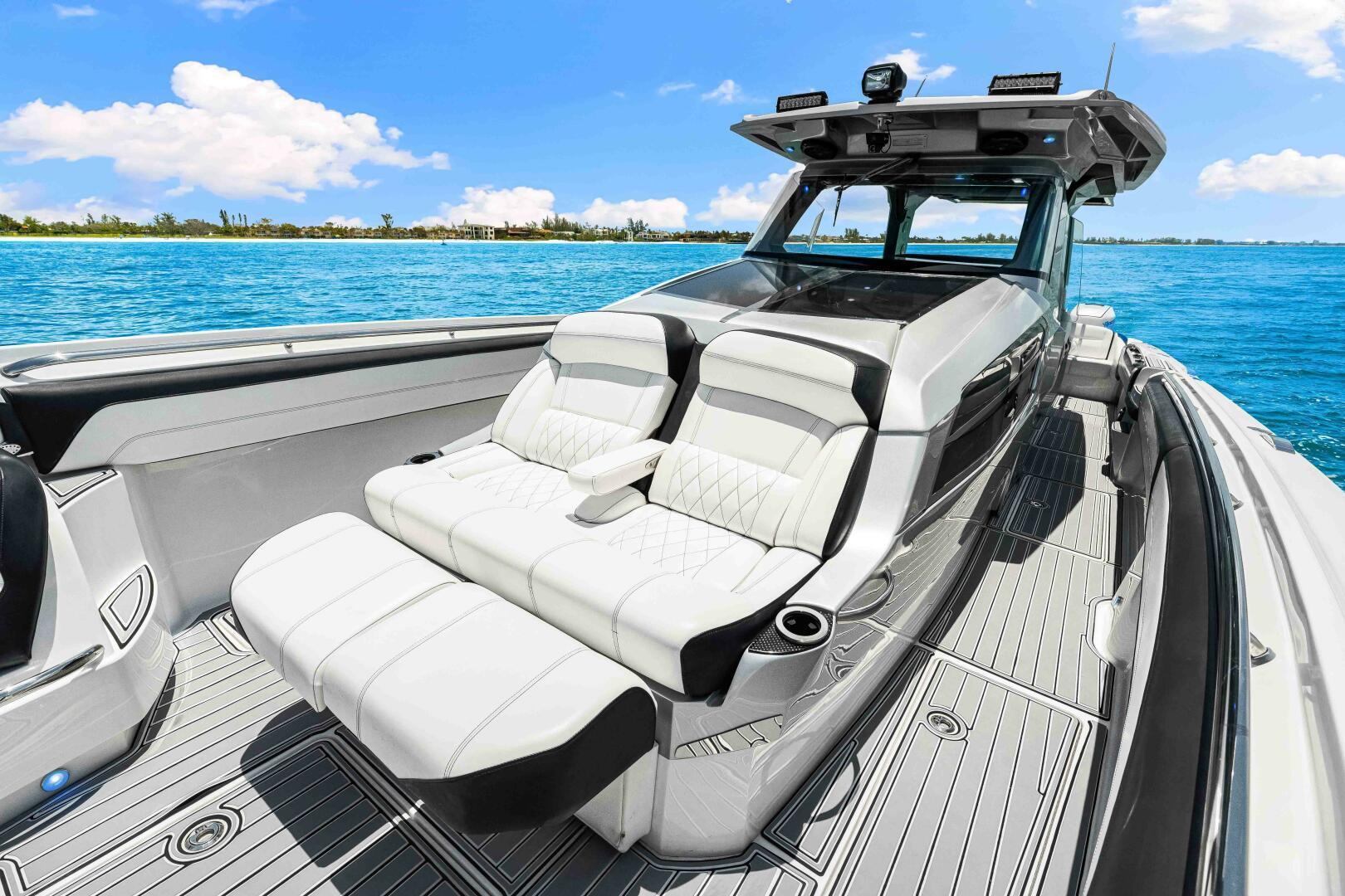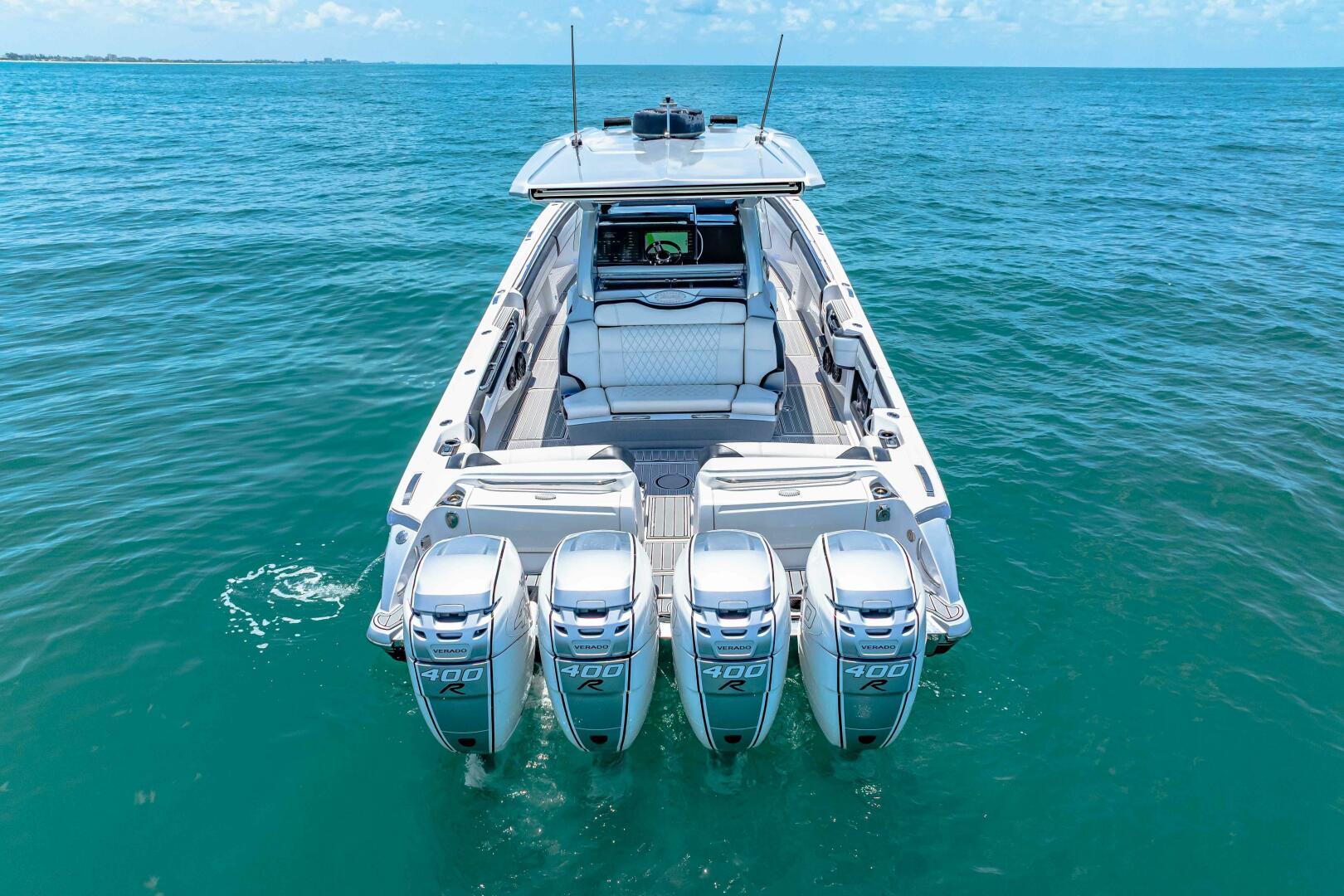 Nor-Tech 450 Sport.The sleek, sweeping lines of this machine are just the start of watching heads turn. The clean, streamlined construction makes this 45-foot boat look even bigger. Everyone will want to be aboard the 450 Sport, and there’s plenty of room and luxurious creature comforts — including a wraparound sofa, Wet Bar, private head with a sink and stand-up shower. The Nor-Tech 450 Sport Center Console is your ultimate hi-performance multi-purpose sporty weekender! Key Features:Twin 22” Garmin display’sBow & Stern ThrusterCold Plate Storage BoxPaint scheme is an elegant Mercedes Iridium Silver with black & white accents Northern Lights Generator (serviced June 2022)