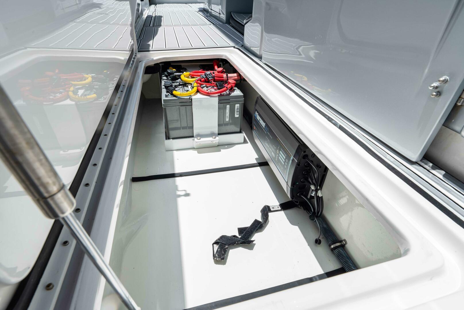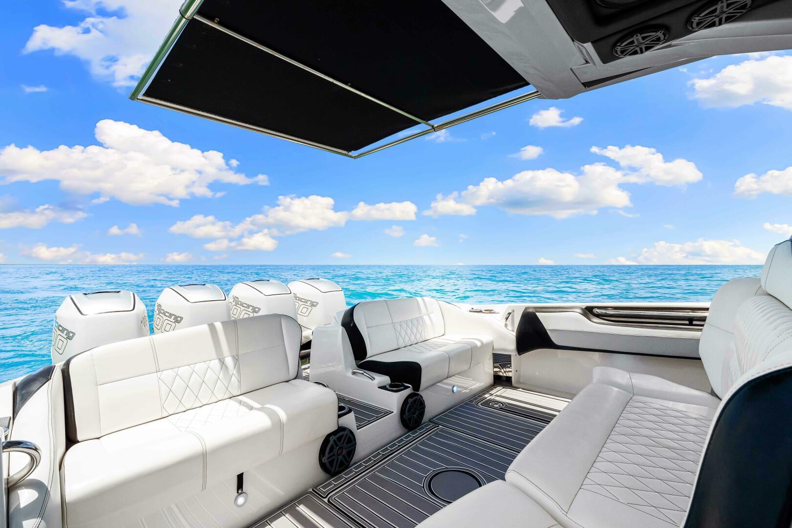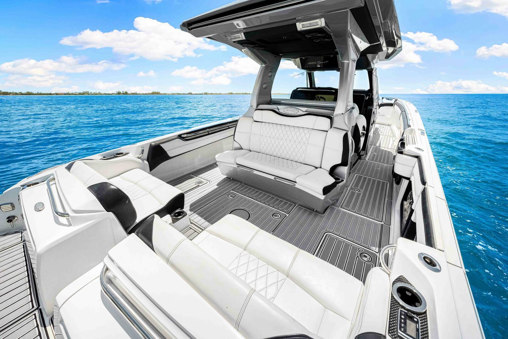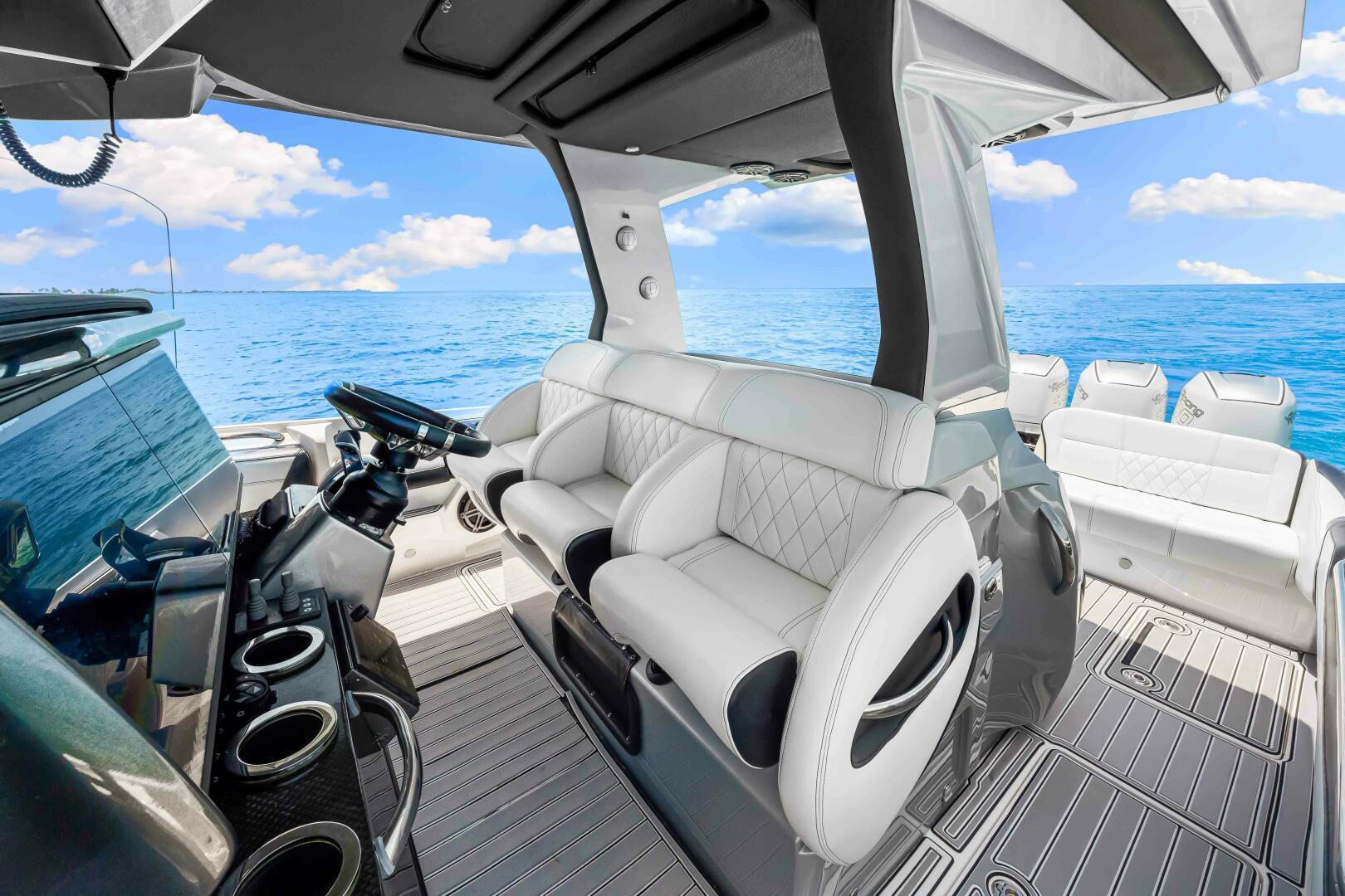 Nor-Tech 450 Sport.The sleek, sweeping lines of this machine are just the start of watching heads turn. The clean, streamlined construction makes this 45-foot boat look even bigger. Everyone will want to be aboard the 450 Sport, and there’s plenty of room and luxurious creature comforts — including a wraparound sofa, Wet Bar, private head with a sink and stand-up shower. The Nor-Tech 450 Sport Center Console is your ultimate hi-performance multi-purpose sporty weekender! Key Features:Twin 22” Garmin display’sBow & Stern ThrusterCold Plate Storage BoxPaint scheme is an elegant Mercedes Iridium Silver with black & white accents Northern Lights Generator (serviced June 2022)