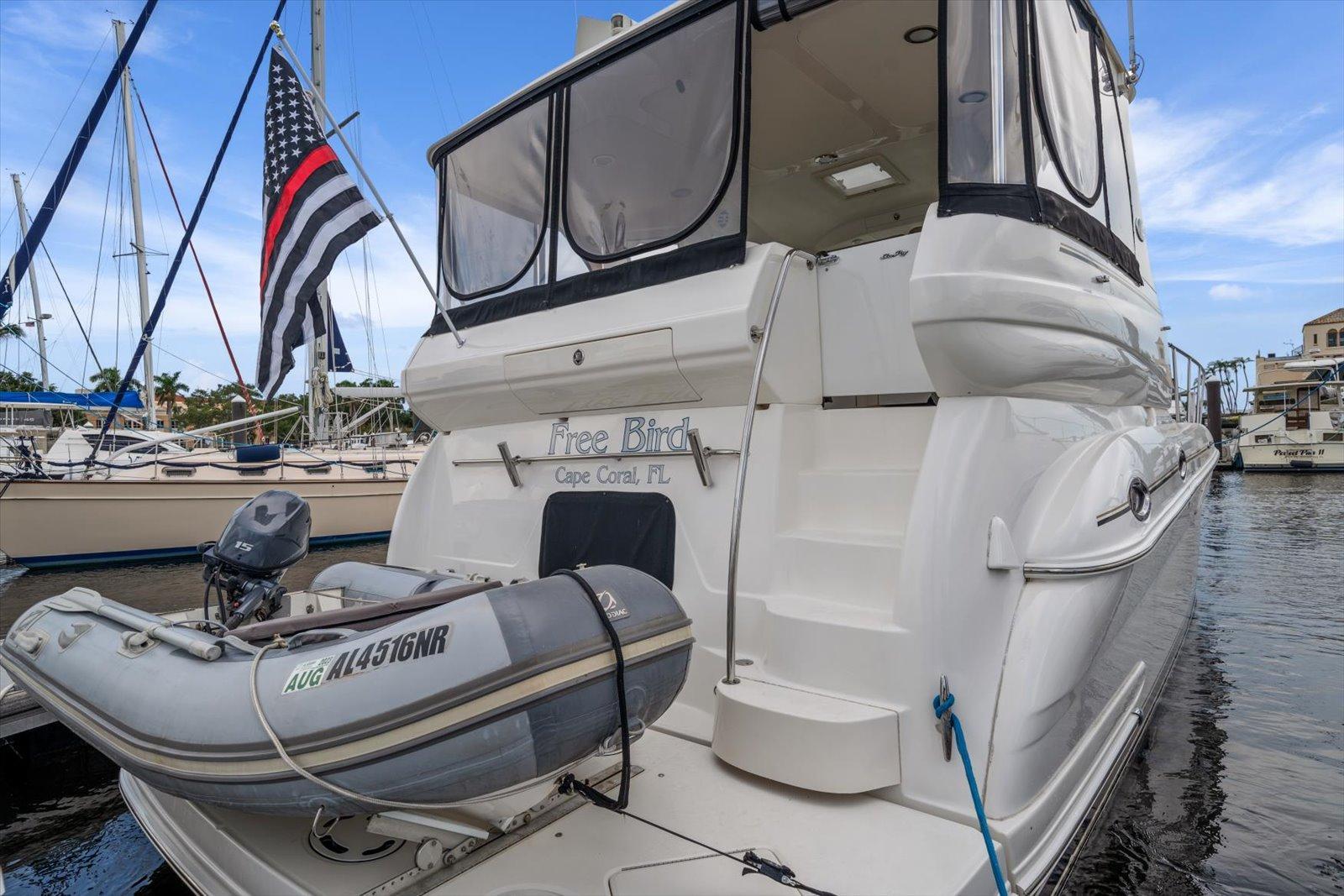 Introducing “Free Bird” – this pristine 2003 Sea Ray 480 MY embodies luxury, performance, and meticulous care. This stunning yacht has been lovingly maintained, ensuring its condition remains exceptional.“Free Bird” is the nicest 480 MY on the market today; the current owner has been meticulous with every detail. You must see this yacht! This yacht is loaded with upgrades and options to offer her new owners a clean, luxurious yacht ready to begin cruising or for your live-aboard needs. Whether your destination is the Bahamas or America’s Great Loop, she will provide you with a lifetime of lasting memories. Key FeaturesBrand new to the market!50% of the boats lifetime has been spent in a slip in fresh waterHydraulic swim platformAir-conditioned helm and aft deckZodiac tender includedCummins – low hour inboard engines, all service records; bow thrusterStarlink onboard satellite system hardware included (subscription needed)Super clean inside and out, incredible turn-key offering3 Staterooms2 large ensuite staterooms3rd stateroom can be a queen or 2 single berthsLuxurious full-beam spacious salon and gourmet galley“Basement” with washer/dryer combo and plenty of storageThe Sea Ray 480 MY combines luxury, performance, and timeless style in one of Sea Ray’s most sought-after models. Featuring a spacious three-stateroom, two-head layout with a full-beam salon and open galley to the salon, it offers the perfect blend of comfort and functionality for extended cruising.Twin Cummins diesel engines provide powerful, efficient performance, while the hydraulic swim platform and large cockpit with wraparound seating make outdoor entertaining effortless.With high-gloss finishes, abundant natural light, and proven Sea Ray quality, the 480 MY stands out as an exceptional value in the aft-cabin motor yacht market.