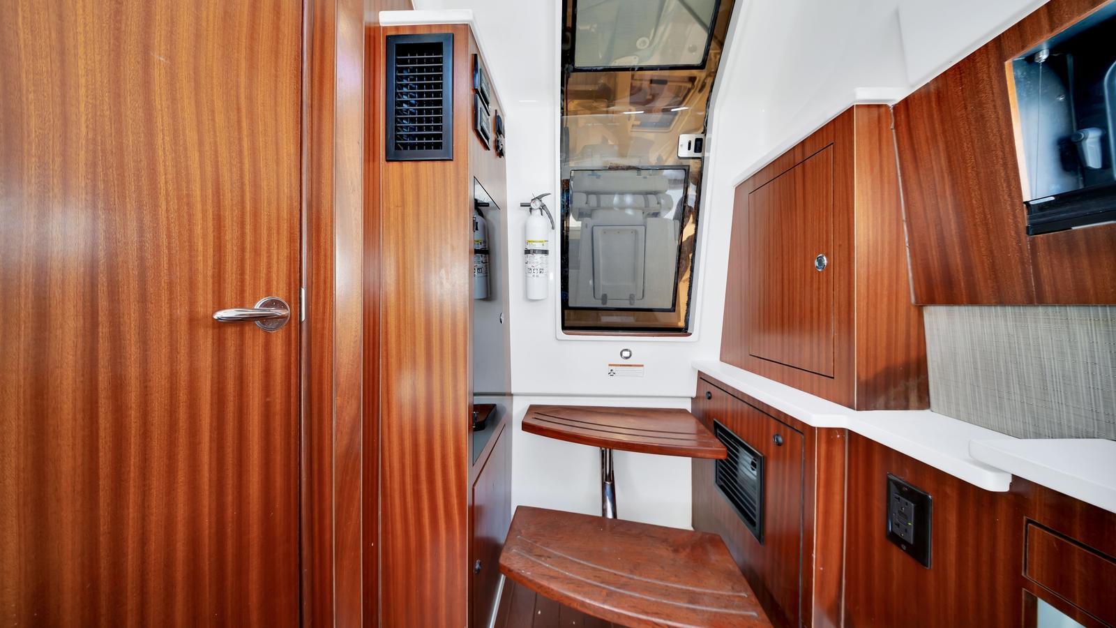 - 2x fwd facing jump seats, with fold-down footrests, and cup holders that slide forward/back for additional cockpit space and/or access to the summer kitchen