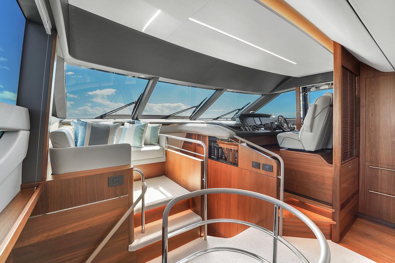 - GRP flybridge hard top featuring electric opening section in soft fabric, including dimmibale lighting