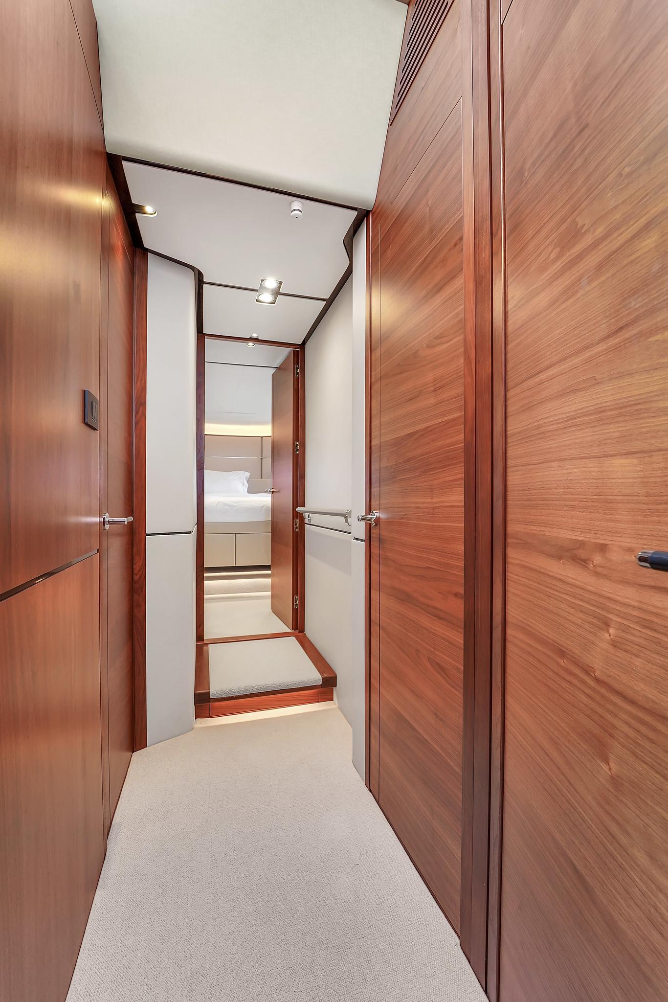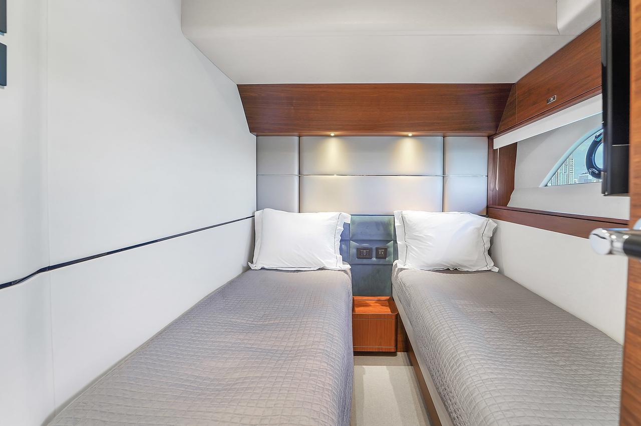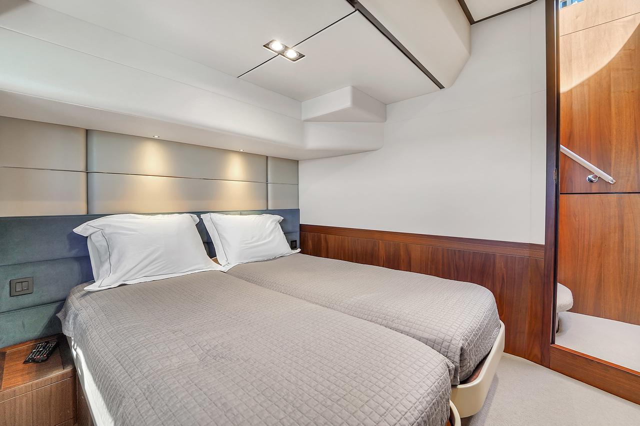 - Port cabin includes double berth conversion with powered sliding mechanism on inboard berth