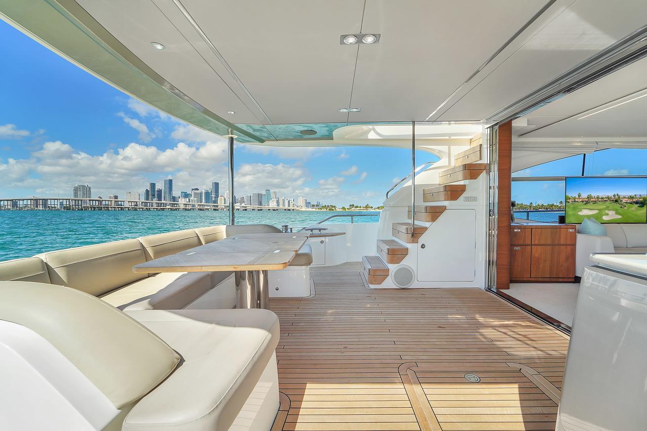 - Exterior lighting upgrade package includes additional deck level lights on side decks, transom, flybridge deck and wetbar