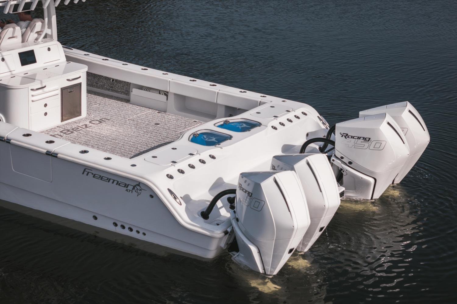 With Belz On was built to the highest specifications with no expense spared. She is captain-maintained and lift stored since new.Valuable Options include:Matterhorn White hullXL Tackle StationSecond Row Leaning Post SeatingPort and Stbd Insulated StoragePort side Dive DoorUnderwater Lighting (10)Garmin Electronics PackageQuad Mercury 450 Racing engines w/ 400 hoursLocated in Naples FLFrom the Manufacturer:Step aboard and experience an unwavering commitment to craftsmanship and innovation on the open ocean. The Freeman 47 sets the standard of seafaring ride, performance, and offshore capability. Our largest platform provides industry-leading fishability, technology, and capacities to fill your days on the water.
