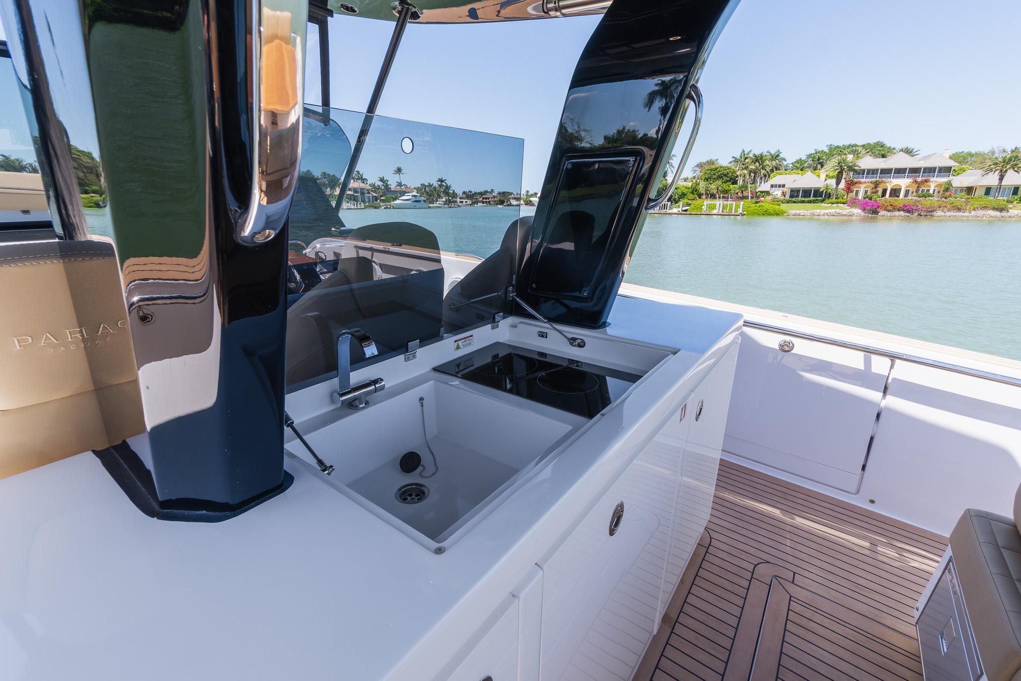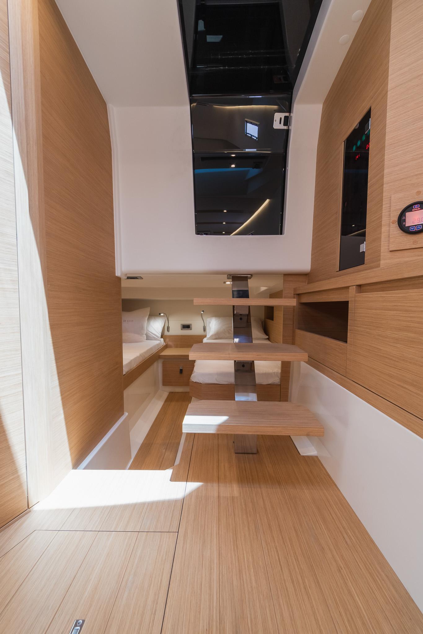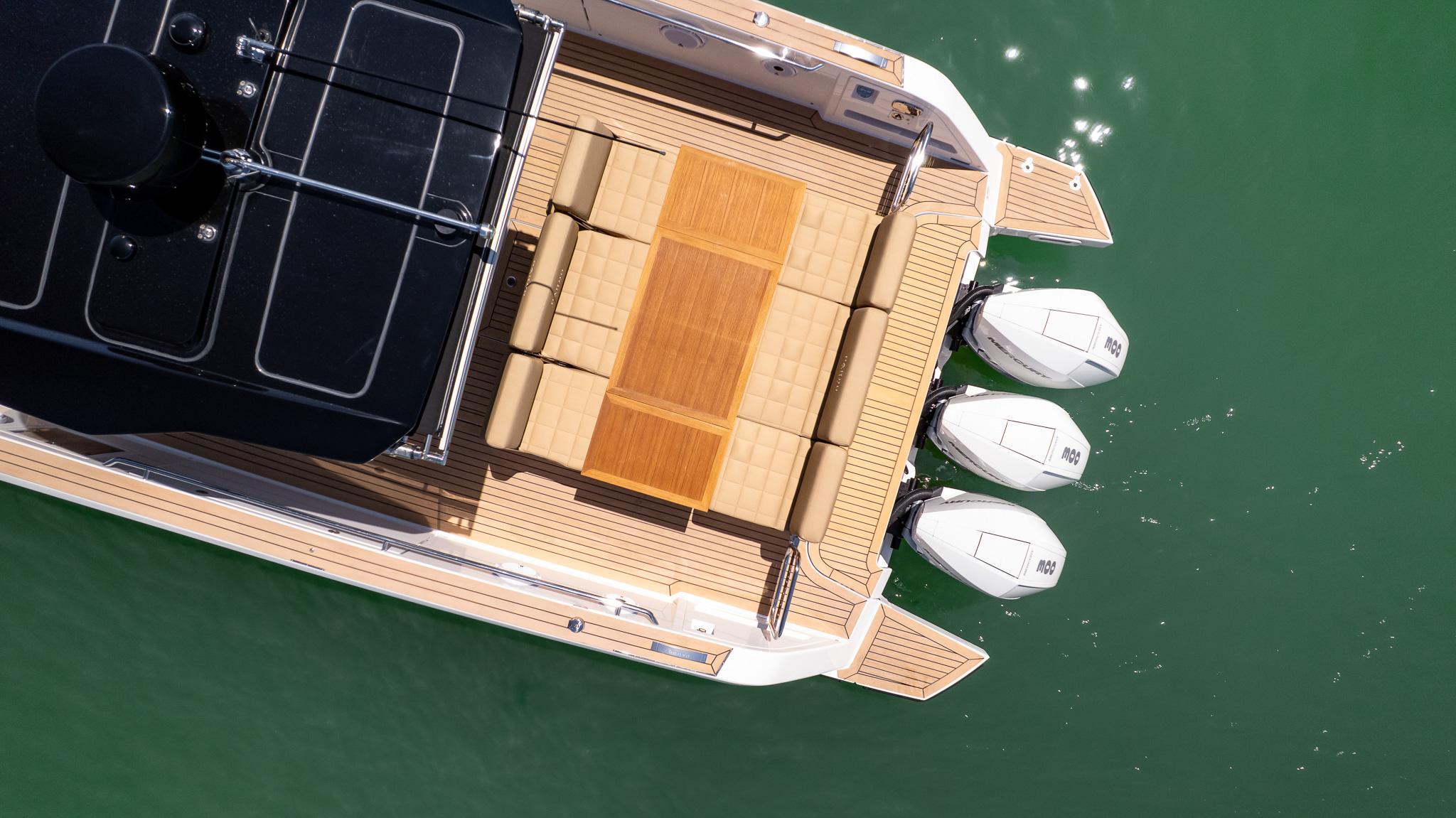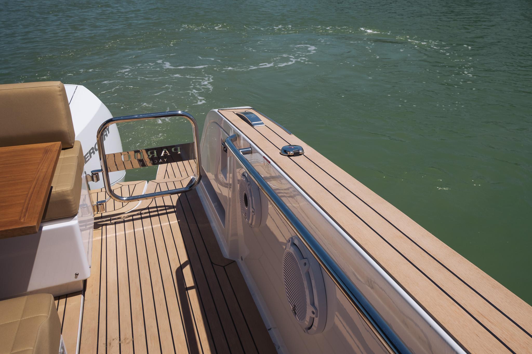 DEALER DEMO...BOAT INCLUDES FULL WARRANTY AT POINT OF SALE (2 YEARS PARDO, 3 YEARS MERCURY) ...DO NOT MISS OUT ON A GREAT OPPORTUNITY. A blend of design and performance defines the Pardo 38, the 'small' outboard in the walkaround range, which enhances the essence of the Pardo character with its reverse bow and sleek lines. The addition of outboard engines further amplifies its sportiness, ensuring higher speeds and thrilling performances. Perfect for daily outings with family and friends, safe and easy to maneuver, the P38 Outboard promises adrenaline and fun for owners seeking an even more spirited driving experience. Also ideal as a luxury tender for large yachts, each P38 Outboard is a masterpiece of Italian design, capable of merging tradition and innovation, with extensive customization options to meet the desires of the most demanding owners. The deck plan maintains the walkaround configuration, ensuring versatile spaces for enjoying the sea at any time of the day. The central cockpit, multifunctional, quickly transforms from a living area for 6/8 people to an additional large sunbathing area. The fixed T-top, made of lightweight and durable carbon fiber, protects the dining area and helm, with the possibility of extending the shade towards the stern thanks to an integrated retractable electric bimini. The outboard engines, positioned at the stern, not only free up additional space on board but also provide an even more dynamic aesthetic and unparalleled propulsive thrust. The interiors of the P38 Outboard maintain the flexibility and minimalist style that distinguish the model. Two layouts are available: a standard configuration with a double cabin and bathroom, or a layout with a second aft cabin with twin beds. Thanks to the choice of outboards, the interior spaces gain additional livability, with volumes optimized for excellent comfort on a 38-foot boat.