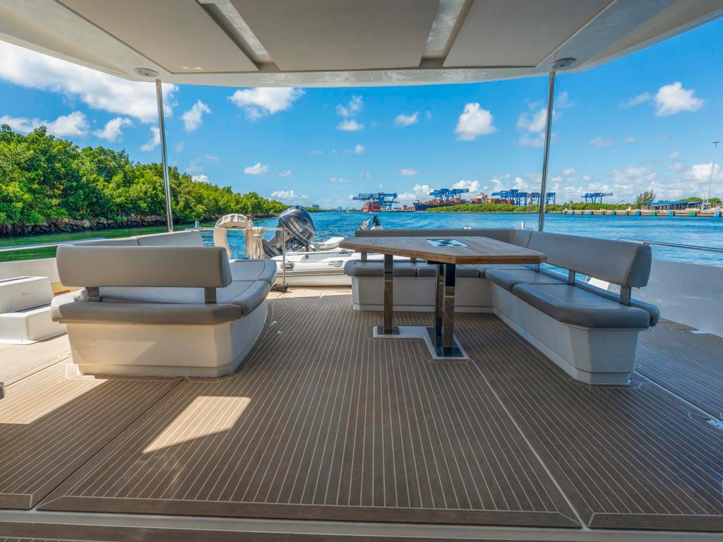 - Flybridge - rear sun awnings, teak table, grill, fridge and icemaker,