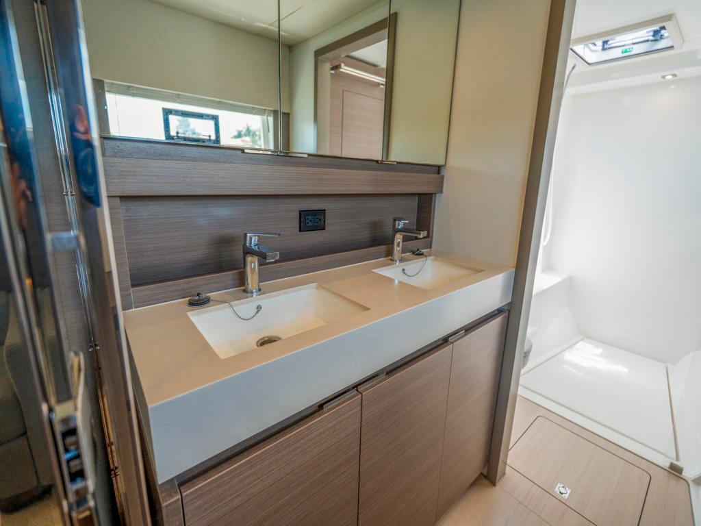 - Air conditioning: Frigomar Inverter 70,000 BTU chilled water marine HVAC system with units servicing each cabin and main salon/ galley.