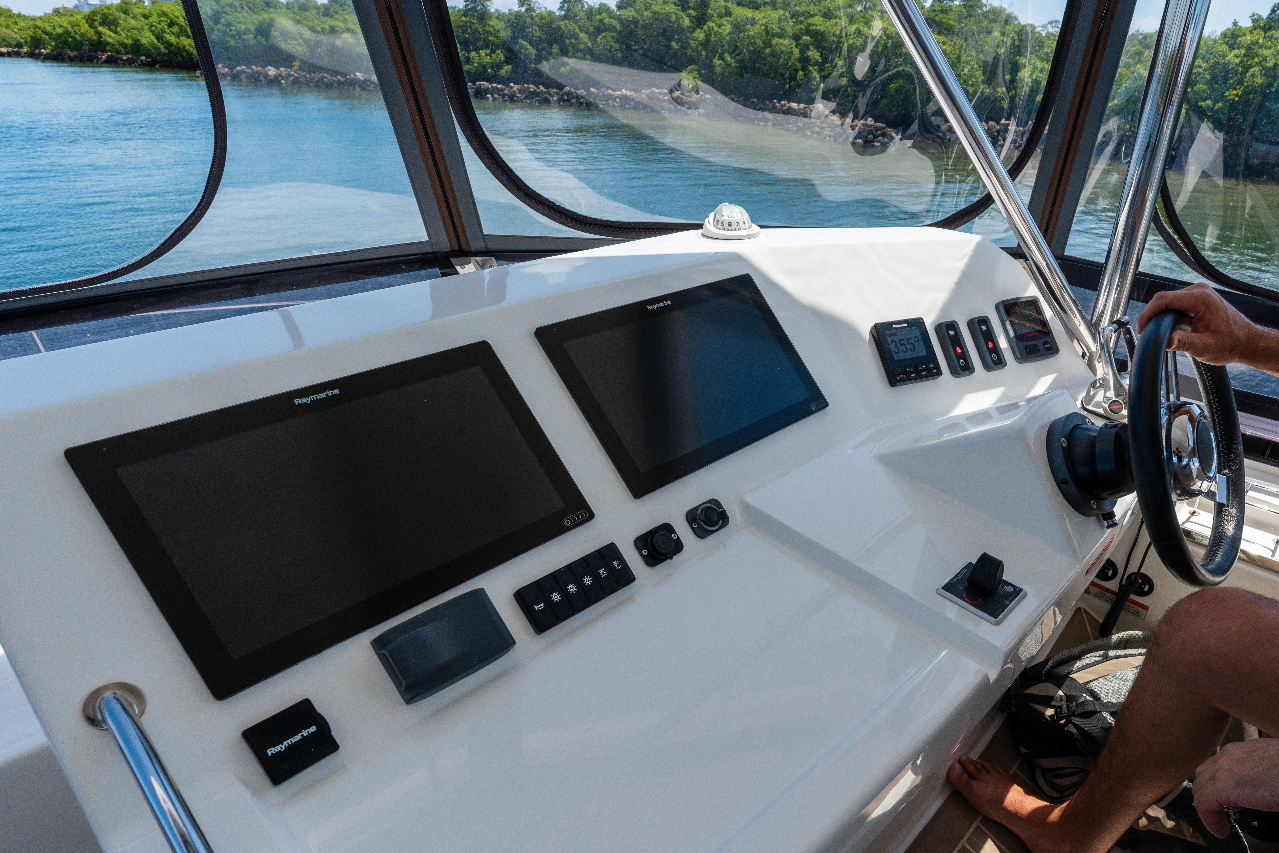 - Helm flybridge: 2 x Raymarine Axiom 16", Raymarine 73VHF