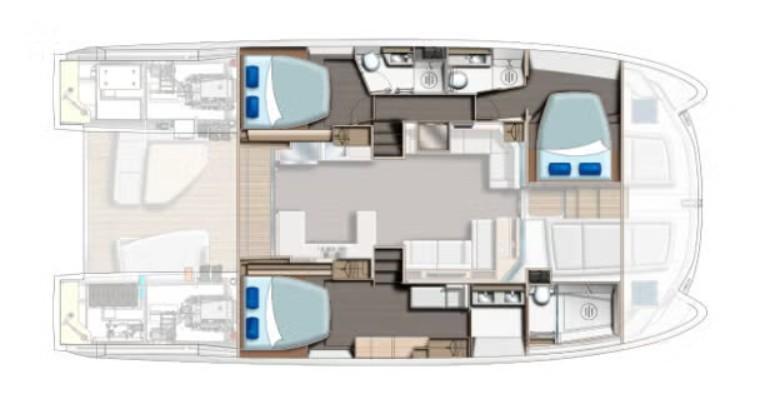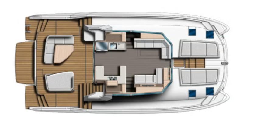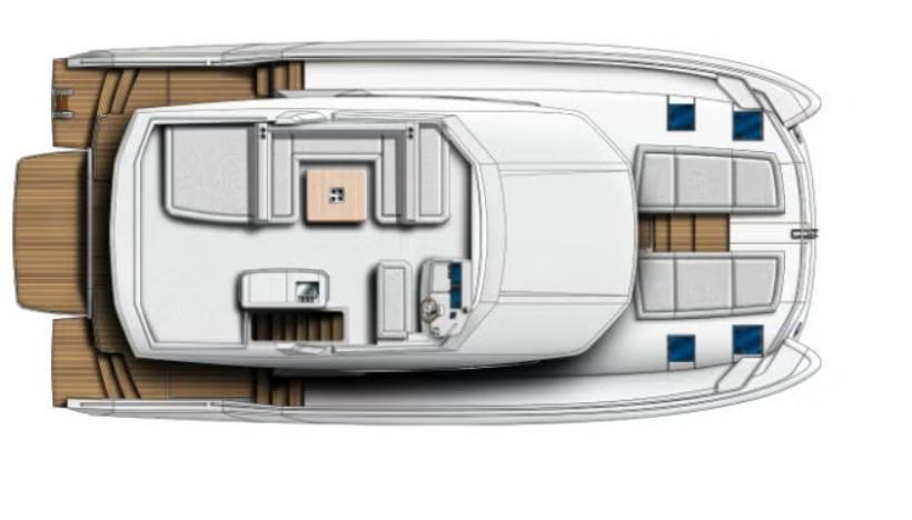 - Music system: FUSION MARINE STEREO MS750, 4 zones, loudspeakers in salon, aft -cockpit, fly bridge and fore-deck