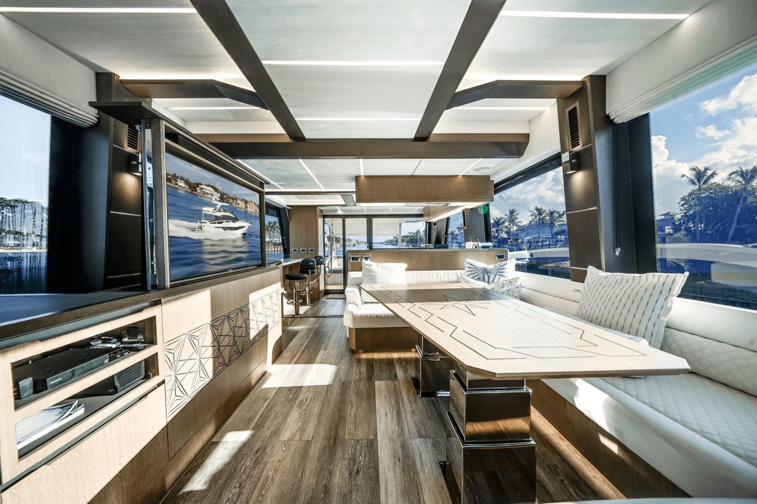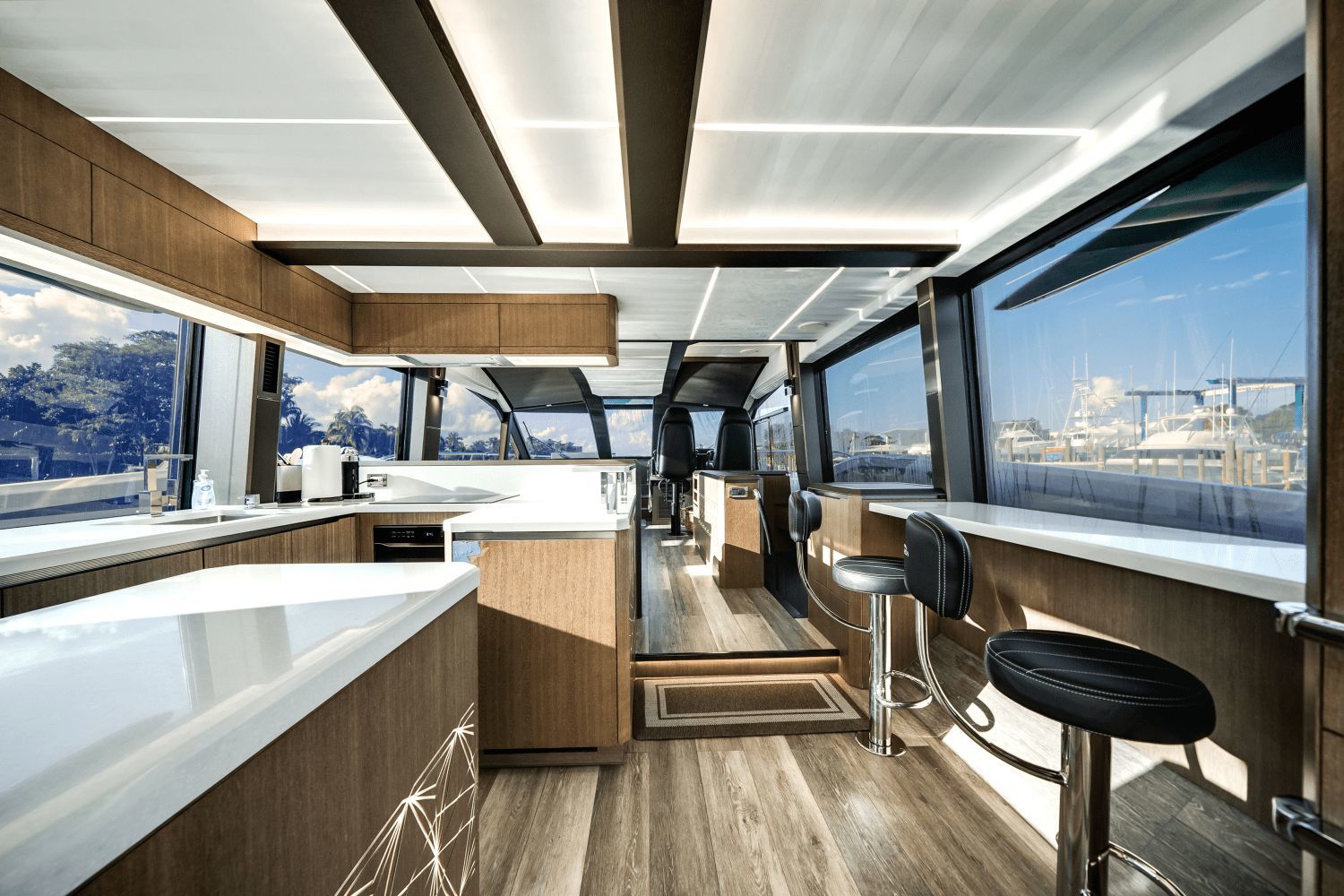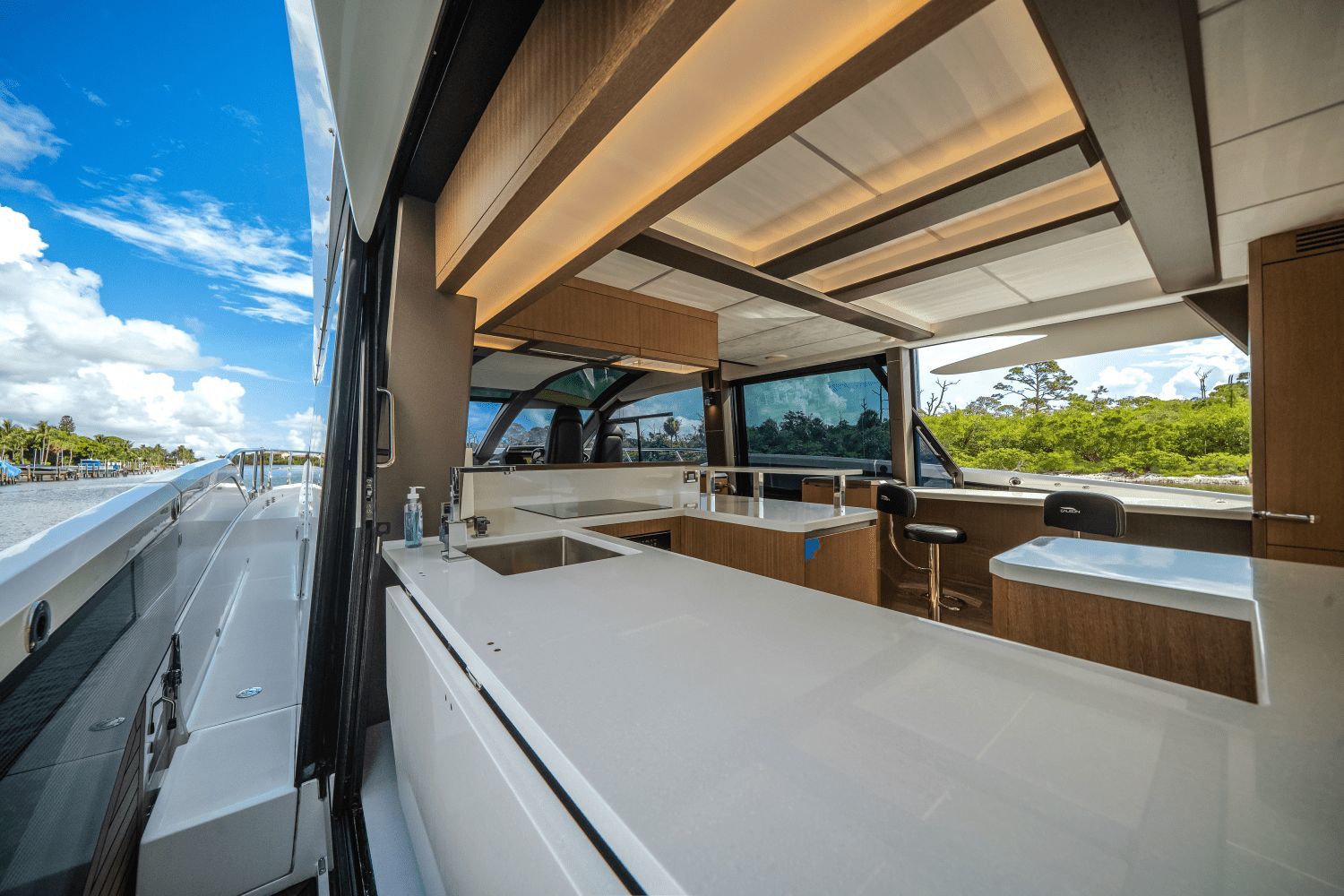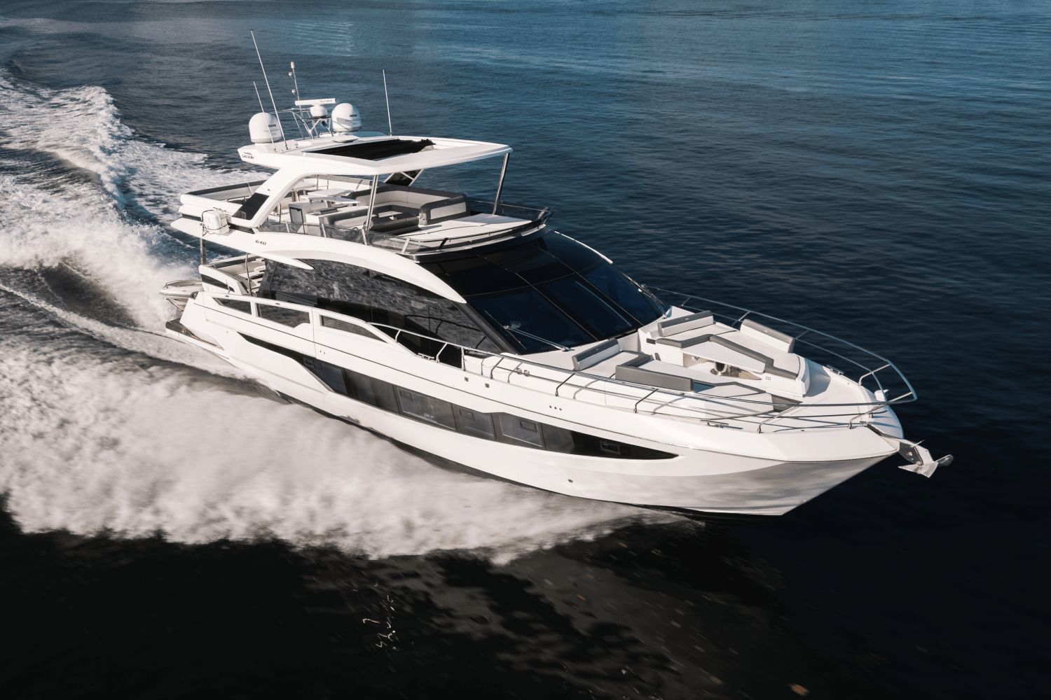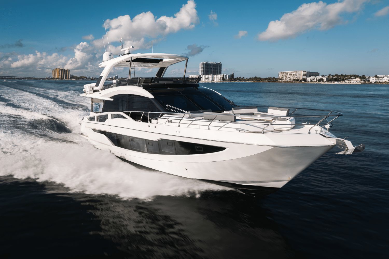 2021 Galeon 640 Fly Bridge -- One Owner boat custom ordered with a long list of upgrades. Her owner is a long time yachtsman who has owned much larger yachts and took much thought into selecting options and equipment for this beautiful vessel. Never Chartered and always professional captain maintained. Her owner has had a full time captain and deck/stew employed on the vessel since delivery. She is the last 2021 built and delivered just before the year model switch. The largest vessel in class with 3 statroom 3 full head layout. Highly unique layout with fold down balconies, a opening door from helm to bow area and a massive fly bridge with full bbq grill, fridge and ice maker at the bridge bar for great entertaining. Multiple dining areas at the bridge, cockpit, interior and bow sections of the vessel. Large cockpit seating with electric privacy screen and great flow into galley/salon area. She boast a private crew quarters on transom for 2 with crew head, kitchenette and full size washer with separate dryer. Standup walk-in engine room with plenty of space for spares and owner accessories.Volvo Penta Diesel - D13 - 1000 hp - Straight Shaft - 600 hoursKohler Diesel Generator - 29 KW - 1000 hours with 1k level service recently completed*Electro-Sea ClearLine System for Air Conditioning Chiller Raw Water Loop*Yacht Controller - Wireless docking control with Engines + Stern and Bow Thruster control*Starlink Sat Communications*Marquipt 6 step boarding stairs*Sliding chocks for a tender (tender not included)Seakeeper 9 - 654 HoursBottom paint with 3 coats completed in Feb 2025Prop Speed completed in Feb 2025New drive shaft savers, inspect shaft seals and alignment - Feb 2025New Sunroof material on bridge - August 2025Newer covers for bow cushions and seating.Satellite TV KVH Tracvision- Direct TVBow ThrusterStern ThrusterUnderwater Lights LED x 8Opening glass door way from forward salon/helm to bow exterior areaTeak deckingPrivacy / Sun Screen in cockpit - ElectricSkipper / Crew Cabin Aft - 2 bunks, bath/showerSkipper / Crew Microwave and RefrigeratorWasher / Dryer - separate units - located in crewBeach Wood Grey - Interior WoodWhite Interior Color SchemeWood flooring main deckOwner head selection of stone for walls and floorOwner head interior shower upgrade mosaicGuest head selection of stone for walls and floorGuest head interior shower upgrade mosaicSalon and galley selection for backlit designAdditional A/C unit in bow galleyDrawer Refrigerator in passage to front deckWine Cooler in SalonFusion with speakers on bowTilt Steering Wheel at lower helmComfort PackStern ThrusterCable MasterRaymarine Electronics, Open array radar, Autopilot, DepthTV 50" electric sliding in SalonTV 50" electric sliding in aft Galley facing toward cockpit (Added option)TV 43" Owners cabinTV 43" VIP Cabin forwardTV 3rd StateroomCovers - Front and Side windowsCovers - Fly Bridge areaCovers - Cockpit and BowLuxury PackBeach Mode Fold Down BalconiesBar stools for fold down BalconiesOpening Aft side windows port and starboard of GalleyWooden Floor in SalonRefrigerator on Fly BridgeElectric Grill on Fly Bridge - KenyonIcemaker on Fly BridgeWasher/Dryer - separate unitsUnderwater lights x 8Bose Sound System in SalonBose Sound System in Aft CabinCameras - Engine and Rear ViewLarge Refrigerator in aft salon, across from galleyAmbient lighting in Owner's CabinTV Prep for 3rd stateroom (TV added option)Fusion Radio in Bow Cabin110V outlet in engine roomFresh water hose in engine roomÂThe vessel has never been chartered and always private use. Her owner ordered the vessel to a high spec level and added Yacht Controller, ElectroSea Clearline and Starlink Communications to the vessel. In addition he has employed captain and crew full time since new as he previously owned a much larger vessel. Only 600 hours on her engines and proves well maintained.Vessel is located offsite at owner's private dock in Jupiter, Florida. Tender is not included.