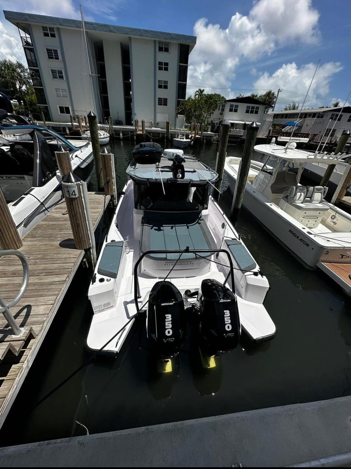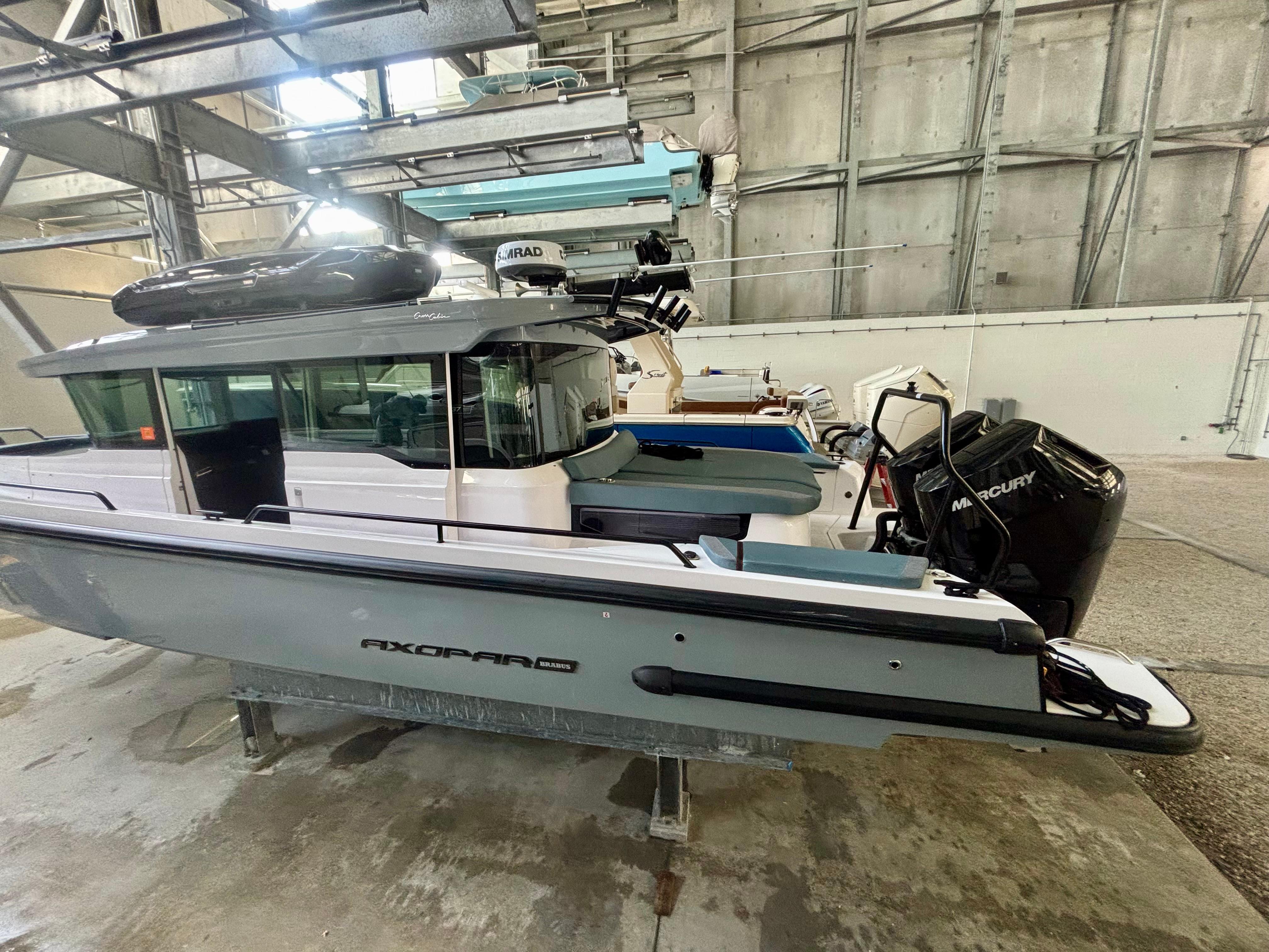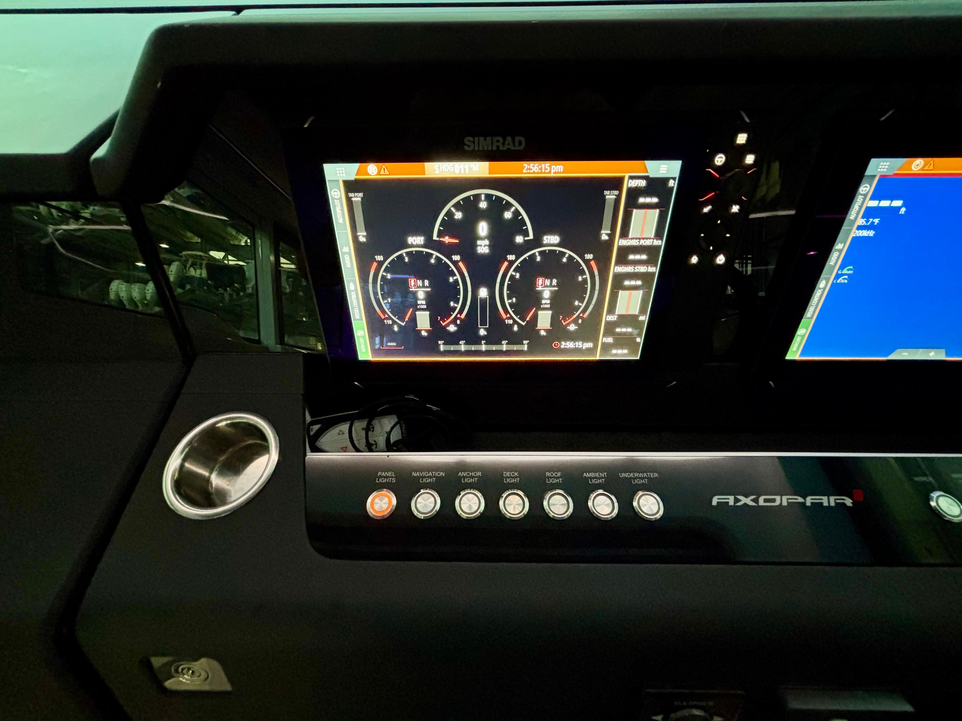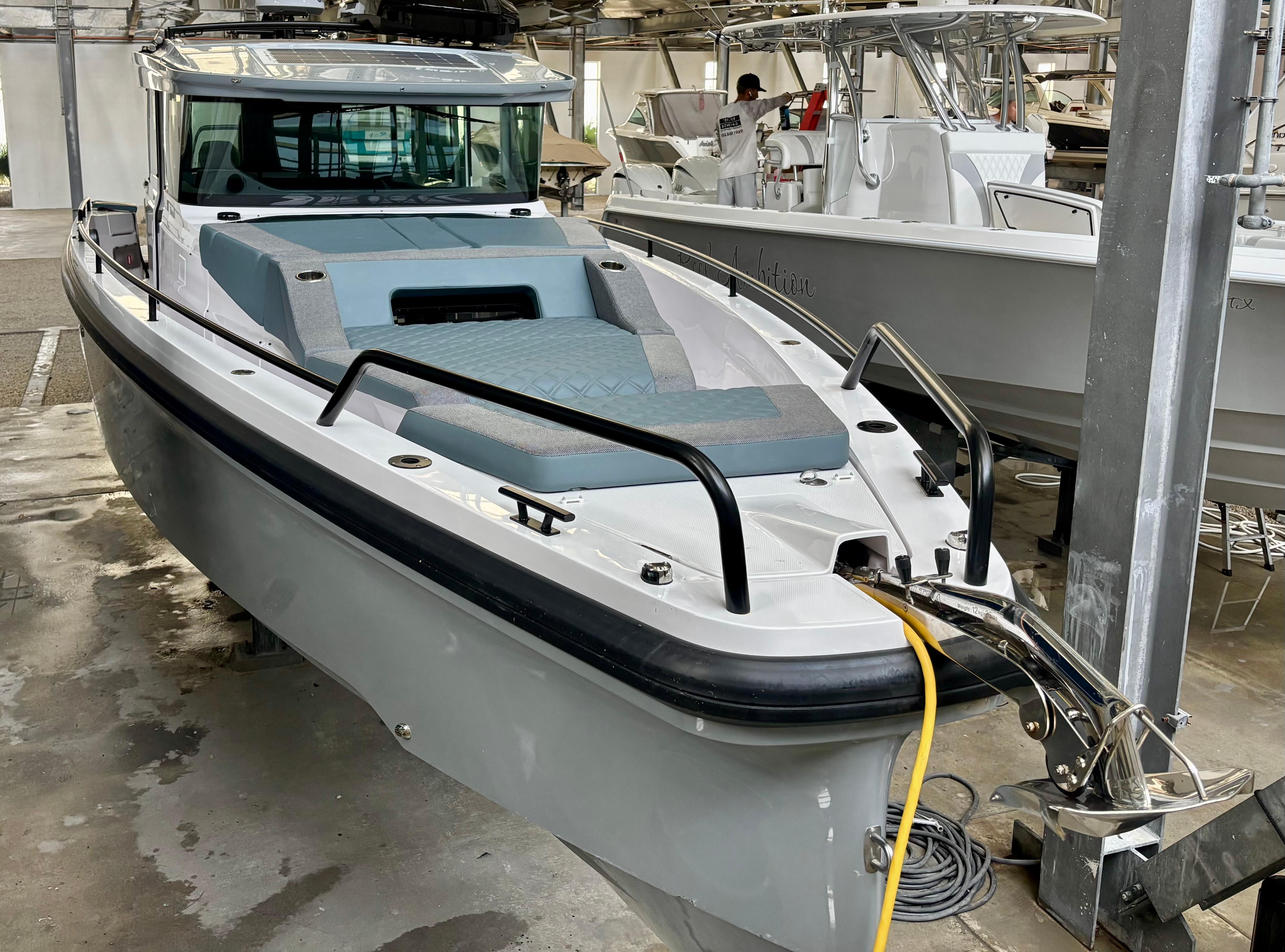 This 2024 Axopar 37 XC Cross Cabin with the Brabus Trim package is a standout example of quality and performance, powered by twin Mercury 350 V10 outboards. It has been meticulously stored indoors out of the elements at F3 Marina, keeping it in truly mint condition. With only 150 hours on the engines, this boat offers exceptional reliability and readiness for your next adventure. The Brabus Trim adds a refined and sporty edge, with upgraded finishes and premium design touches throughout. The spacious layout features both forward and aft cabins, perfect for comfortable overnight cruising, while the advanced helm electronics, premium audio system, and thoughtfully designed exterior make this vessel ideal for all-weather boating and entertaining. Combining innovative design with practical luxury, this Axopar is a rare find that’s ready to hit the water.EngineTwin Mercury 350 V10 OutboardsHelmDual Simrad 12″ Glass Bridge displaysDigital switching touchscreen panelBow thrusterElectric windlass with helm controlShore power (110V) with battery chargerElectronicsSimrad Halo20+ radarSimrad RS100 VHF radioIntegrated echo sounder / depth transducerAudio & EntertainmentJL Audio premium sound system6 speakers, subwoofer, amplifierBluetooth-enabledExterior FeaturesWide walkaround decks with high handrailsForedeck sunbed with backrestSwim platform with telescoping ladderFreshwater aft deck showerCourtesy and underwater lightingRoof rails and equipment racksCabin & Sleeping AccommodationsForward Cabin:Queen-size berthElectric flush toilet with 18 gal holding tankSink, storage, and LED lightingAft Cabin:Sleeps 2 additional adultsSide windows, blackout shades, reading lightsTotal Berths: Sleeps 4Pilothouse:Fully enclosed with sliding side doors and aft doorGullwing Side Doors: Provide excellent natural light and ventilationRoof: Electrically retractable canvas sunroofHeating: Webasto cabin heaterDedicated A/C system with its own inverter and battery bankOutlets: USB charging ports throughoutTank CapacitiesFuel Tank: 193 galFresh Water Tank: 26 galHolding Tank: 18 gal