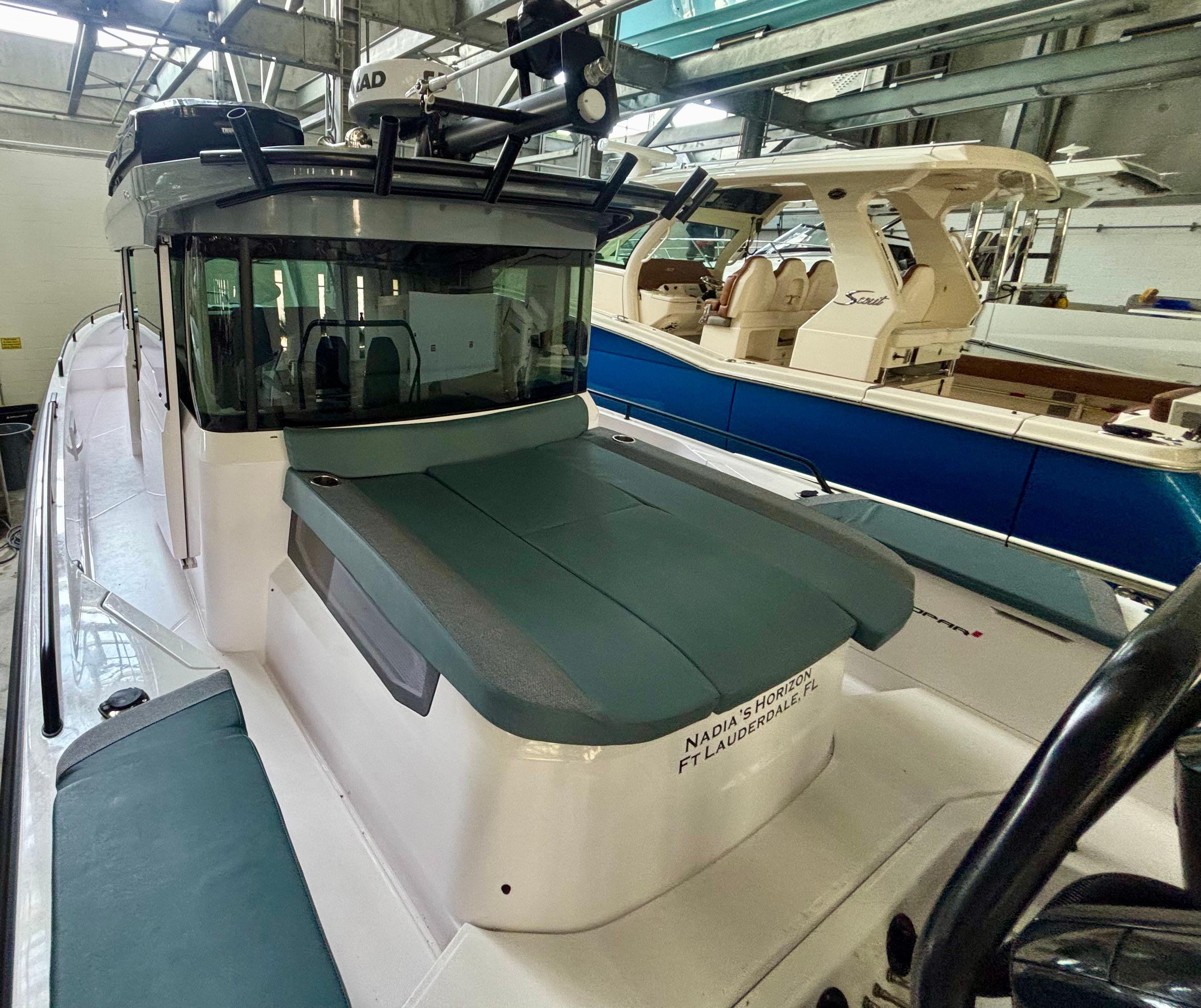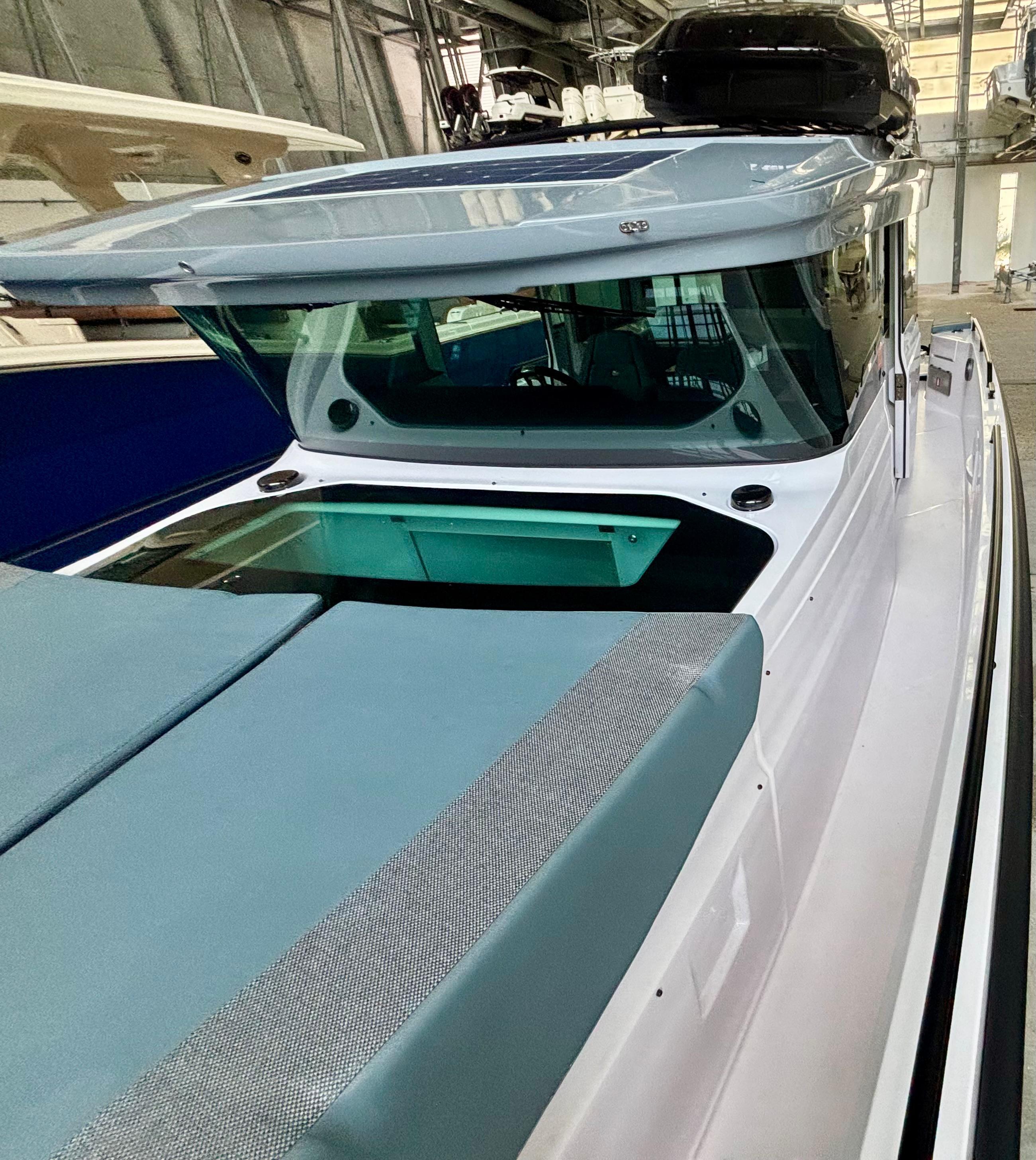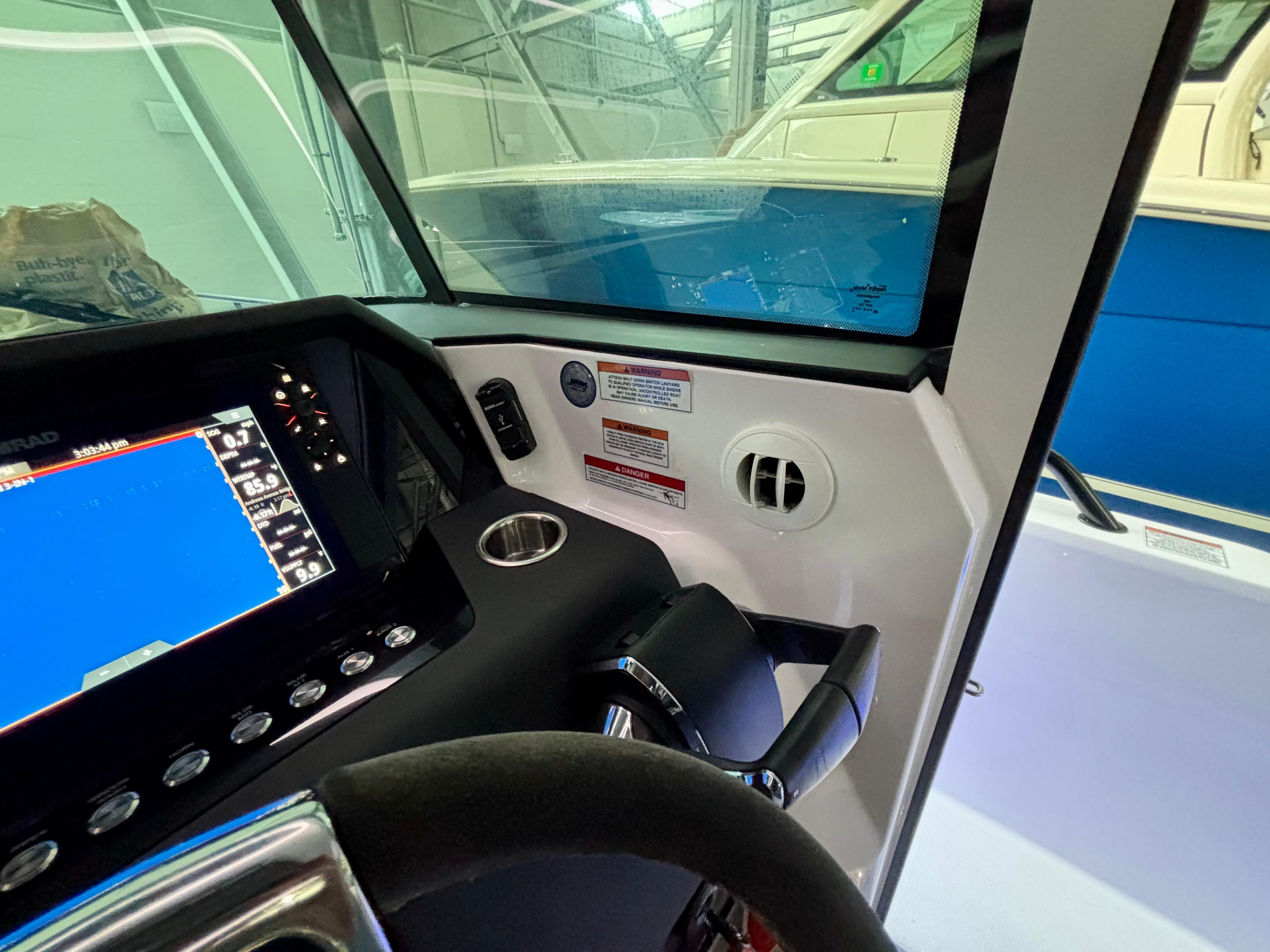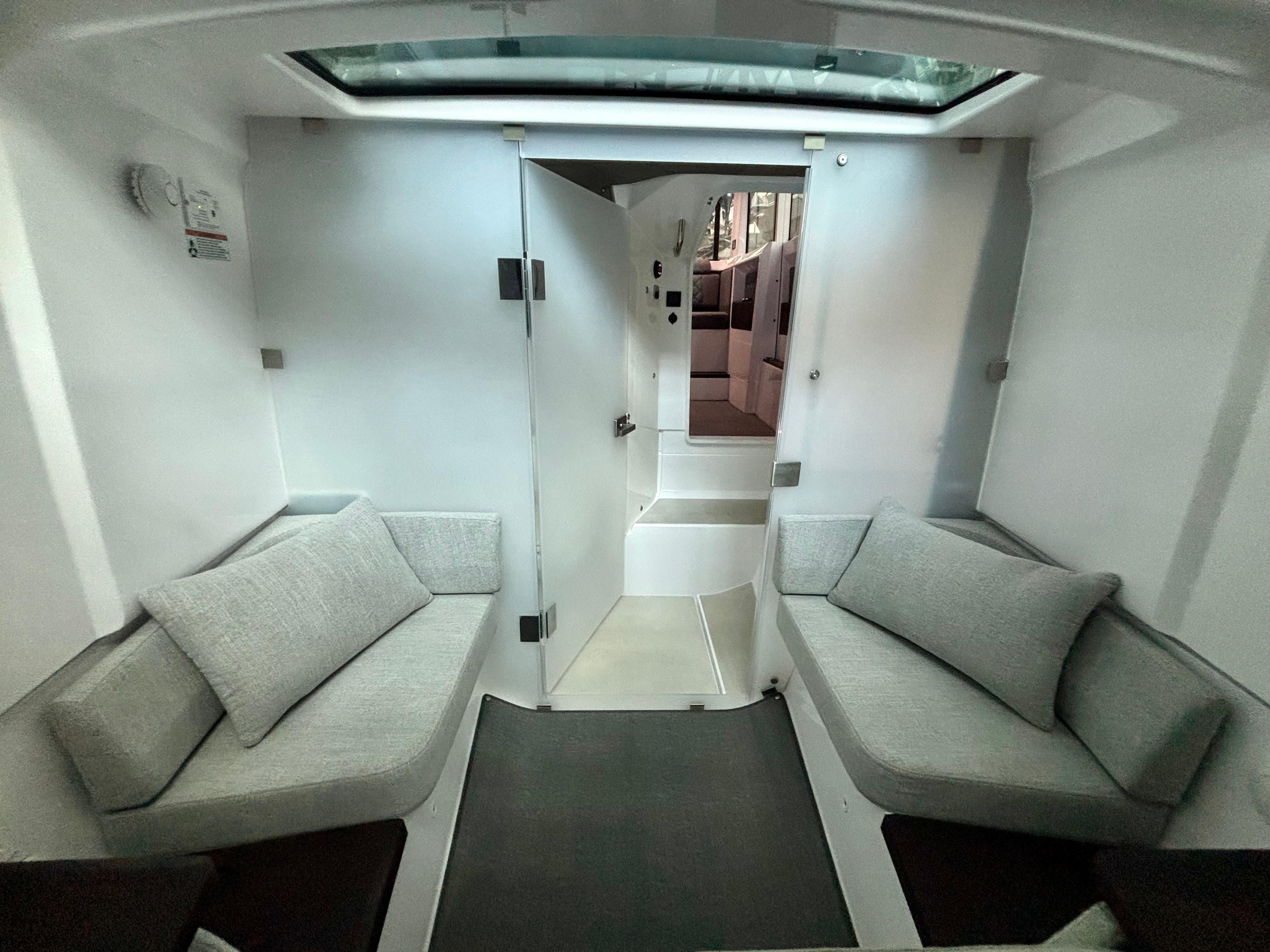 This 2024 Axopar 37 XC Cross Cabin with the Brabus Trim package is a standout example of quality and performance, powered by twin Mercury 350 V10 outboards. It has been meticulously stored indoors out of the elements at F3 Marina, keeping it in truly mint condition. With only 150 hours on the engines, this boat offers exceptional reliability and readiness for your next adventure. The Brabus Trim adds a refined and sporty edge, with upgraded finishes and premium design touches throughout. The spacious layout features both forward and aft cabins, perfect for comfortable overnight cruising, while the advanced helm electronics, premium audio system, and thoughtfully designed exterior make this vessel ideal for all-weather boating and entertaining. Combining innovative design with practical luxury, this Axopar is a rare find that’s ready to hit the water.EngineTwin Mercury 350 V10 OutboardsHelmDual Simrad 12″ Glass Bridge displaysDigital switching touchscreen panelBow thrusterElectric windlass with helm controlShore power (110V) with battery chargerElectronicsSimrad Halo20+ radarSimrad RS100 VHF radioIntegrated echo sounder / depth transducerAudio & EntertainmentJL Audio premium sound system6 speakers, subwoofer, amplifierBluetooth-enabledExterior FeaturesWide walkaround decks with high handrailsForedeck sunbed with backrestSwim platform with telescoping ladderFreshwater aft deck showerCourtesy and underwater lightingRoof rails and equipment racksCabin & Sleeping AccommodationsForward Cabin:Queen-size berthElectric flush toilet with 18 gal holding tankSink, storage, and LED lightingAft Cabin:Sleeps 2 additional adultsSide windows, blackout shades, reading lightsTotal Berths: Sleeps 4Pilothouse:Fully enclosed with sliding side doors and aft doorGullwing Side Doors: Provide excellent natural light and ventilationRoof: Electrically retractable canvas sunroofHeating: Webasto cabin heaterDedicated A/C system with its own inverter and battery bankOutlets: USB charging ports throughoutTank CapacitiesFuel Tank: 193 galFresh Water Tank: 26 galHolding Tank: 18 gal