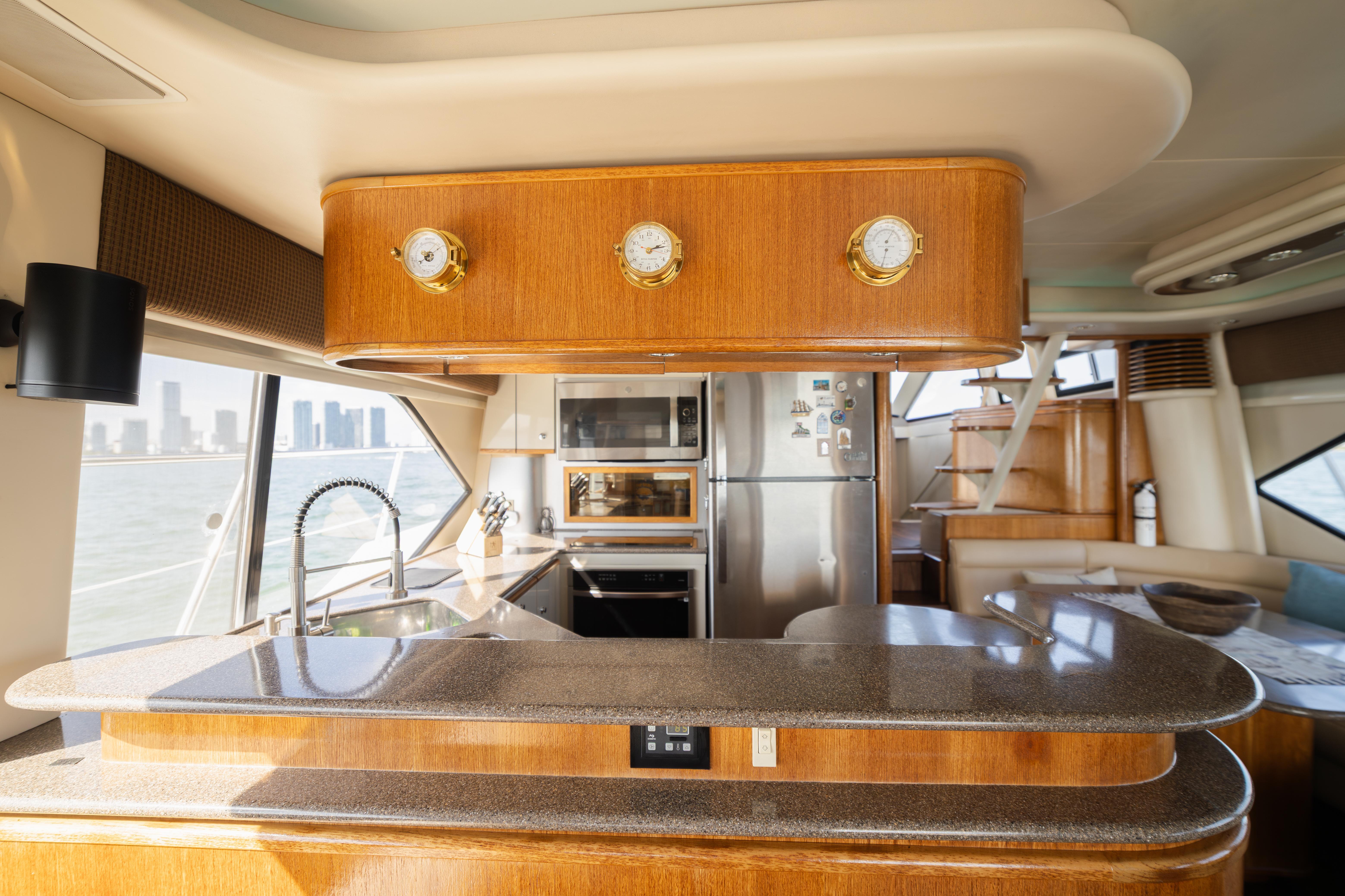 The 1999 Bayliner 5788 is known for its comfort and spacious design for cruising. It typically features a three-stateroom, two-head layout, making it suitable for extended trips. A walk-around side deck, a large cockpit, and an accessible flybridge are some of the features.
