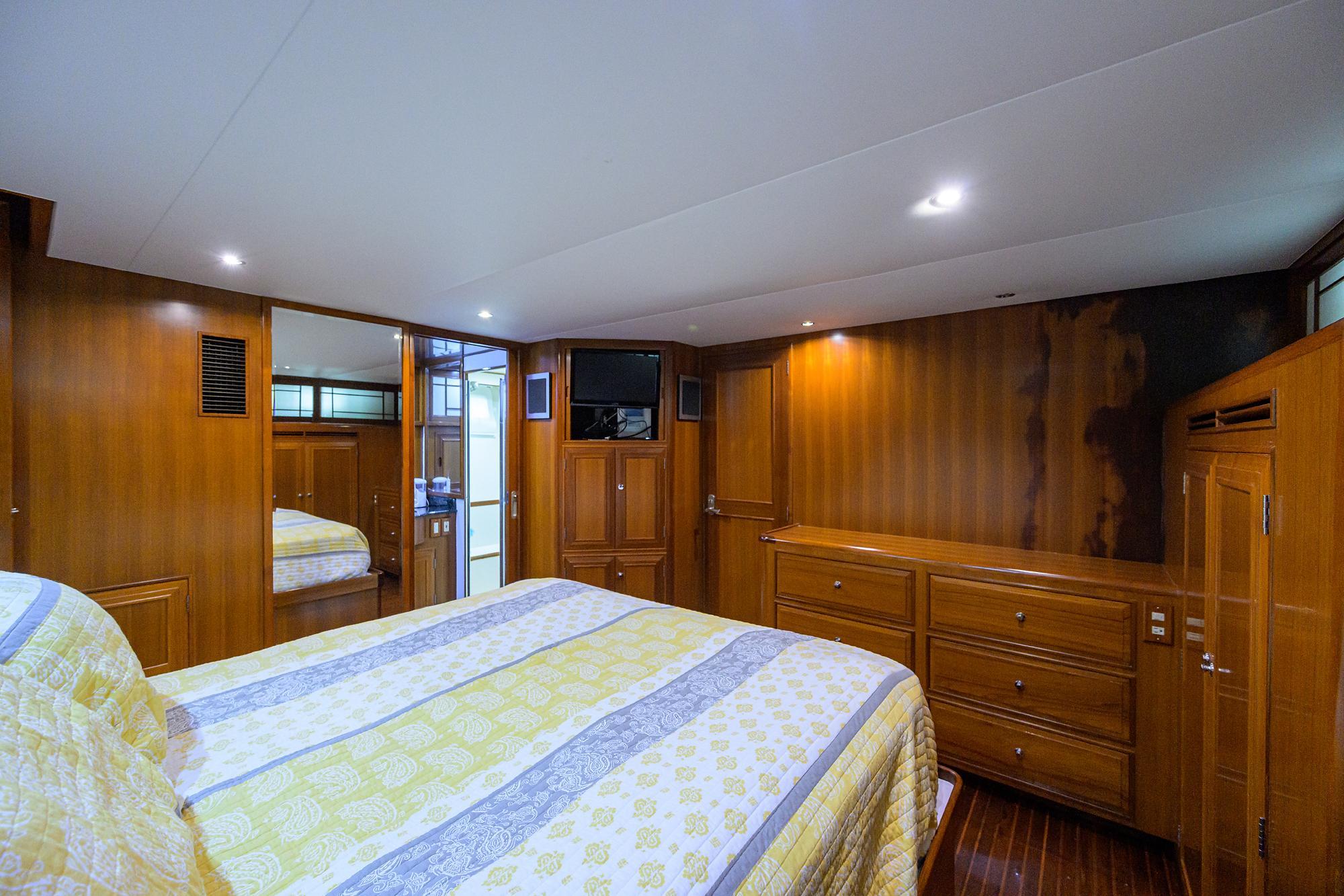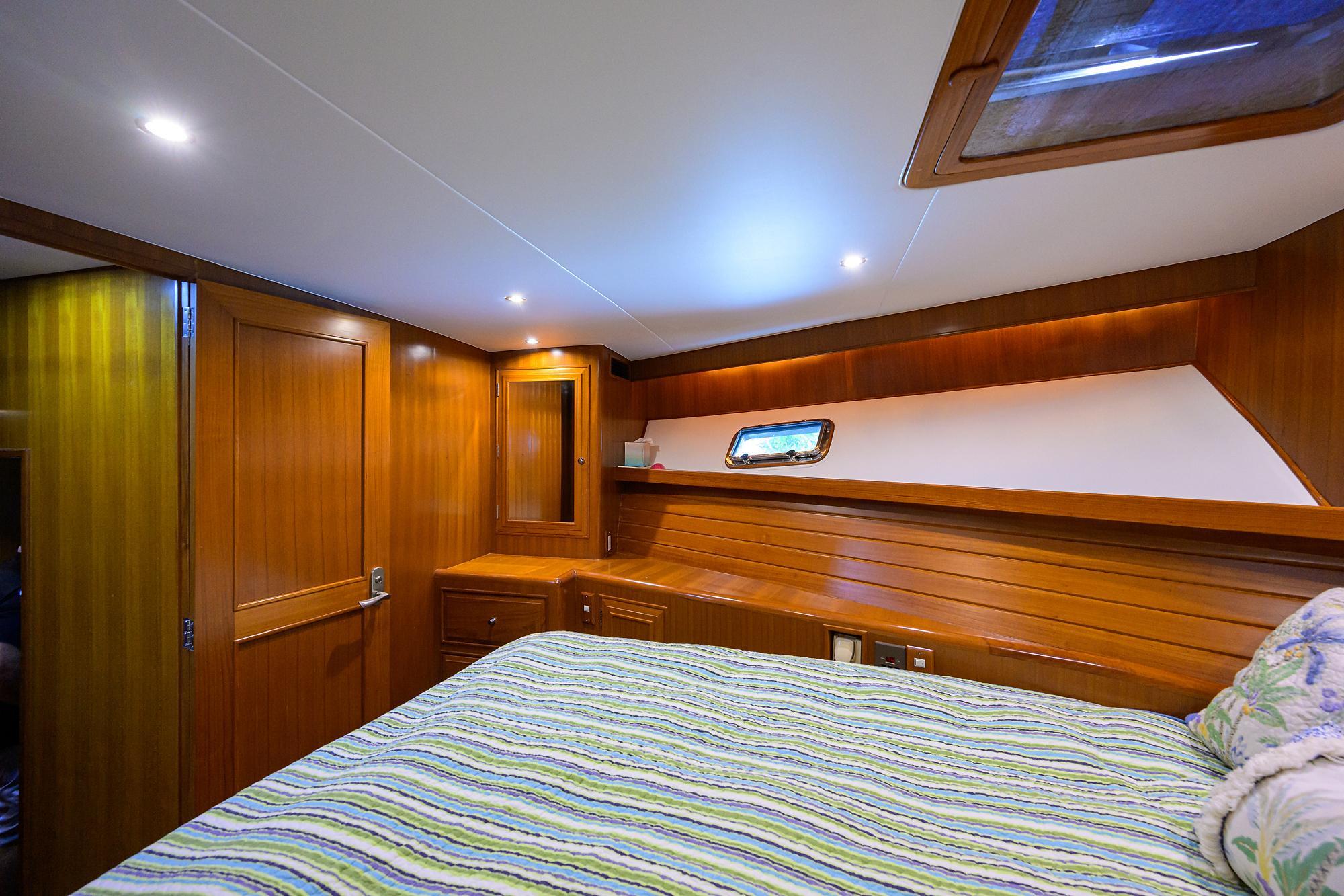 - Centerline queen bed running fore and aft
