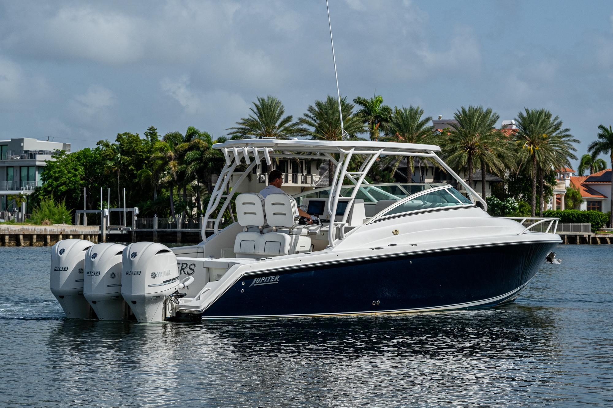 Here is your opportunity to own a stunning 2016 34 Jupiter LX powered by reliable triple 300 Yamahas, custom-painted white. This boat boasts the perfect crossover between fishing and comfort. With A/C in both the cabin and helm, the family can stay cool and get out of the sun. The cockpit is wide open for fishing and diving. She is in turn key condition and ready for her new owner.Key Features/options:Bow thruster Panda Fischer generator (diesel)Dual Garmin multi function displaysA/C in both the cabin and the helm Side dive/fish door bottom paint