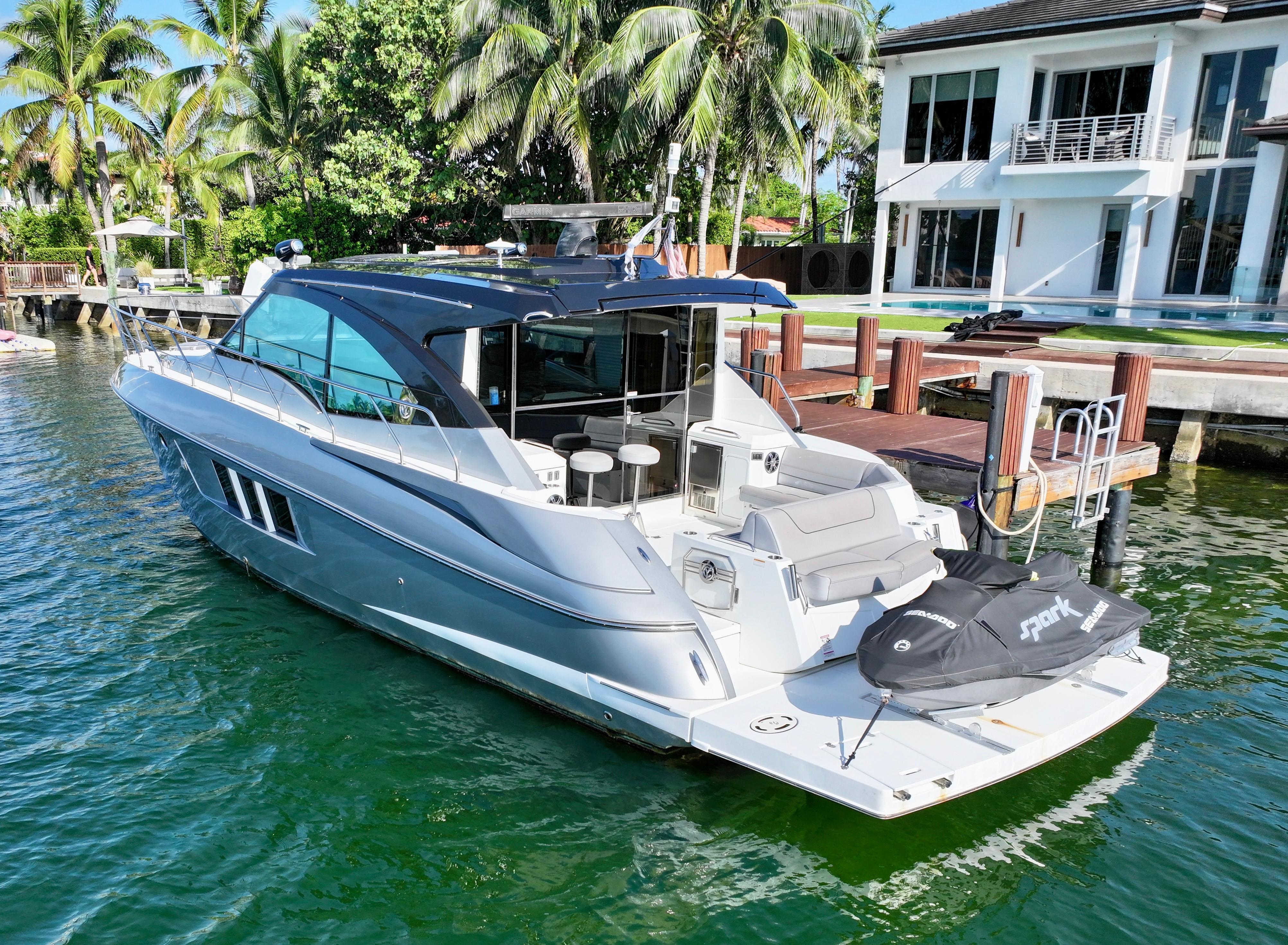 Introducing the stunning 2018 Cruisers Yachts 45 Cantius, a remarkable vessel that embodies elegance and performance. With an overall length of 47.5 feet, this cruiser offers a spacious and inviting design, perfect for leisurely outings on the water. Crafted from durable fiberglass, the hull ensures both stability and a smooth ride, making it ideal for cruising adventures. The 45 Cantius is equipped with modern features that enhance the boating experience, including advanced joystick control for effortless maneuverability. This yacht is designed for comfort and style, providing an exceptional environment for relaxation and entertainment. Whether you're hosting friends or enjoying a serene day on the water, the Insieme promises to deliver unforgettable moments. With its sleek lines and contemporary design, this cruiser is a true testament to luxury on the waves. Experience the joy of boating with the 45 Cantius, where every journey becomes a cherished memory.Details:2018 Cruisers Yachts 45 CantiusTwin IPS 600Twin 12 in Garmin's at HelmMaster and VIP State rooms Master Head with separate showerWet head in VIP roomHydraulic Swim Platform with caulks for Jet skiElectronically actuated SunbedHydraulically actuated aft hatch Electric Sunshade Electric Grill in cockpitDual refrigerators in cockpit Fold up aft glass to open up floor plan and aft barConvection Oven is GalleyTV in salon, Master bed room and VIP State Room Fusion Stereo System Galley Fridge/ FreezerMeticulously captain maintained vessel that has been kept with an open check book. Reach out today to schedule a showing.