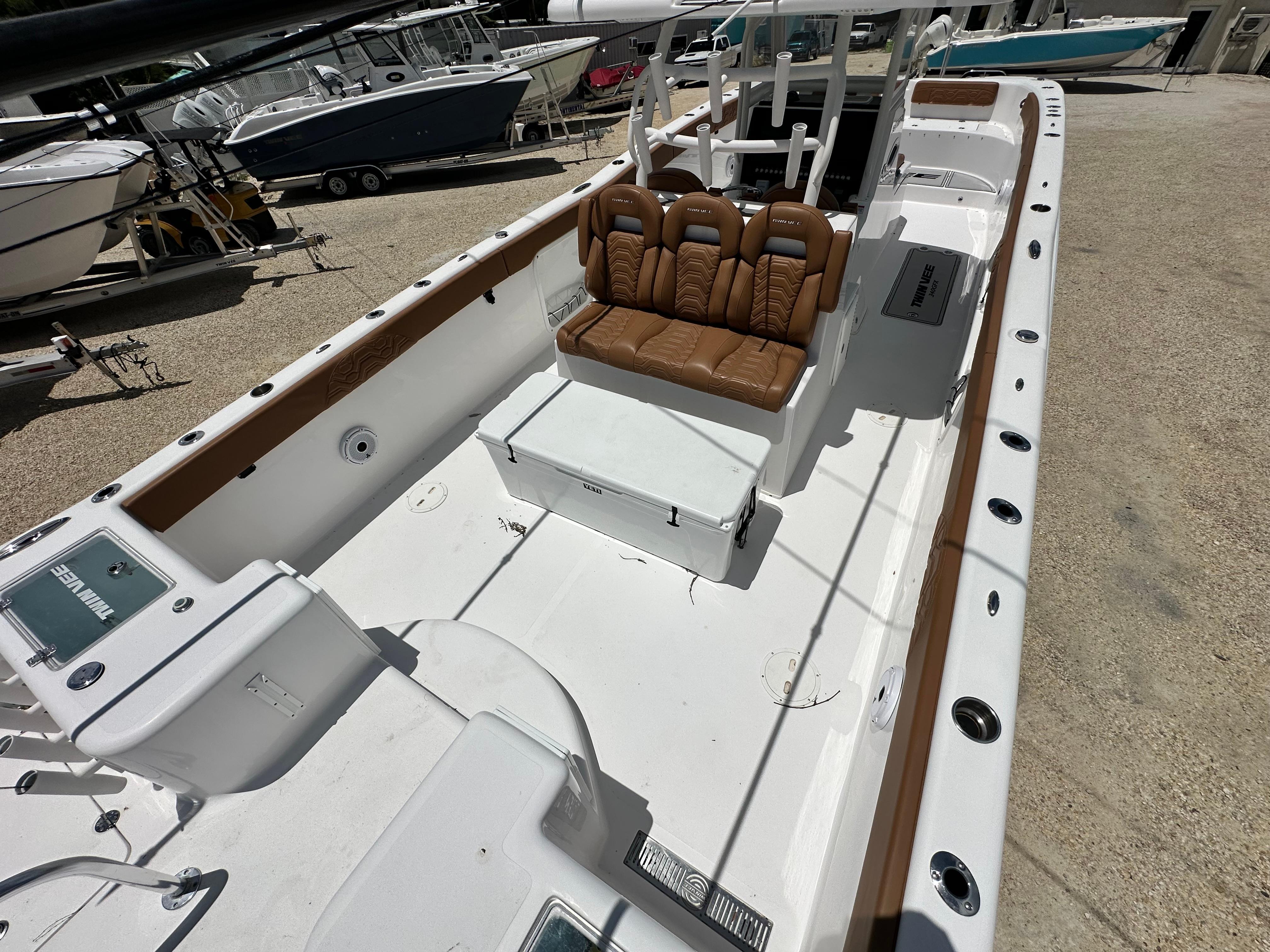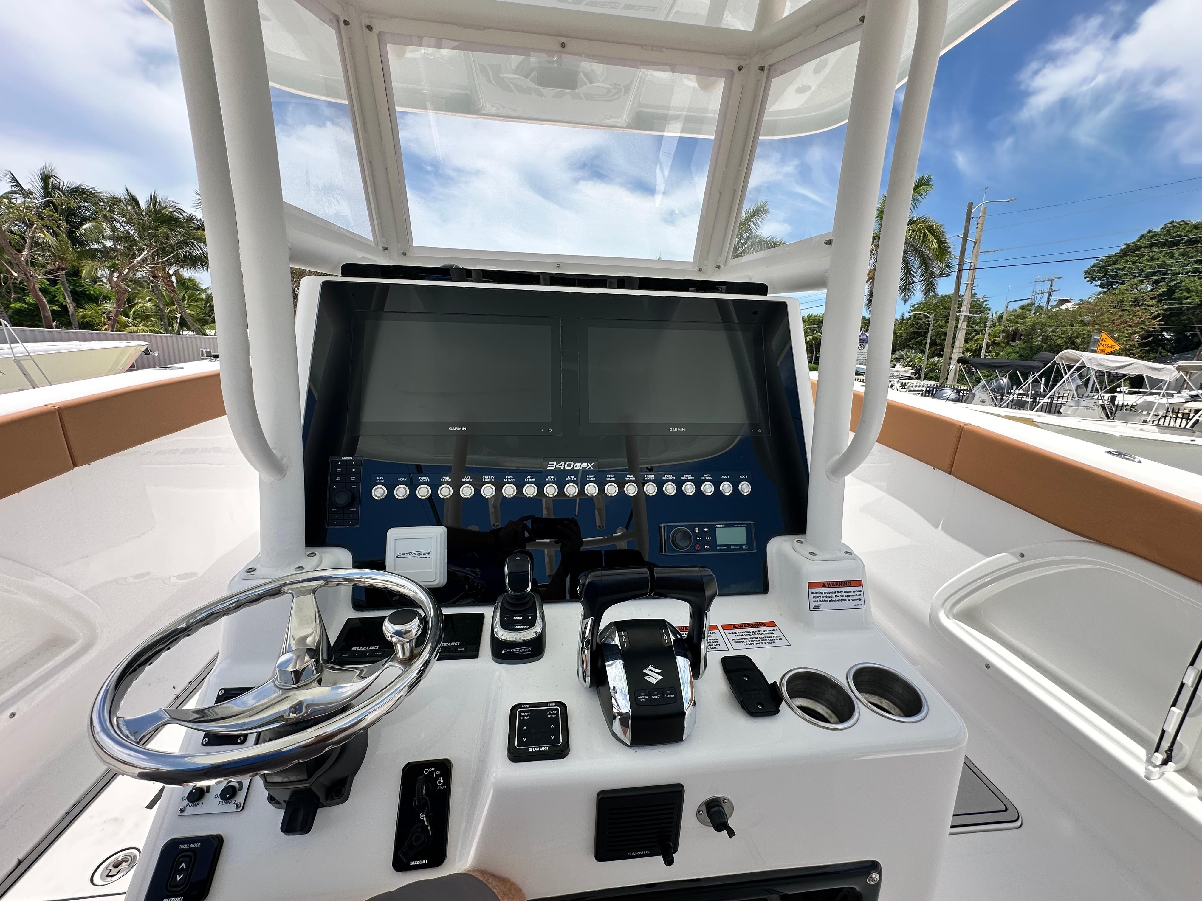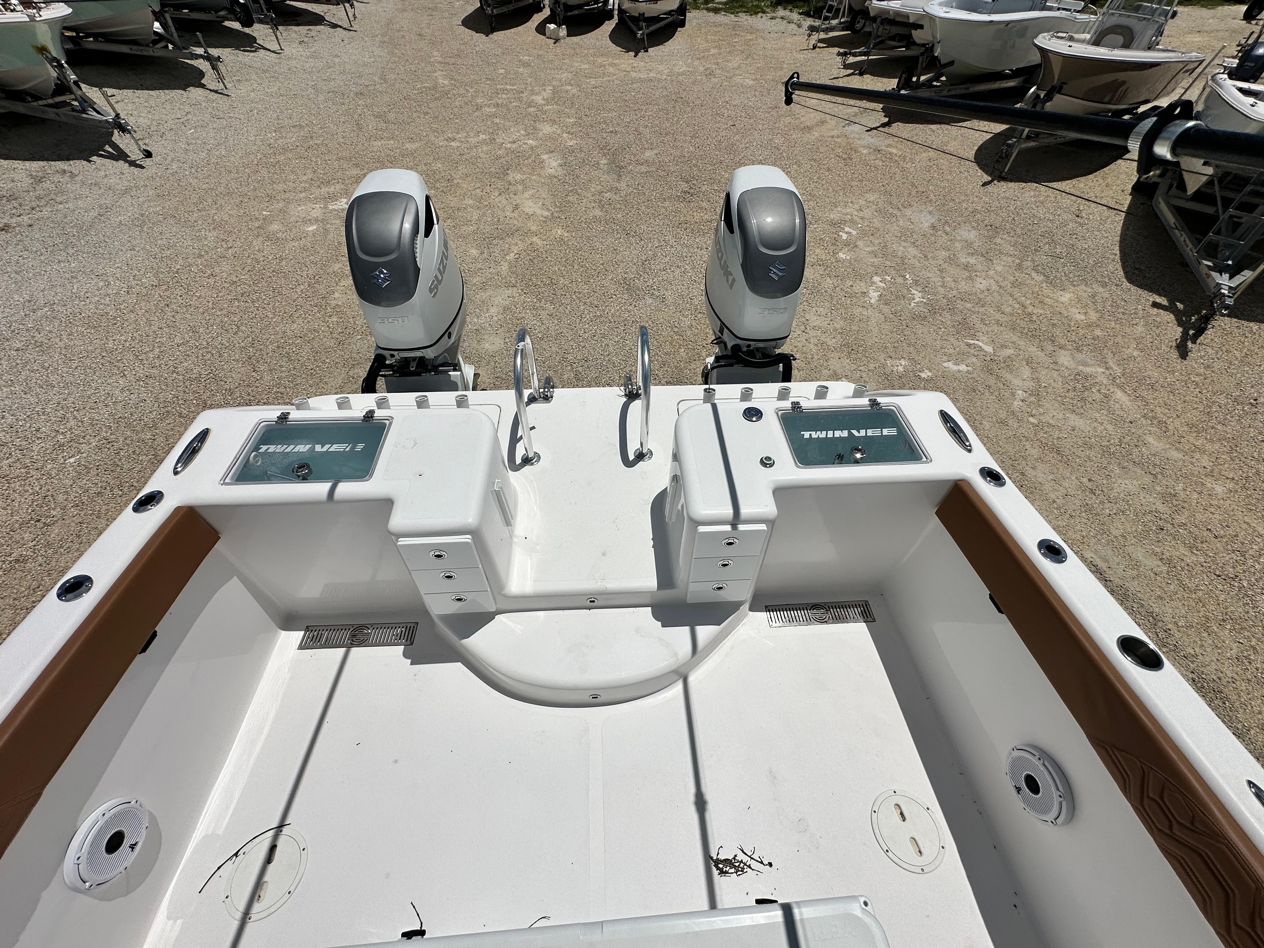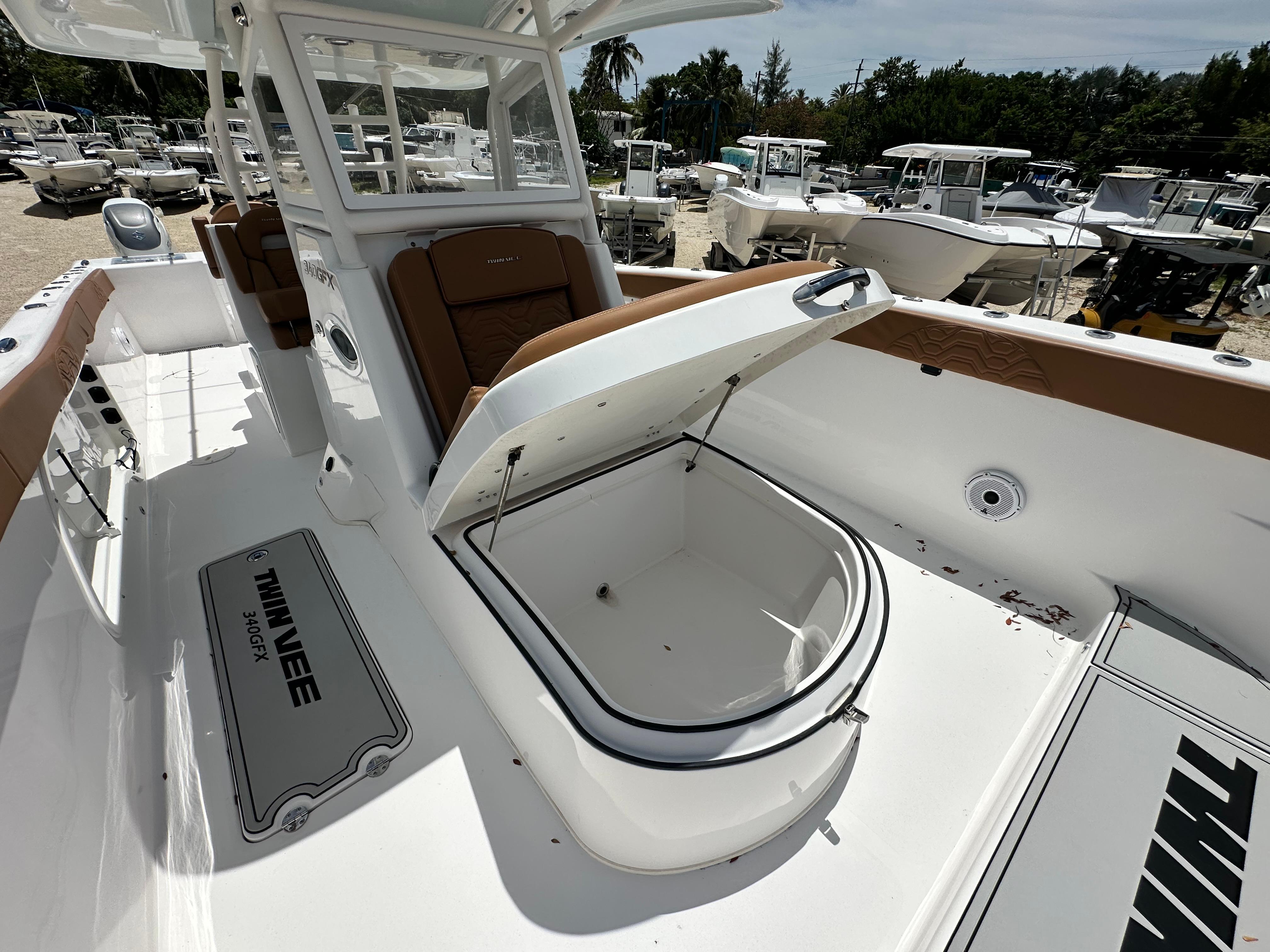 Financing Available and We take trades! 2023 Twin Vee 340GFX . Twin 350hp Suzuki engines with 261 hours. Joystick and Autopilot. Trailer included. Priced at $329,900 and Accepting offers. Embrace the offshore life you’ve always imagined aboard the 2023 Twin Vee 340 GFX. With its expansive 34-foot layout, powerful 700hp, and twin 191-gal fuel tanks, this boat offers unmatched offshore comfort, range, and stability. Whether you’re cruising with friends or landing your next trophy catch, every feature is designed to elevate your boating experience to an extraordinary level.Twin Vee’s 340 GFX PowerCat is the next-level platform for your offshore adventures.The Twin Vee 340 Go Fish-X is designed for the avid fisher and boater who lives life with a forward motion, power and performance attitude. Twin Vee’s 340 GFX is on-point , no fish will escape the boundless reach of our 340 GF X. Standard equipment includes 382 gallons of fuel capacity, 800 Maximum HP, 300 gallon fish boxes, three live wells – two in the stern and one in the helm seat, XXL coffin box, Llebroc seating and much more. Inject Twin Vee DNA, and you have a wave-eating, fish-catching beast of a nautical machine that will satisfy your passion and desire to compete as a World Class sportsman.Twin Vee engineered the 34-foot PowerCat GFX to merge the highest quality elements of fishing on a center console with the ride stability of twin hulls to deliver a vessel worthy of anglers everywhere. Our mission never waivers…..design and build next-level performance with stability and comfort for offshore boating and fishing.