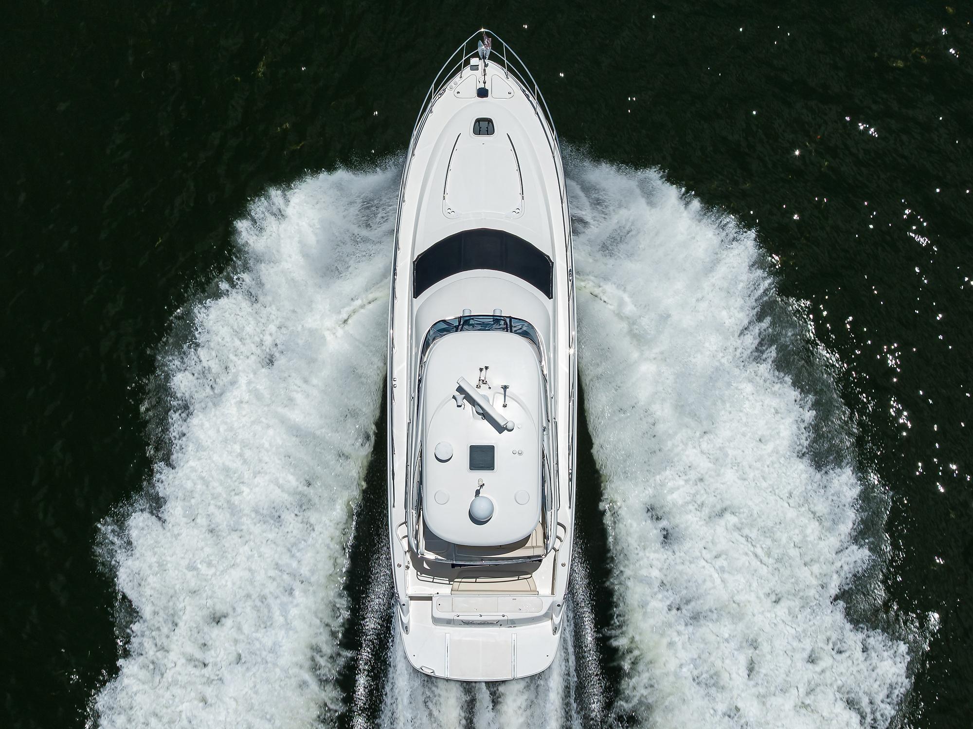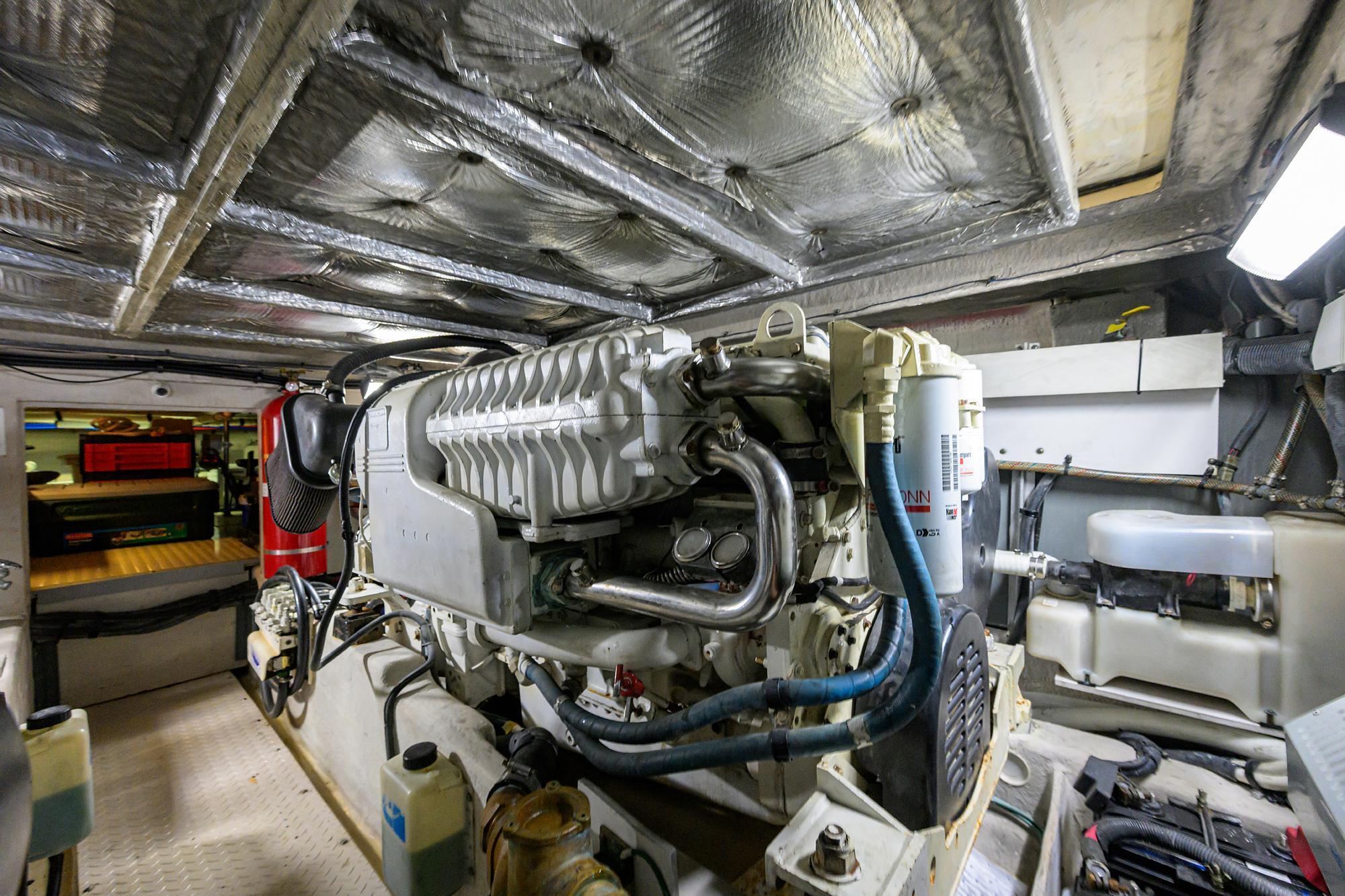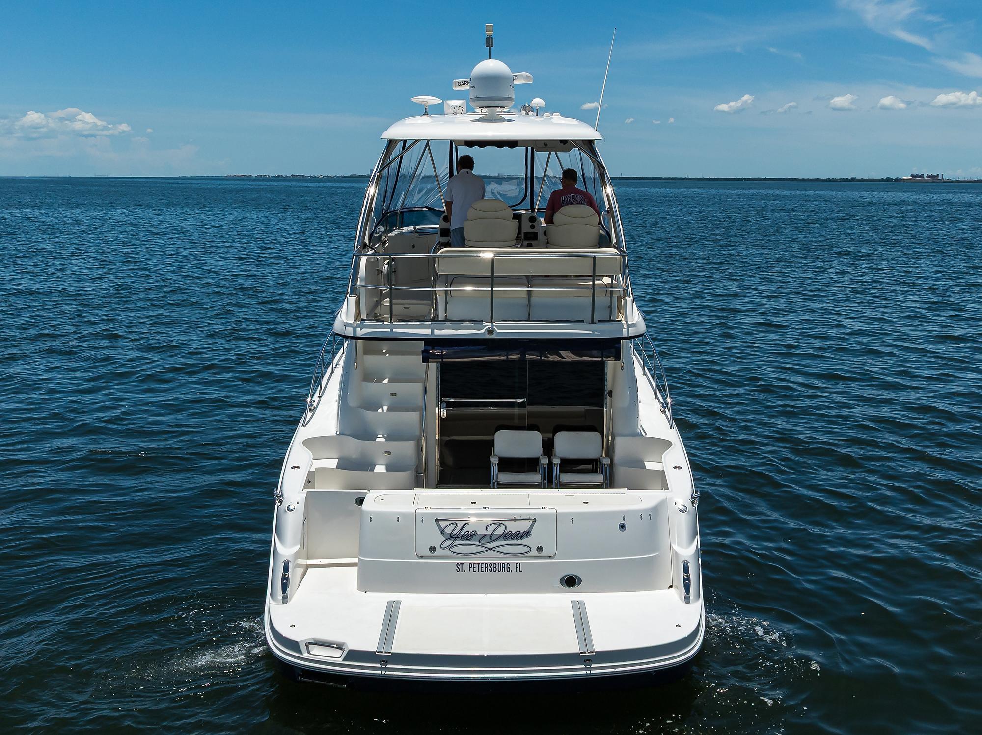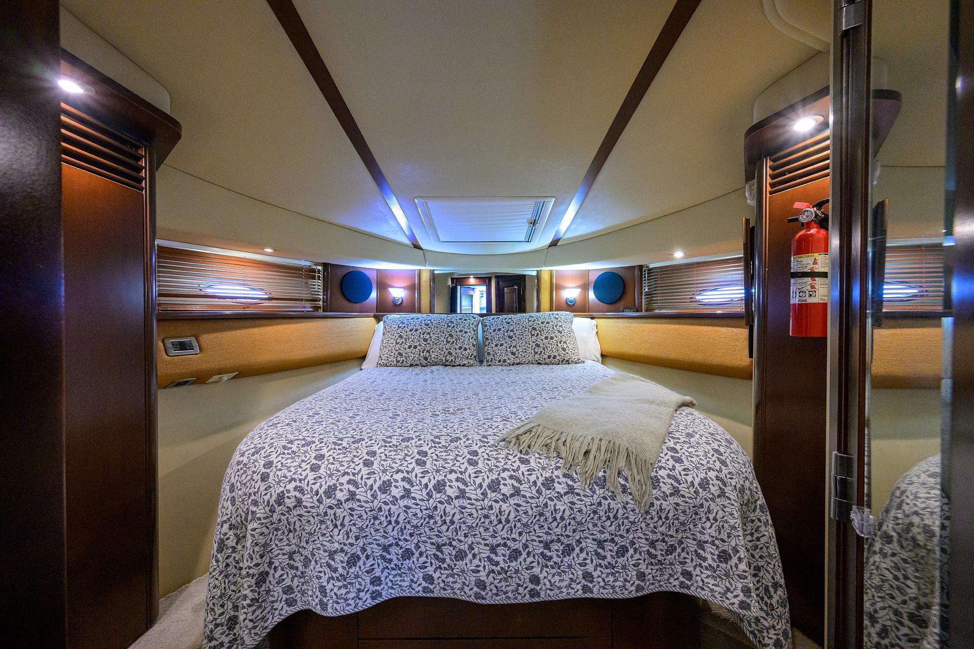 FlybridgeThe flybridge is accessed via molded in fiberglass steps on the port side. There is a centerline aft located helm with two pedestal mounted helm chairs, a bench seat aft, large U-shaped settee forward to starboard and a wet bar with a refrigerator and sink to port. The flybridge is enclosed with isinglass and air conditioned. Navigation is a breeze with the updated Garmin 7612 chartplotters.