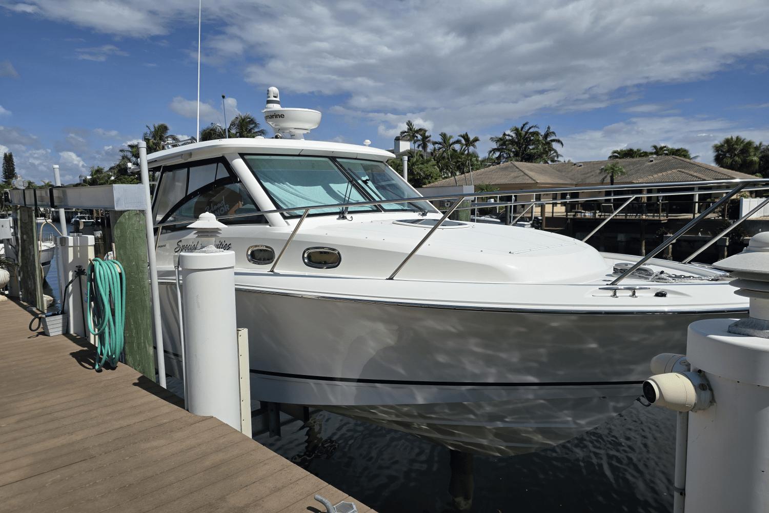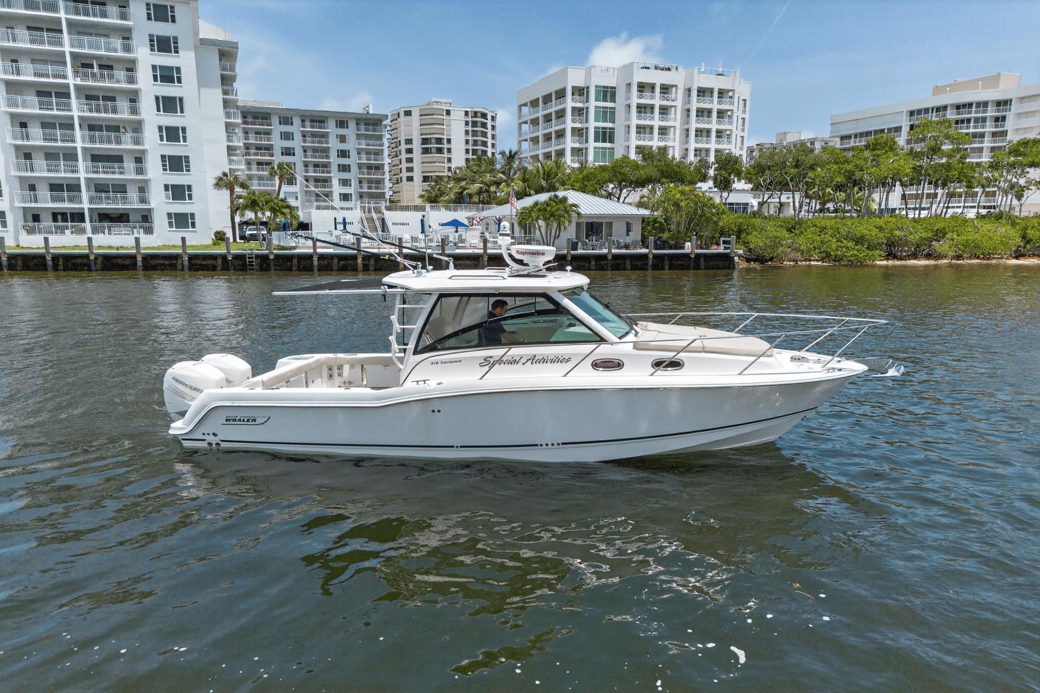 2019 Boston Whaler 315 ConquestUnmatched PerformanceThe Boston Whaler 315 Conquest is engineered for adventure. With two 350hp Mercury Verado engines, you’ll experience thrilling speed and agility on the open water. This luxury vessel is designed for those who crave excitement and the freedom of exploration.Craftsmanship and ComfortThis boat epitomizes superior craftsmanship, featuring a spacious cabin and luxurious finishes that make every journey a pleasure. Whether you're hosting friends or enjoying a quiet sunset, the well-appointed interior offers comfort and style that enhances every boating experience.Factory OptionsWhite HullBlack LogoTwin Mercury 350hp engines with Joystick Docking (397 hrs)Stainless Steel AnchorWhite Rubrail with Stainless Steel InsertSun Lounge Bow CushionElectric Cockpit SunshadeCruising PackageCabin ACHelm Deck ACCockpit Foldout Beach SeatCockpit TableSummer KitchenHelm Deck TableUnderwater LED Lights12v Electric Reel PlugsRadial OutriggersWeather Curtain SetHardtop HatchesGenerator (145 hrs)VHF RadioSirius Sat Radio16" Raymarine AxiomOpen Array RadarEntertainment PackagePrivacy CurtainDealer Instaled OptionsM232 FLIRAISAR200 Augmented RealityThis vessel is located offsite in Boca Raton, please contact the listing broker to set up an appointment.