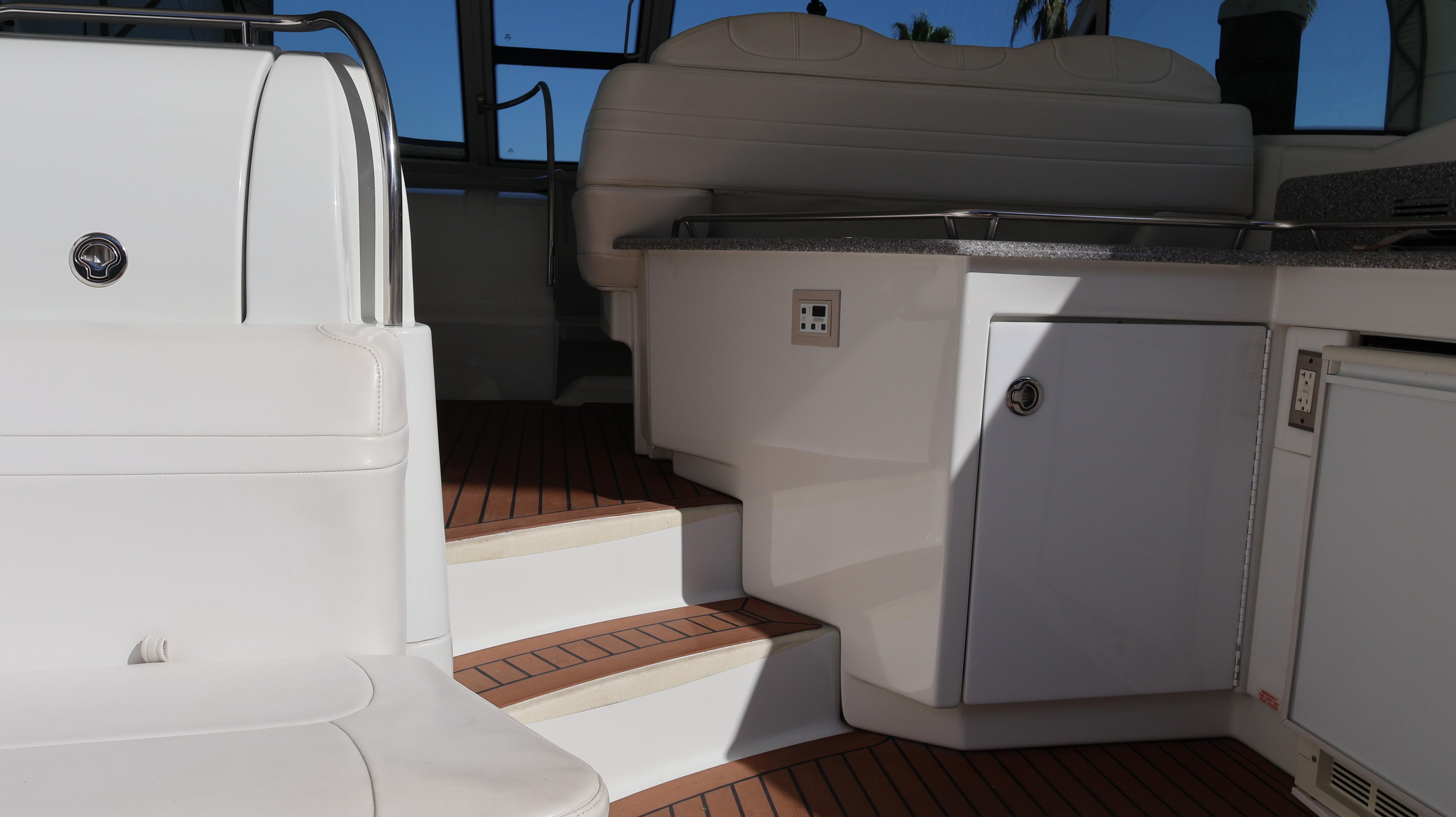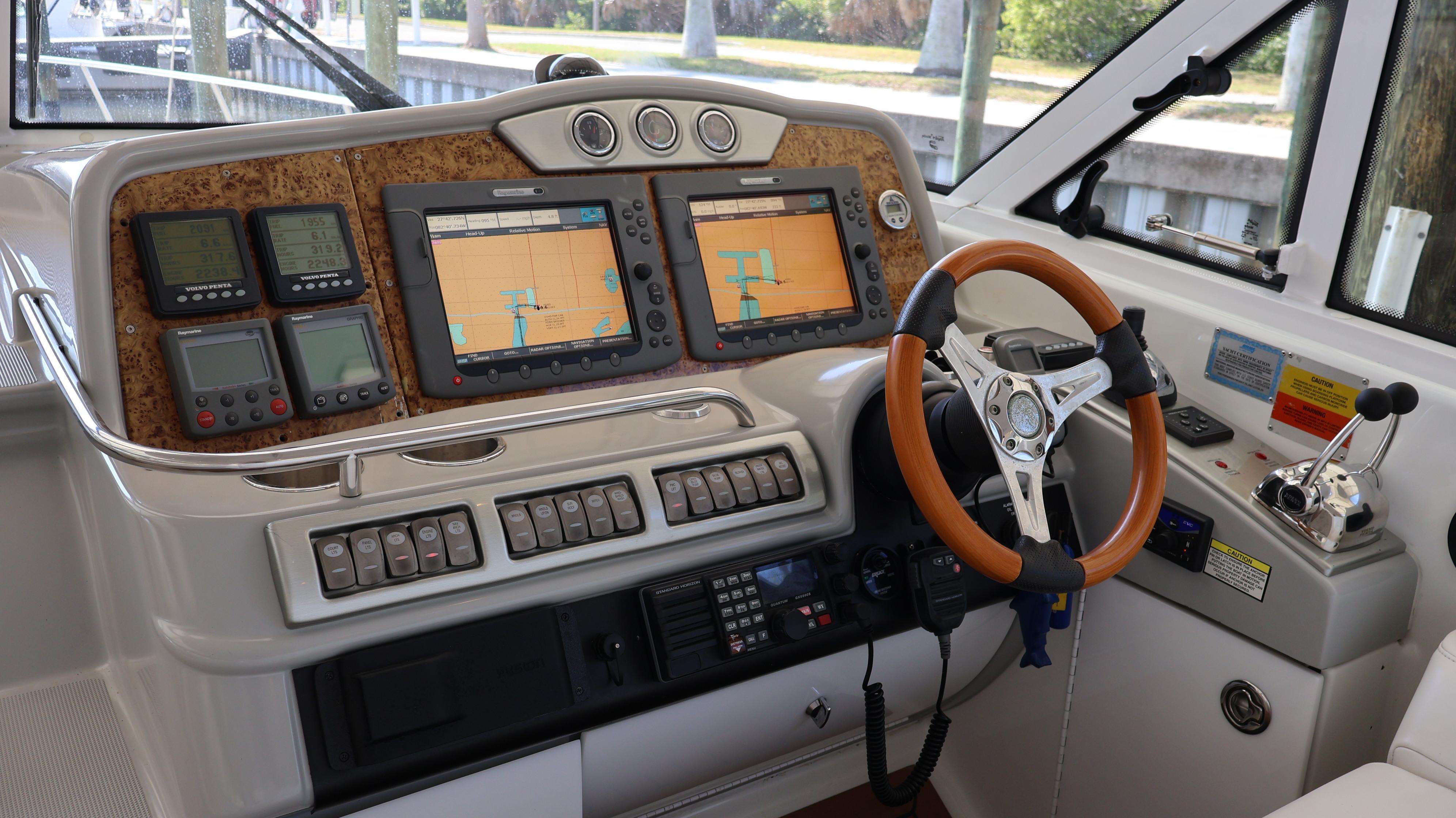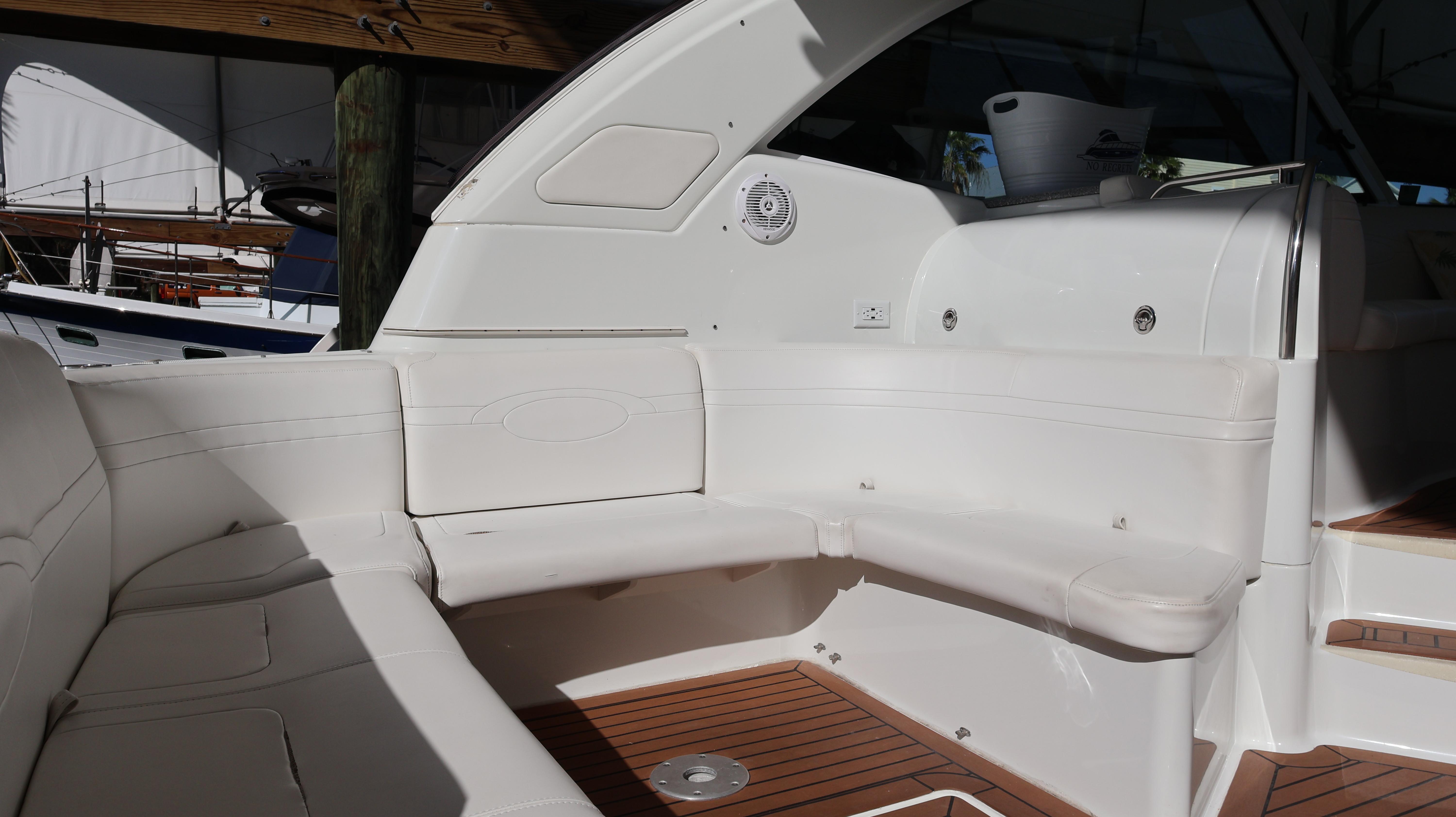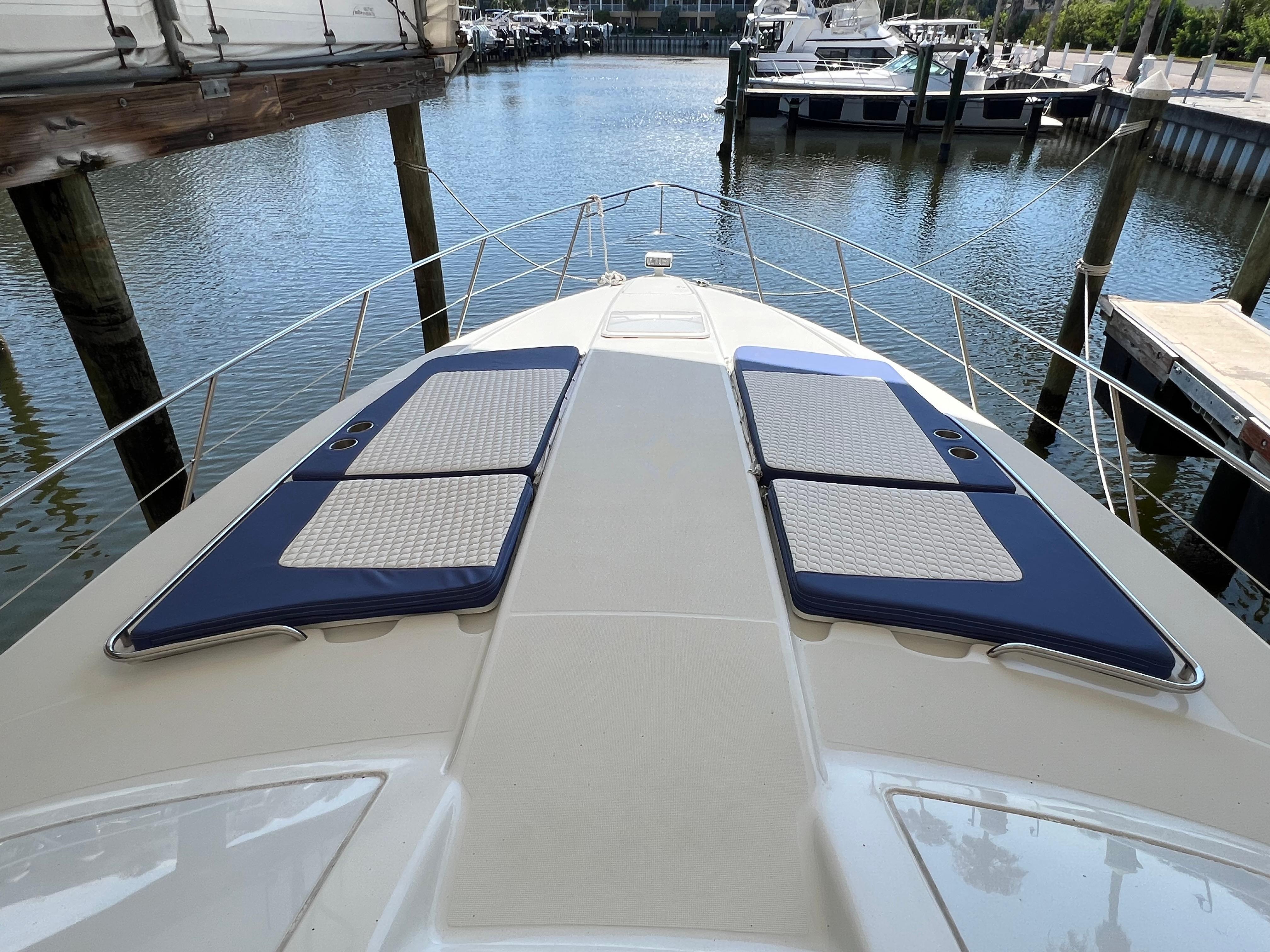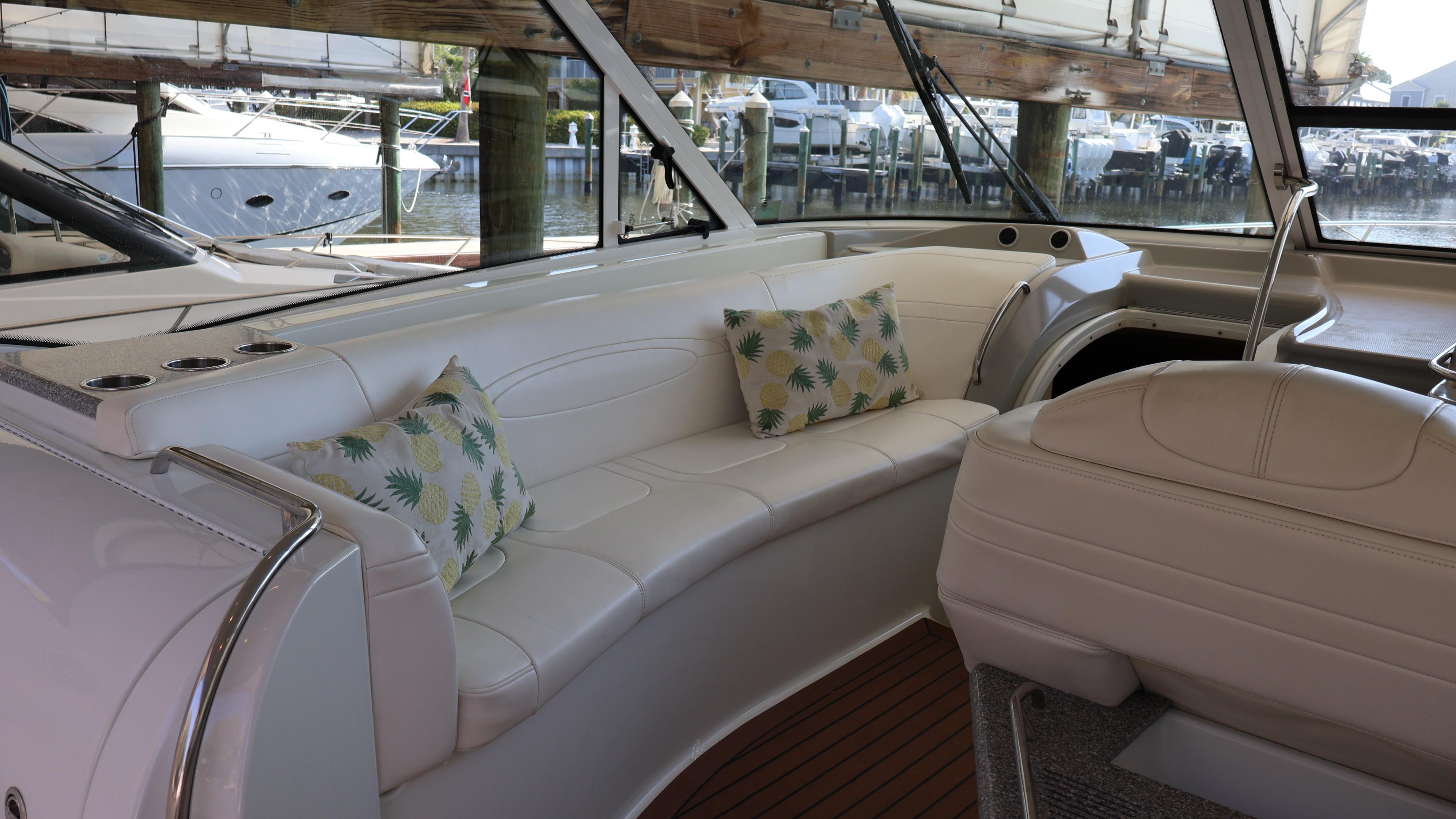 2007 Formula 45 YachtPowered by Twin Volvo IPS 600This boat is priced to sell! Welcome aboard this stunning 2007 Formula 45 Yacht. Currently sheltered in a covered wet slip, she is well-protected from the Florida sun. The exterior has just received a comprehensive wax and polish, enhancing her already impressive appearance. The current owner has invested significantly in her upkeep, including remanufacturing both pods, replacing all air conditioning units, installing new bow sun pads, and much more.Step aboard and you'll immediately appreciate the oversized, hydraulic swim platform, capable of supporting a 1400-pound water toy, making boarding safe and straightforward. The transom speakers elevate your entertainment experience, while the large transom storage is perfect for all your gear. Navigating this 45 Yacht is effortless, thanks to the Volvo controls and joystick docking system.This yacht epitomizes power, performance, functionality, and comfort. Its two-cabin, two-head layout is ideal for both couples and families, offering an exceptional cruising experience. As you descend into the salon, the quality craftsmanship that has made Formula a leader in power boat manufacturing for over 50 years is evident. Every element is thoughtfully designed and easily accessible, ensuring a luxurious and enjoyable journey. Formula's commitment to excellence shines through every detail, providing you with the ultimate yachting experience.AccommodationsU-Shaped sofa seating converts to double berthAdjustable-Height high gloss Deep Cherry inlaid tableTwo Pedestal Dining StoolsLarge LCD with Bose Lifestyle Surround Sound Built-In central vac system American Cherry Woodgrain-Finish Cabin FlooringHigh-Gloss Deep Cherry-Finish Cabinetry ThroughoutOWNERS PRIVATE STATEROOMPocket entry door w/full length mirrorOceanAir Rollour SkyScreen & Privacy ShadeOwners Centerline Berth storage beneath & four dovetailed hardwood drawersTwo cedar-lined hanging lockers w/auto lights19" LCD TV/DVDBose Sound SystemOwners Private Head compartment to PortSeparate Shower compartment to Starboard PRIVATE GUEST CABINPrivate stateroom w/Twin beds that adjust to a queen berthUnder Berth Drawer StorageHanging Locker w/auto light15" LCD TV/DVDPrivate Head w/ShowerVanity w/Corian CountertopGalleyL-Shaped Galley w/High Gloss Deep-Cherry finish CabinetryFull Corian CountertopStainless Steel Sink with Double Basin 2-Burner Electric Stove Brushed Stainless Steel Microwave Oven120V/12V Upright Fridge FreezerLighted Show Case w/Wine Rack 120V water heater w/heat exchangerElectronics & Navigation EquipmentDual Electronic Engine Monitoring DisplaysFuel GaugesRichie CompassTwin Raymarine GPS/Chart Plotters VHF radio50amp cord with Glendinning motorized extent/retract and storage systemRemote Control SearchlightElectrical SystemWesterbeke Generator Two Automatic Bilge PumpsAutomatic fire extinguishing systemEngine Room LightingMotorized Engine Room hatchDeckElectric Windlass w/chain counter, concealed anchor davit w/molded chain lockerConcealed quick-disconnect coiled-hose transom wash-down systemSix venting stainless steel portlights w/screens2X oversized stainless steel HarbourView portlights w/screensNonskid deck & walk-around coverboards2X vinyl foam deck sun pads w/adjustable Sunbrella chaise backrest & 316L stainless steel railsCoupe Top w/tinted, tempered curved-glass windshield w/vented Center WALK-THRU DOOR & side ventsLARGE, MOTORIZED COUPE-TOP SUNROOFWindshield wipersPolished dual air hornFull-Width Swim Platform, concealed 316L stainless steel swim ladder, swim rails & pull-up cleatsTransom shower w/single-lever temp controlMolded transom trunk w/pneumatic-assist hatch, line storage and fender rackTwin command seating w/dual position helm & companion seats w/center storage compartmentsCurved extended port loungeMid Cockpit storage locker for cockpit tables and canvas enclosuresU-shaped lounge seating aft w/fiberglass lined storageAft sun lounge package w/two dual height Corian tables & filler cushionsMolded wetbar/beverage center w/integrated sink, flush corian countertop, ice maker, in-counter trash container,PFD storage locker w/corian countertopAft curtain enclosure w/easy mount zipper connections Mechanical Equipment & Engine DetailsTwin Volvo IPS 600 Diesel EnginesMotorized engine room hatchIntegrated quick-access (day hatch) engine room hatch with stainless steel ladderEngine Room lightingAuto fire extinguishing system2X auto bilge pumpsBilge high water alarm