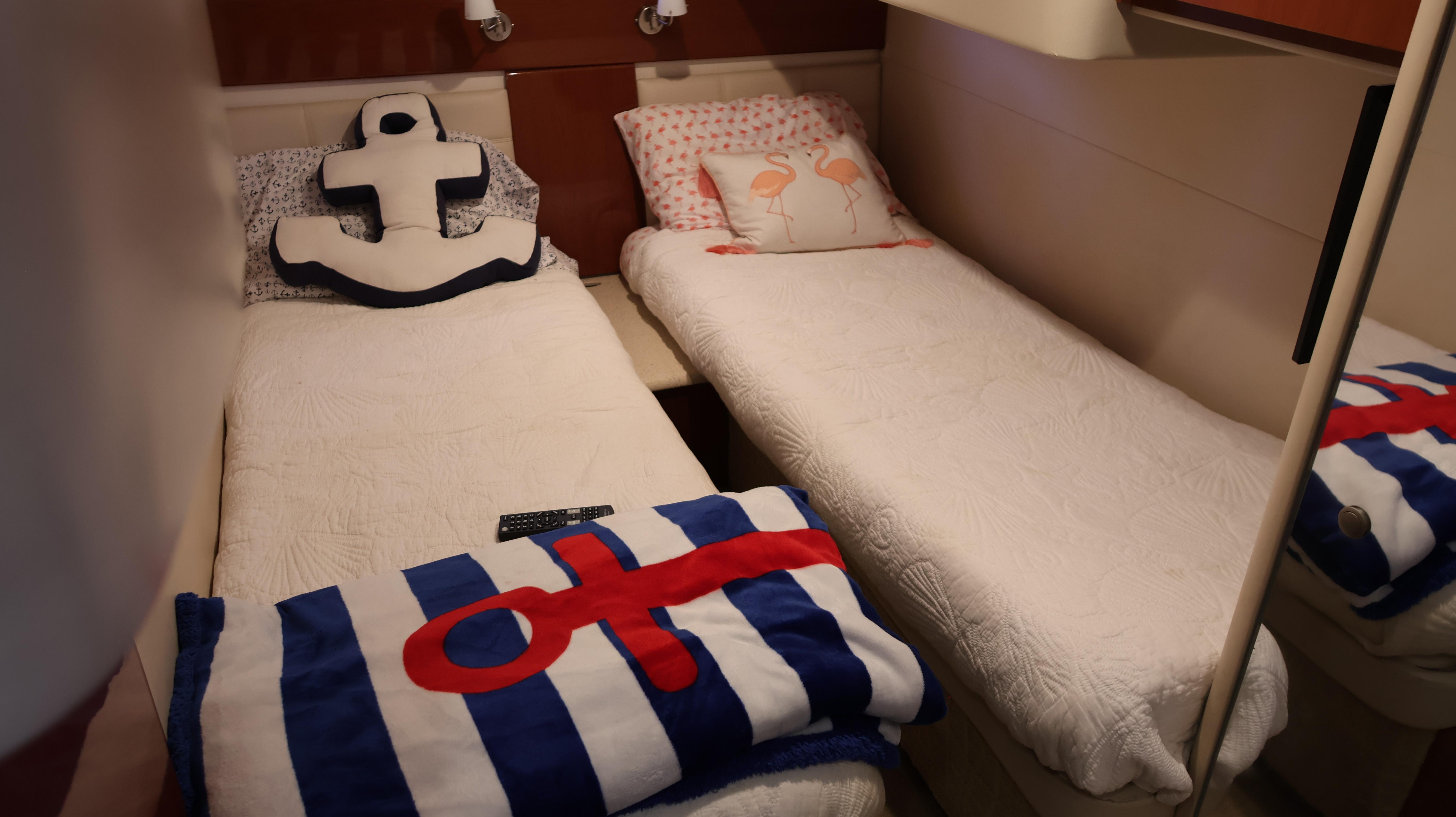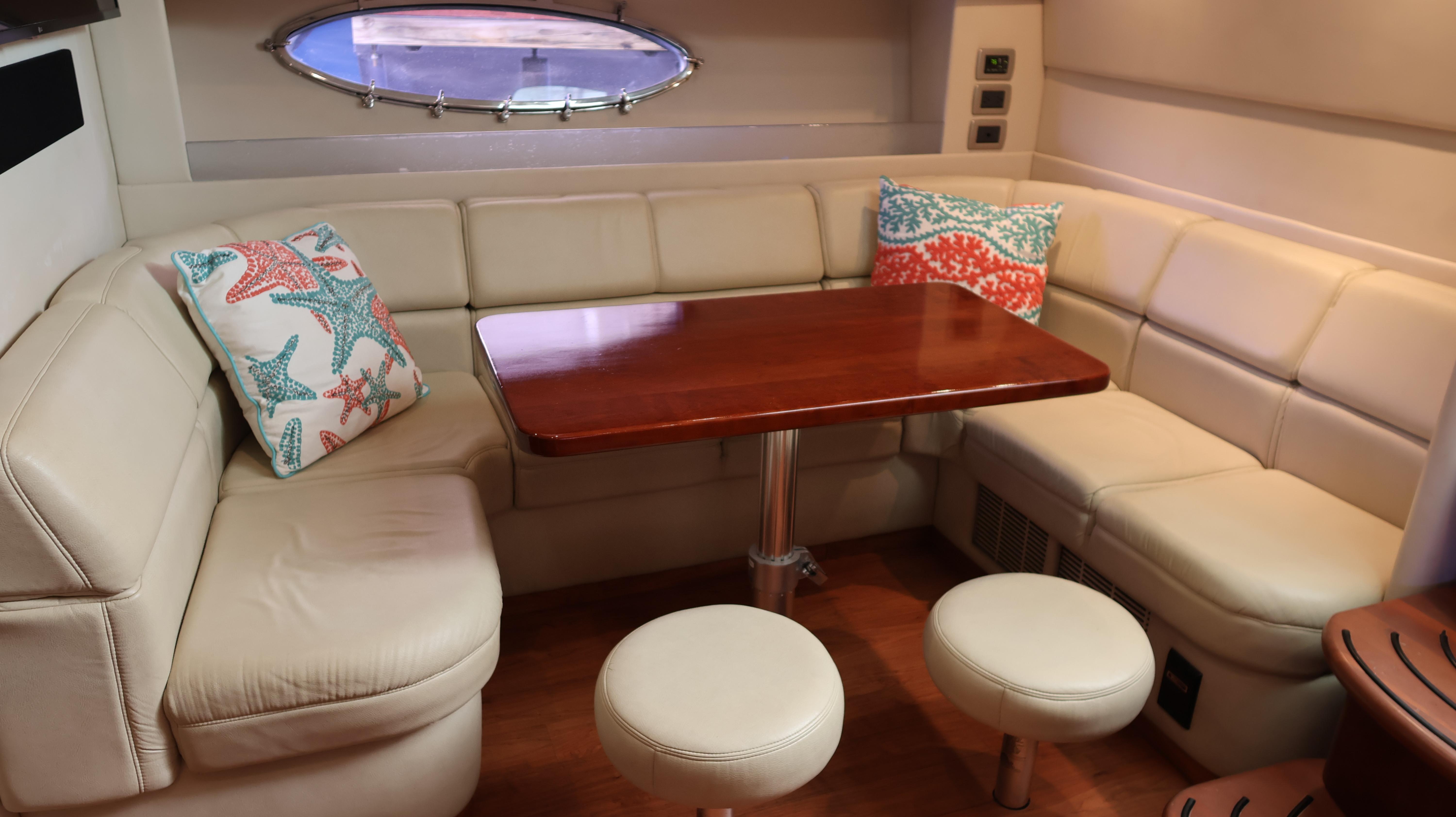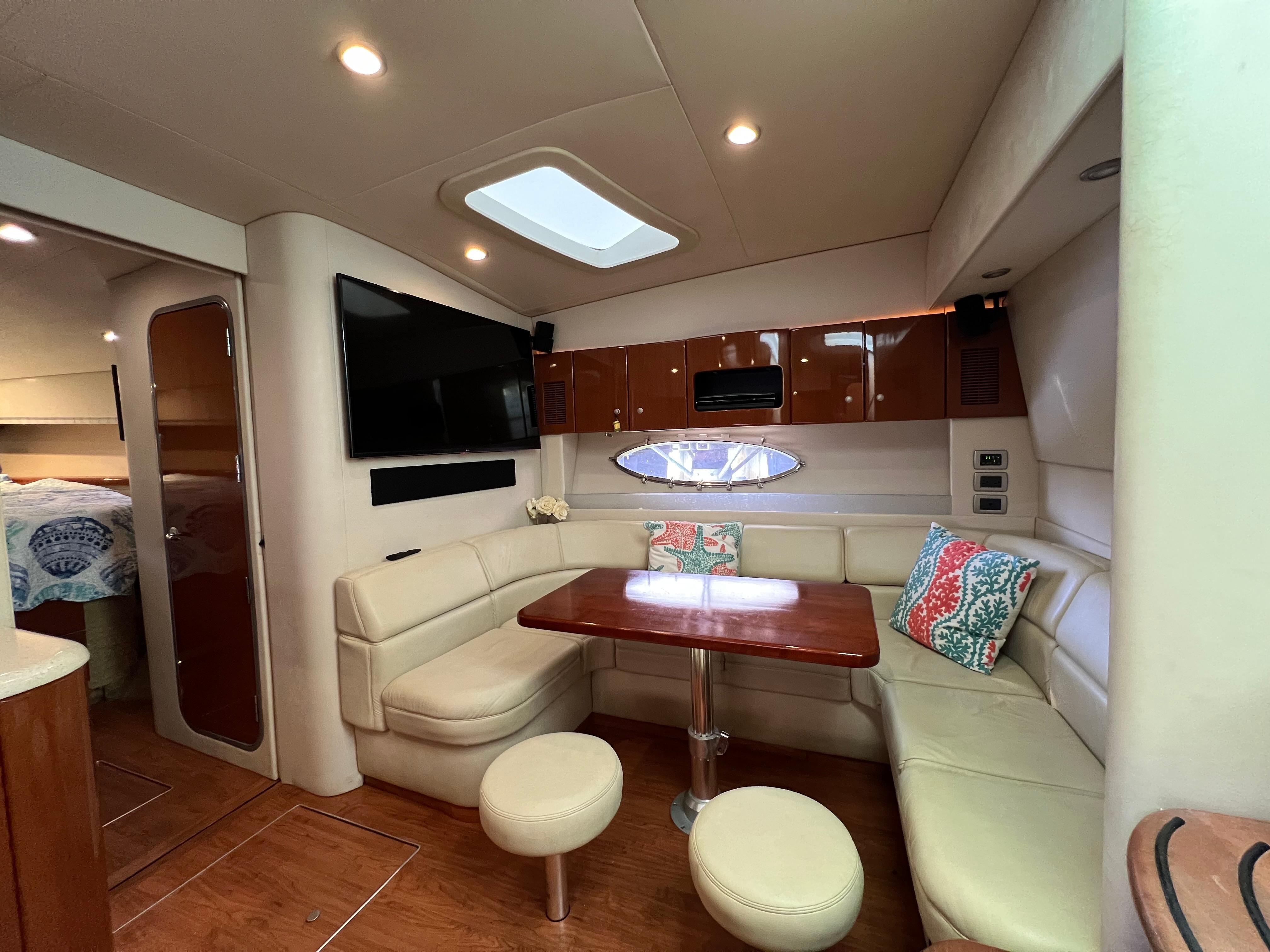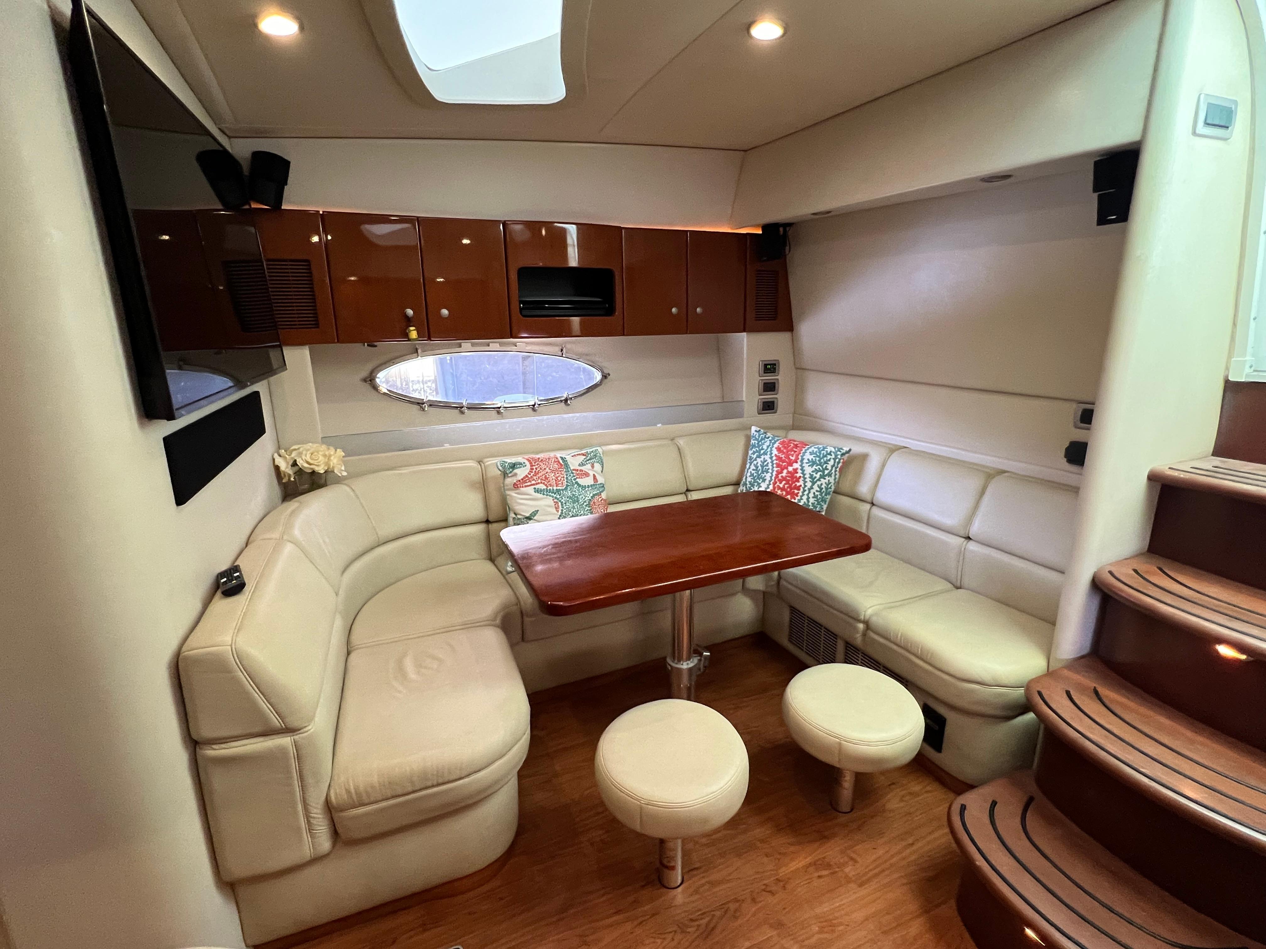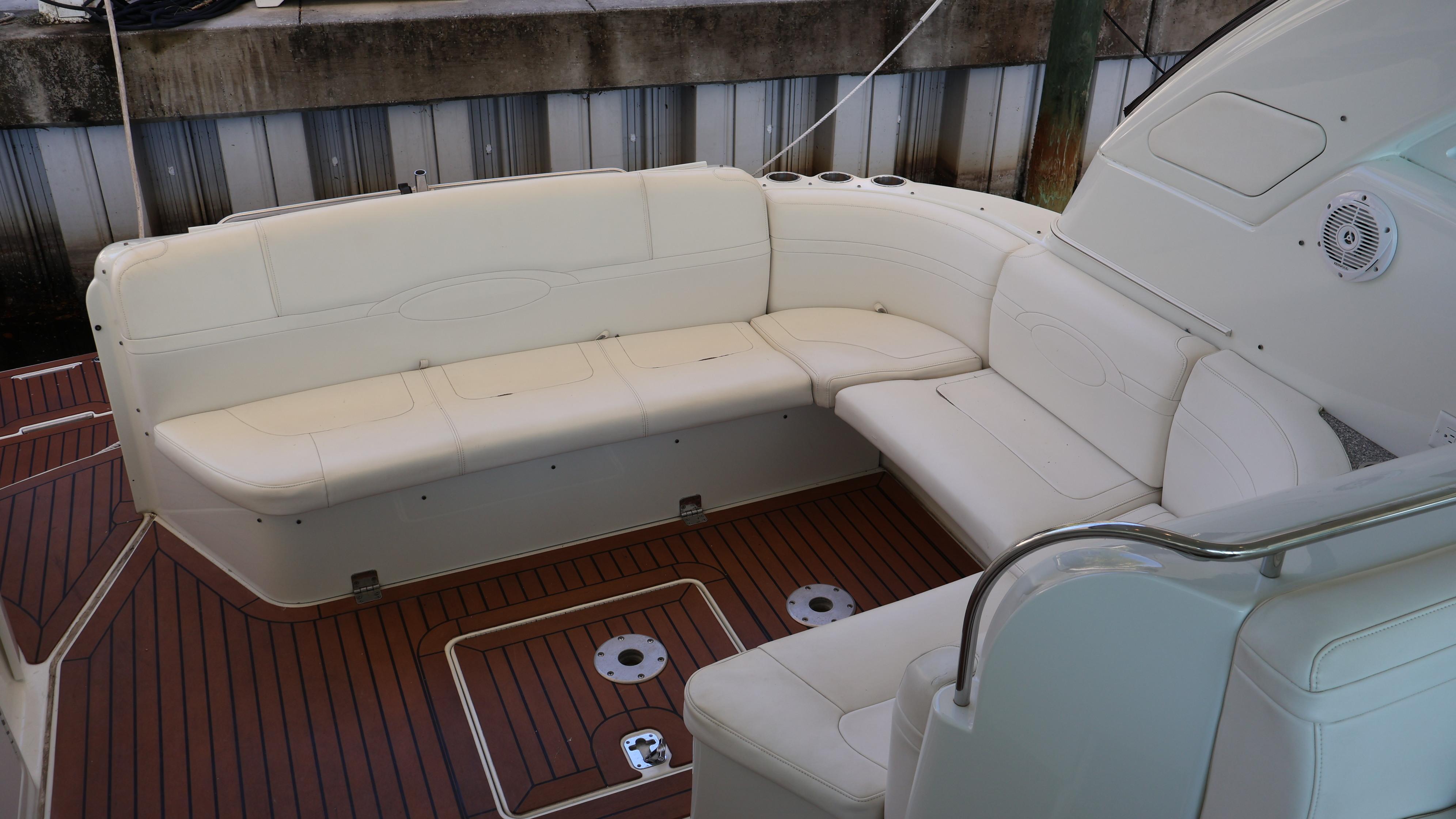 2007 Formula 45 YachtPowered by Twin Volvo IPS 600This boat is priced to sell! Welcome aboard this stunning 2007 Formula 45 Yacht. Currently sheltered in a covered wet slip, she is well-protected from the Florida sun. The exterior has just received a comprehensive wax and polish, enhancing her already impressive appearance. The current owner has invested significantly in her upkeep, including remanufacturing both pods, replacing all air conditioning units, installing new bow sun pads, and much more.Step aboard and you'll immediately appreciate the oversized, hydraulic swim platform, capable of supporting a 1400-pound water toy, making boarding safe and straightforward. The transom speakers elevate your entertainment experience, while the large transom storage is perfect for all your gear. Navigating this 45 Yacht is effortless, thanks to the Volvo controls and joystick docking system.This yacht epitomizes power, performance, functionality, and comfort. Its two-cabin, two-head layout is ideal for both couples and families, offering an exceptional cruising experience. As you descend into the salon, the quality craftsmanship that has made Formula a leader in power boat manufacturing for over 50 years is evident. Every element is thoughtfully designed and easily accessible, ensuring a luxurious and enjoyable journey. Formula's commitment to excellence shines through every detail, providing you with the ultimate yachting experience.AccommodationsU-Shaped sofa seating converts to double berthAdjustable-Height high gloss Deep Cherry inlaid tableTwo Pedestal Dining StoolsLarge LCD with Bose Lifestyle Surround Sound Built-In central vac system American Cherry Woodgrain-Finish Cabin FlooringHigh-Gloss Deep Cherry-Finish Cabinetry ThroughoutOWNERS PRIVATE STATEROOMPocket entry door w/full length mirrorOceanAir Rollour SkyScreen & Privacy ShadeOwners Centerline Berth storage beneath & four dovetailed hardwood drawersTwo cedar-lined hanging lockers w/auto lights19" LCD TV/DVDBose Sound SystemOwners Private Head compartment to PortSeparate Shower compartment to Starboard PRIVATE GUEST CABINPrivate stateroom w/Twin beds that adjust to a queen berthUnder Berth Drawer StorageHanging Locker w/auto light15" LCD TV/DVDPrivate Head w/ShowerVanity w/Corian CountertopGalleyL-Shaped Galley w/High Gloss Deep-Cherry finish CabinetryFull Corian CountertopStainless Steel Sink with Double Basin 2-Burner Electric Stove Brushed Stainless Steel Microwave Oven120V/12V Upright Fridge FreezerLighted Show Case w/Wine Rack 120V water heater w/heat exchangerElectronics & Navigation EquipmentDual Electronic Engine Monitoring DisplaysFuel GaugesRichie CompassTwin Raymarine GPS/Chart Plotters VHF radio50amp cord with Glendinning motorized extent/retract and storage systemRemote Control SearchlightElectrical SystemWesterbeke Generator Two Automatic Bilge PumpsAutomatic fire extinguishing systemEngine Room LightingMotorized Engine Room hatchDeckElectric Windlass w/chain counter, concealed anchor davit w/molded chain lockerConcealed quick-disconnect coiled-hose transom wash-down systemSix venting stainless steel portlights w/screens2X oversized stainless steel HarbourView portlights w/screensNonskid deck & walk-around coverboards2X vinyl foam deck sun pads w/adjustable Sunbrella chaise backrest & 316L stainless steel railsCoupe Top w/tinted, tempered curved-glass windshield w/vented Center WALK-THRU DOOR & side ventsLARGE, MOTORIZED COUPE-TOP SUNROOFWindshield wipersPolished dual air hornFull-Width Swim Platform, concealed 316L stainless steel swim ladder, swim rails & pull-up cleatsTransom shower w/single-lever temp controlMolded transom trunk w/pneumatic-assist hatch, line storage and fender rackTwin command seating w/dual position helm & companion seats w/center storage compartmentsCurved extended port loungeMid Cockpit storage locker for cockpit tables and canvas enclosuresU-shaped lounge seating aft w/fiberglass lined storageAft sun lounge package w/two dual height Corian tables & filler cushionsMolded wetbar/beverage center w/integrated sink, flush corian countertop, ice maker, in-counter trash container,PFD storage locker w/corian countertopAft curtain enclosure w/easy mount zipper connections Mechanical Equipment & Engine DetailsTwin Volvo IPS 600 Diesel EnginesMotorized engine room hatchIntegrated quick-access (day hatch) engine room hatch with stainless steel ladderEngine Room lightingAuto fire extinguishing system2X auto bilge pumpsBilge high water alarm